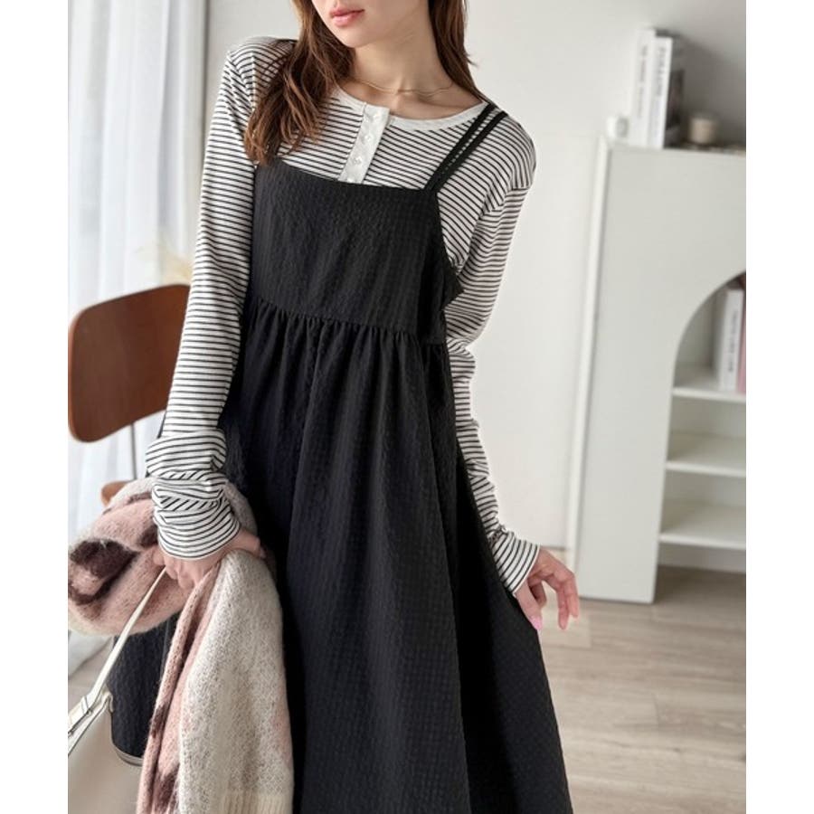 季節を問わず、コーディネートの幅が広がる万能ワンピです。