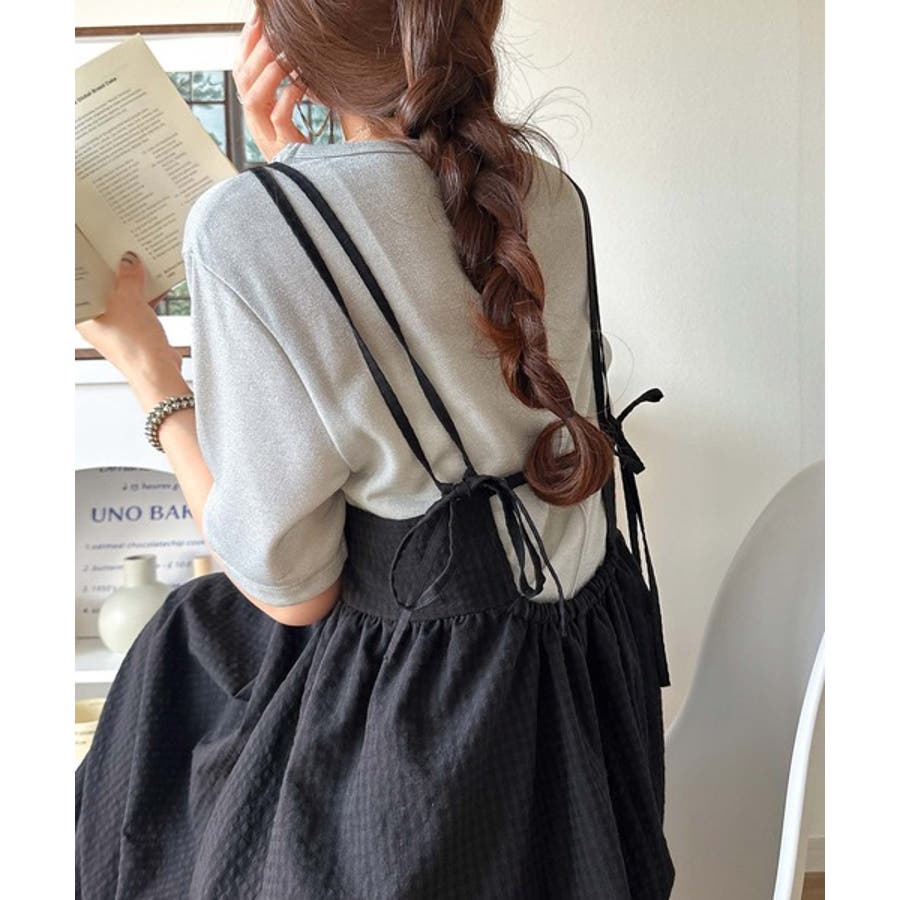 後ろ姿も可愛く盛れちゃう♪サッカー素材バックリボンフレアキャミワンピ