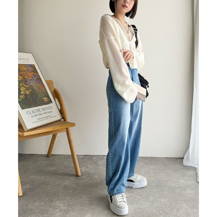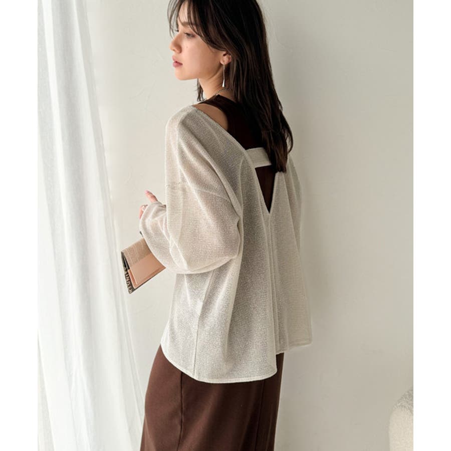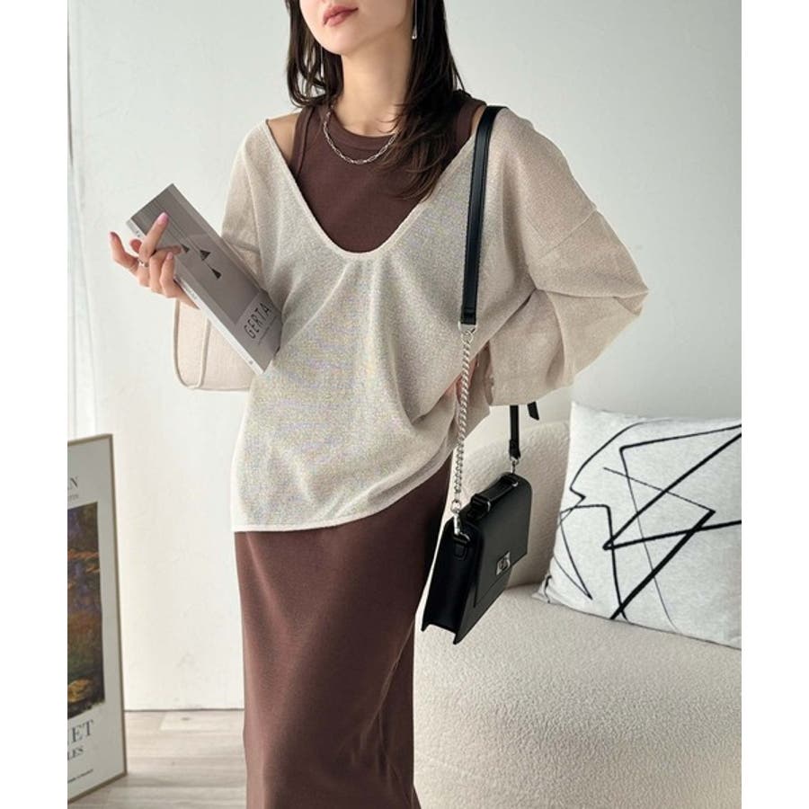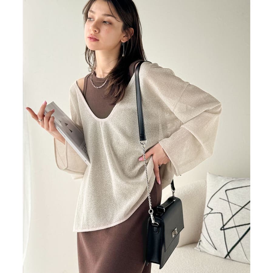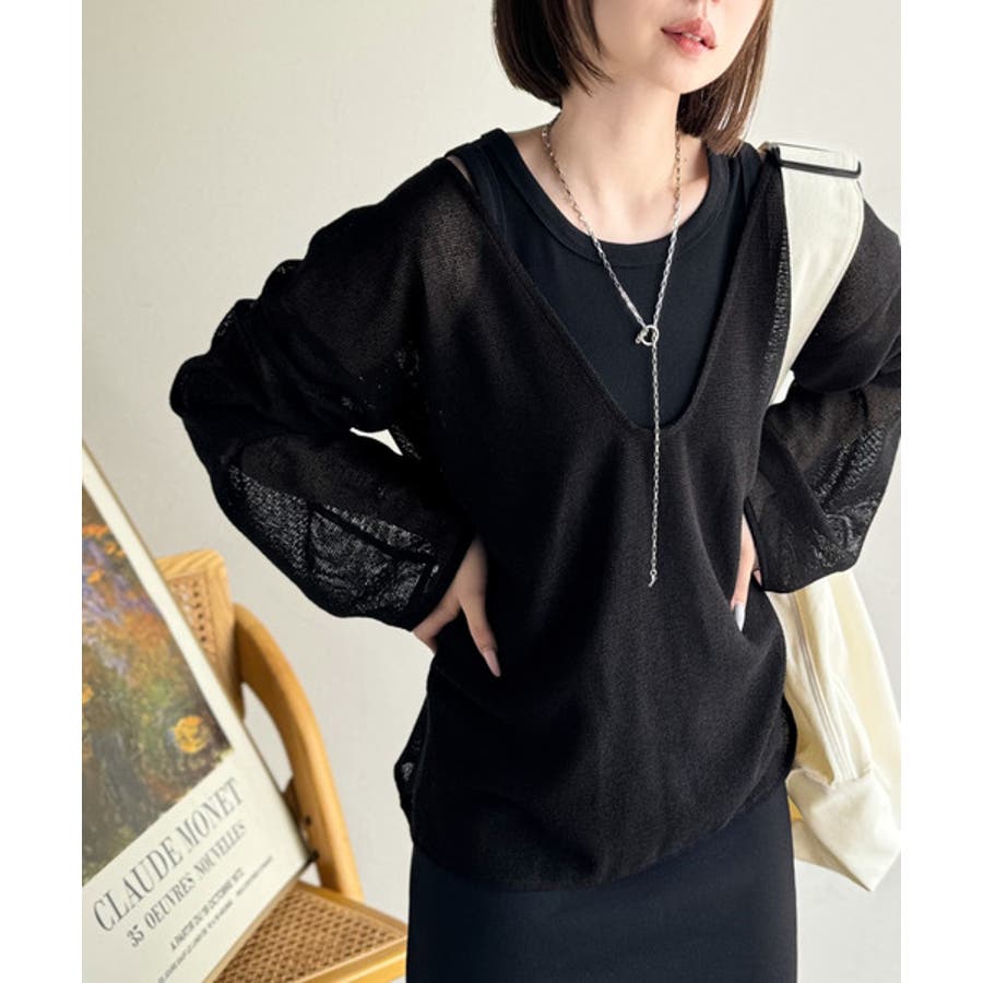 ざっくりと開いた深めのUネックで、顔まわりをすっきり見せ