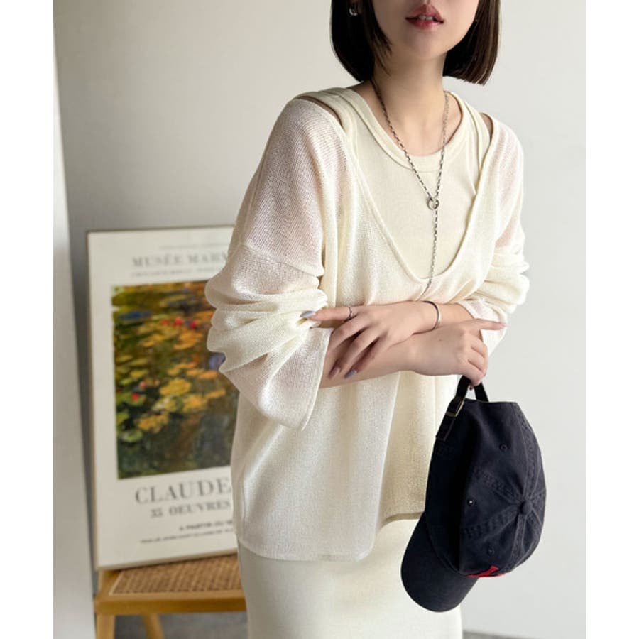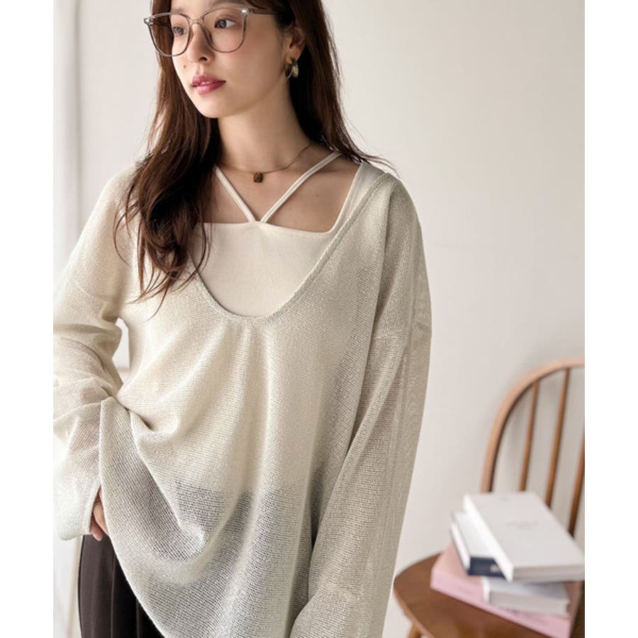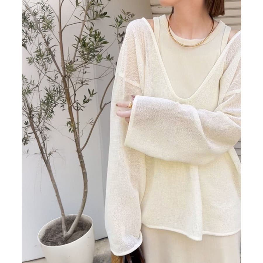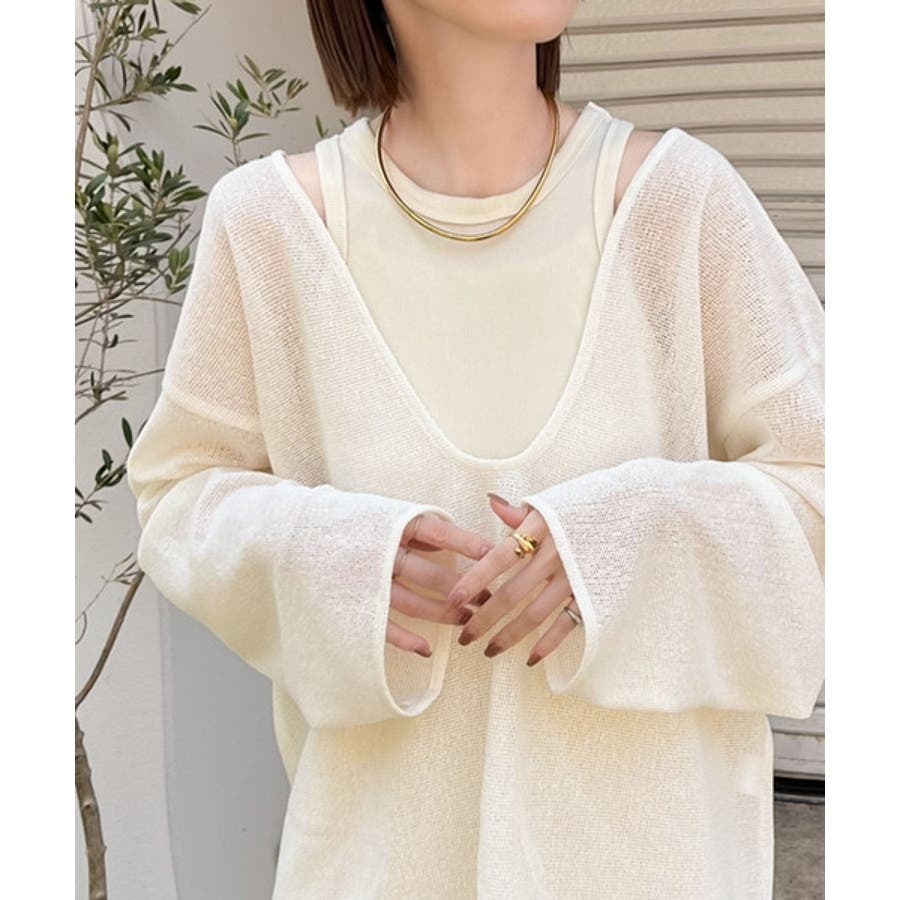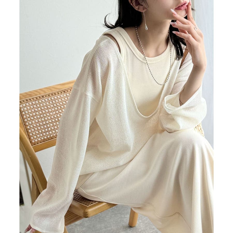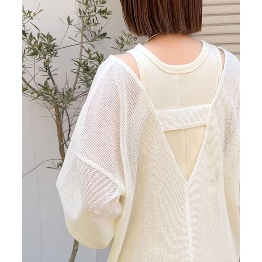 タンクトップやキャミソールと合わせたレイヤードスタイルで、