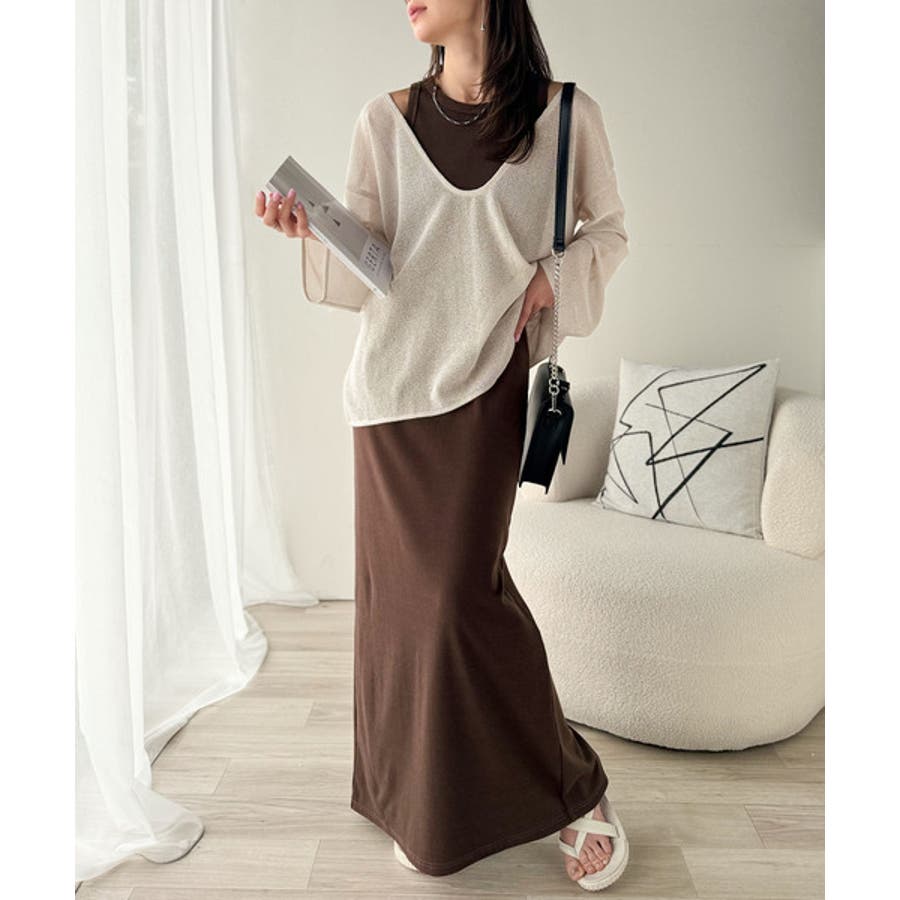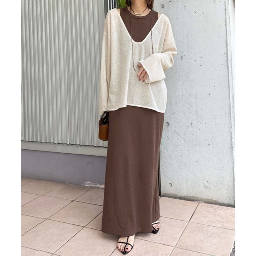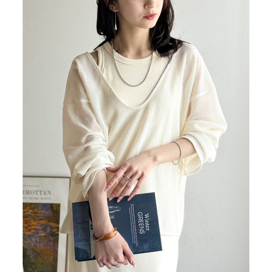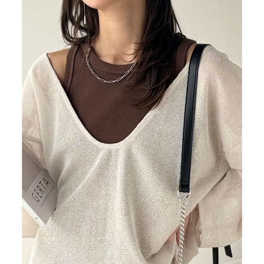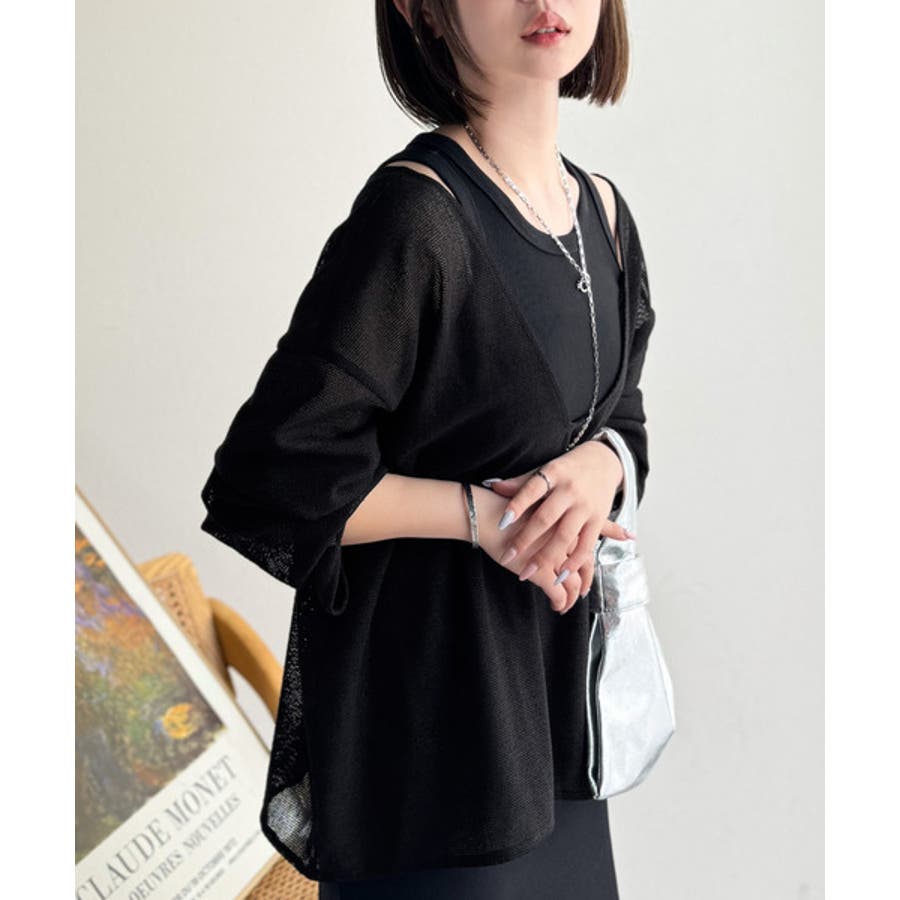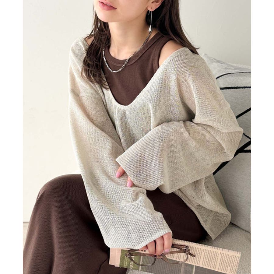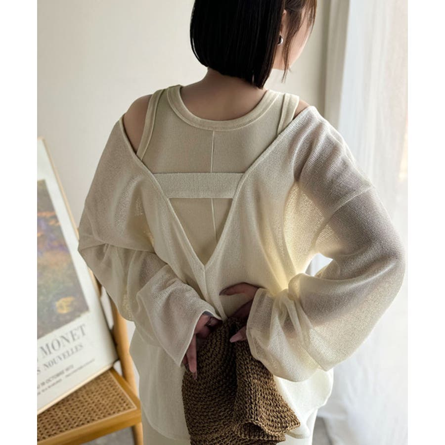 タンクトップやキャミソールと合わせたレイヤードスタイルで、