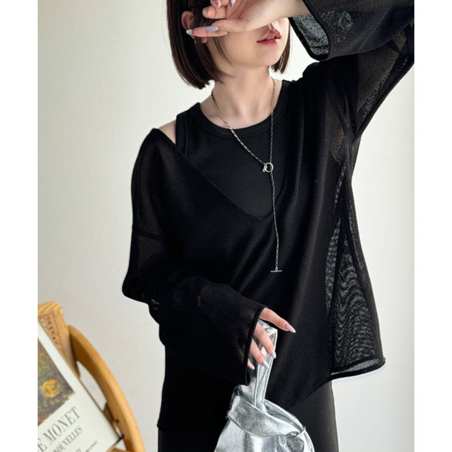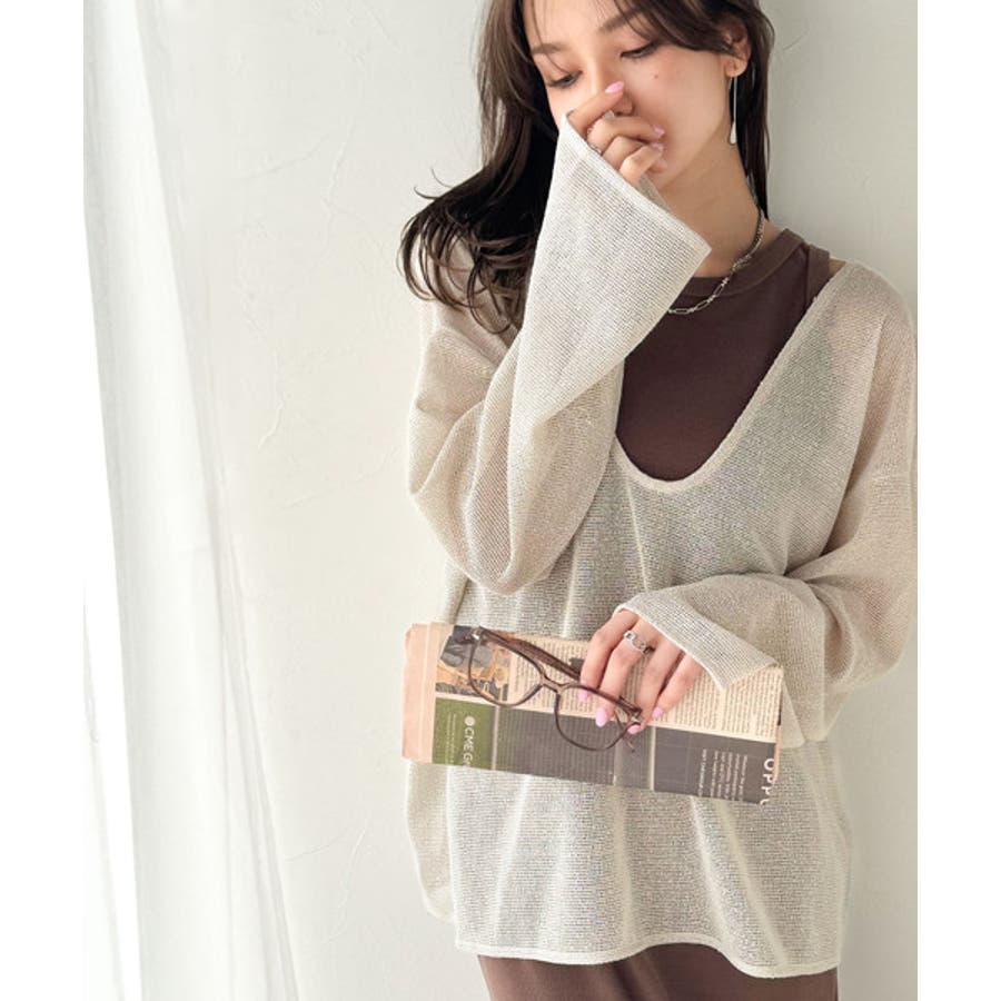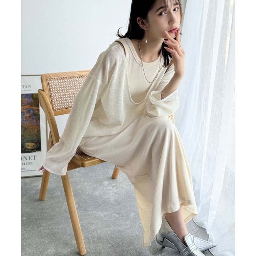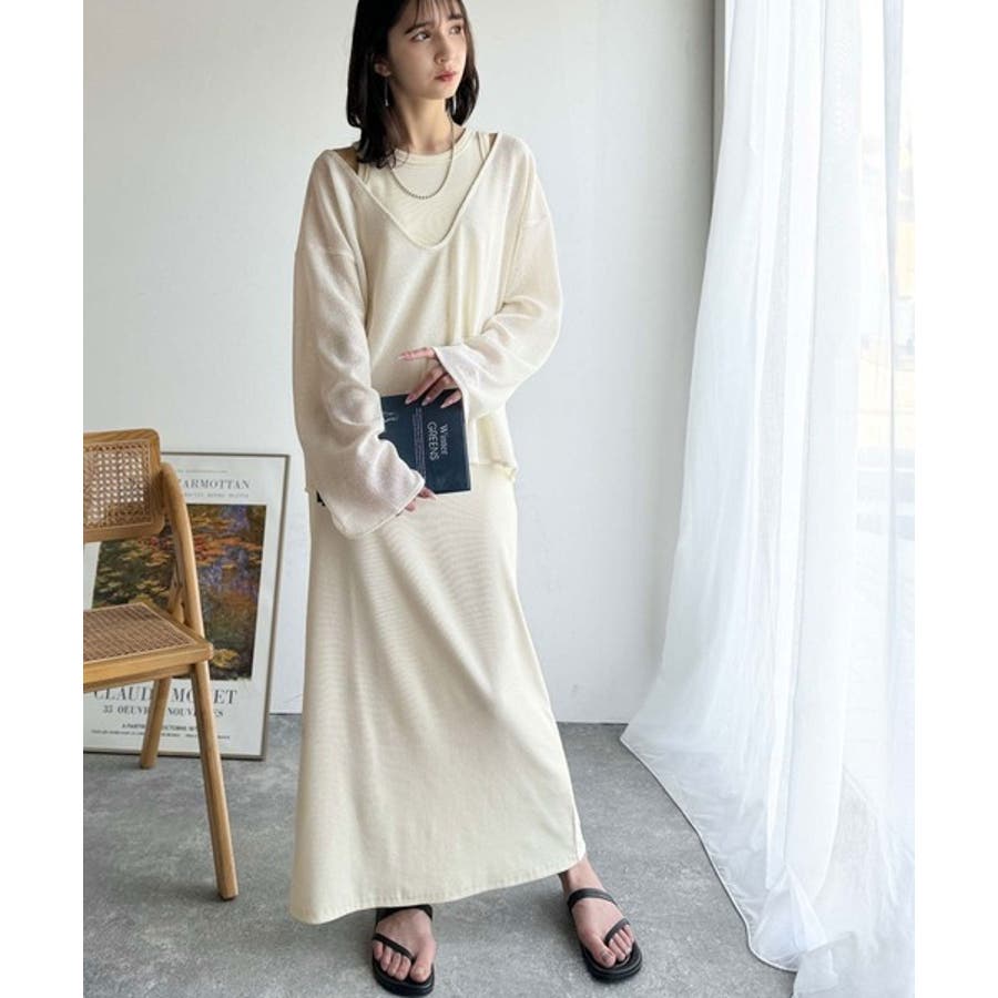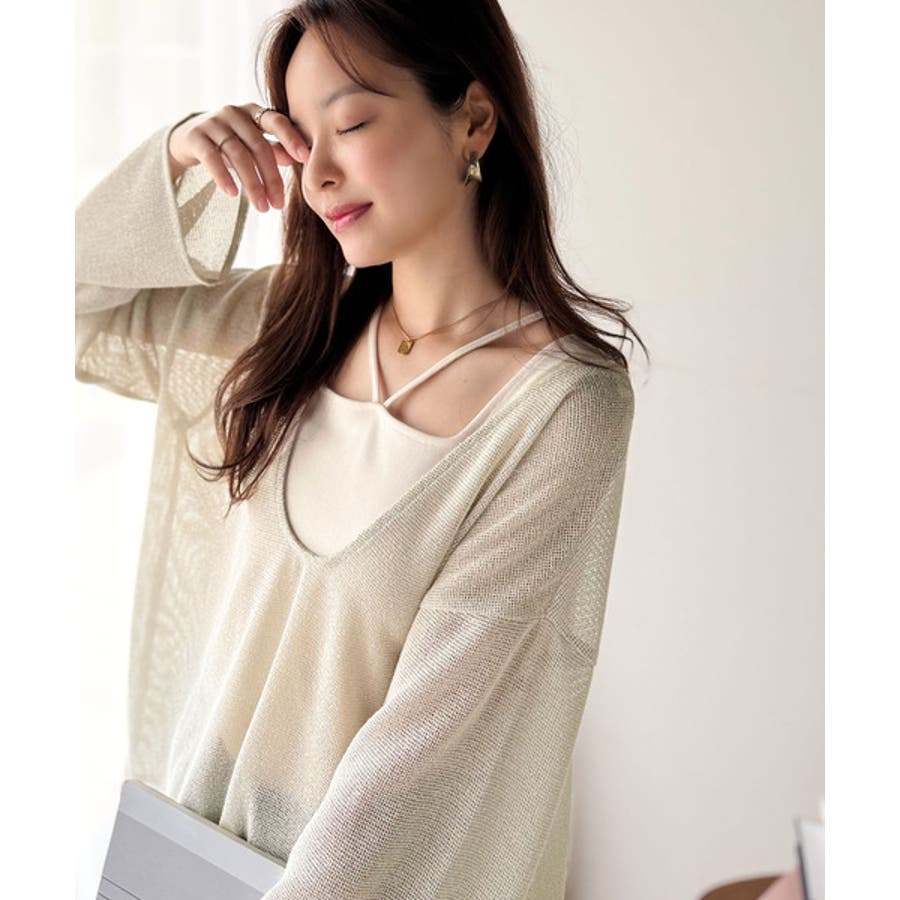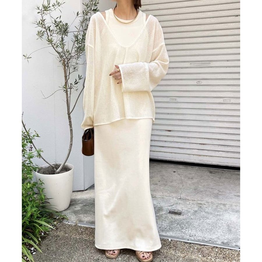 タンクトップやキャミソールと合わせたレイヤードスタイルで、
