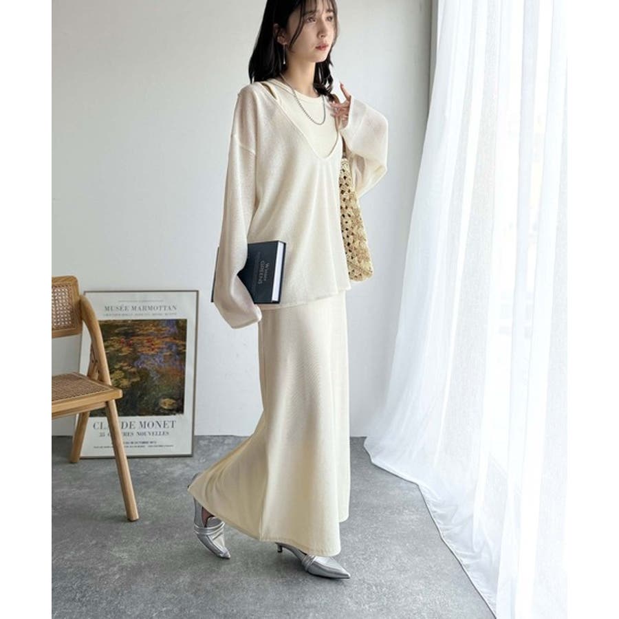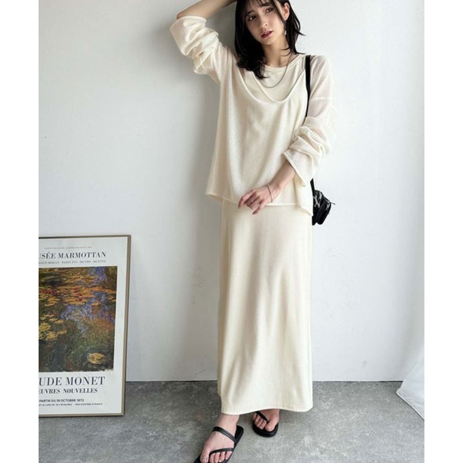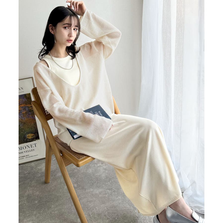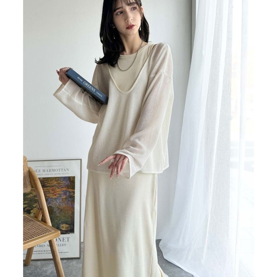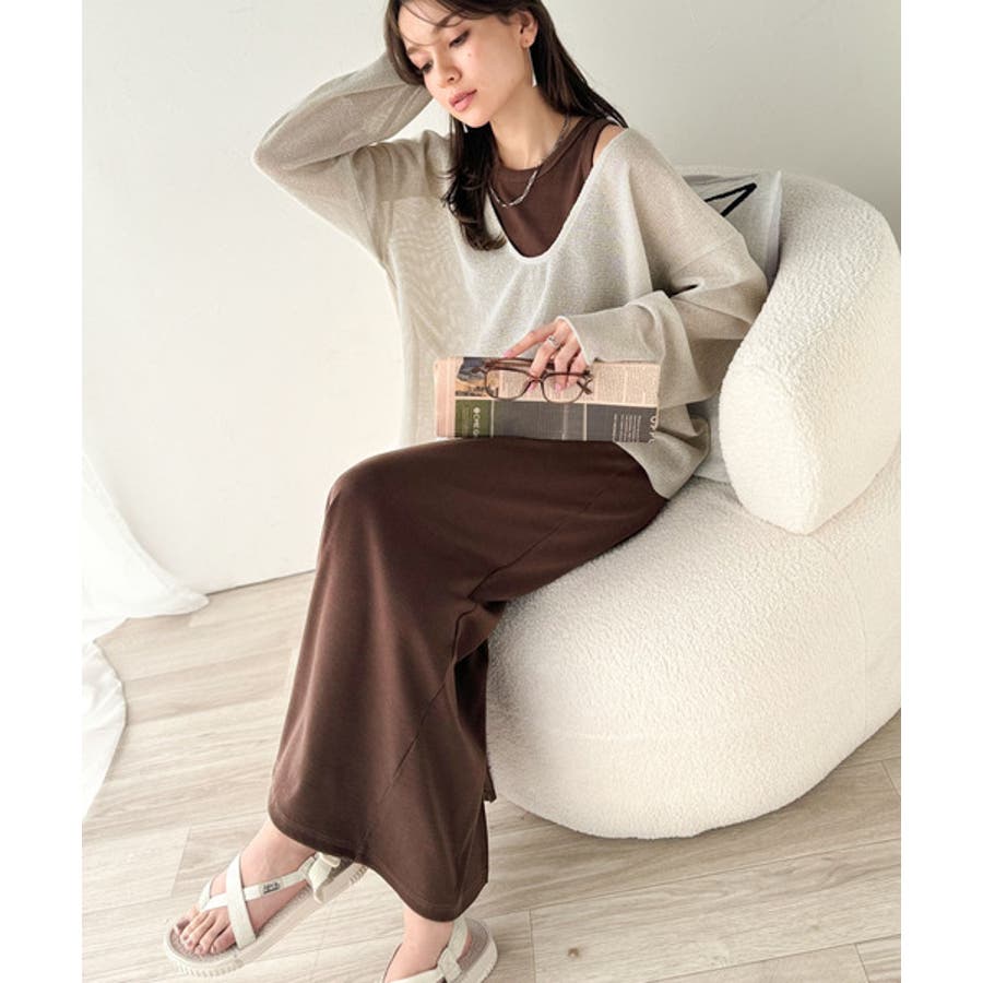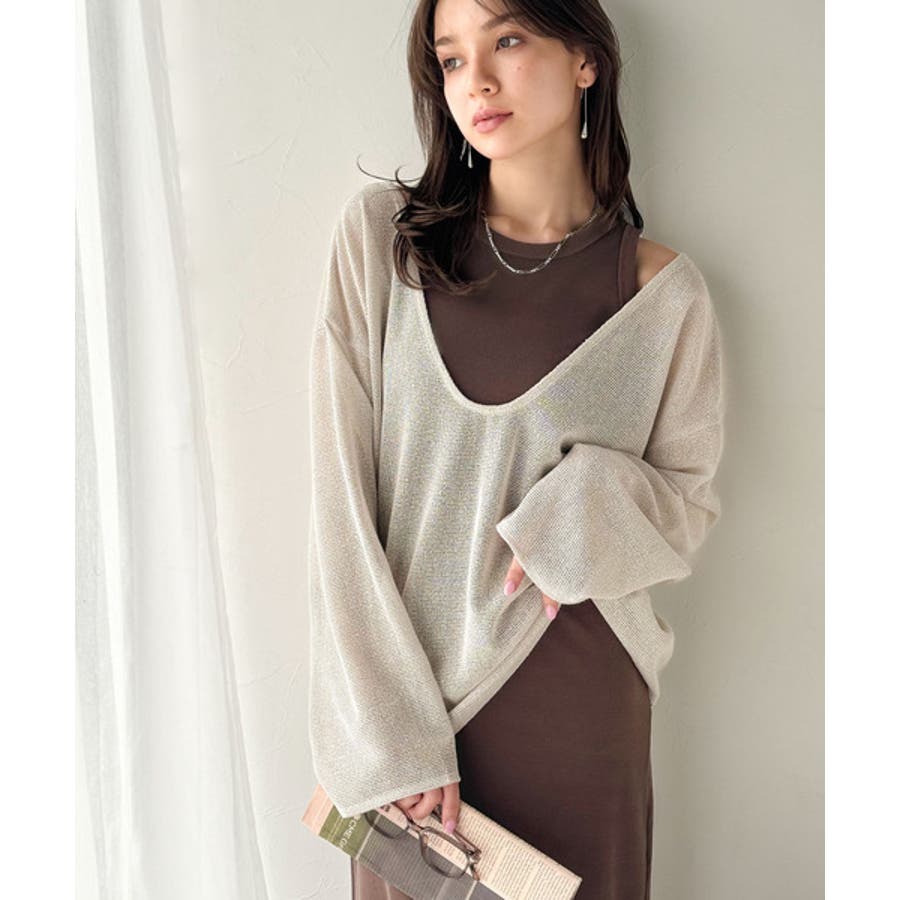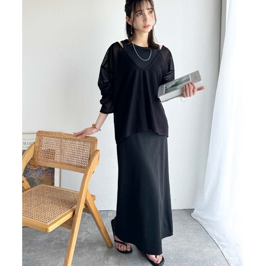 タンクトップやキャミソールと合わせたレイヤードスタイルで、