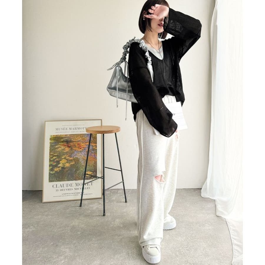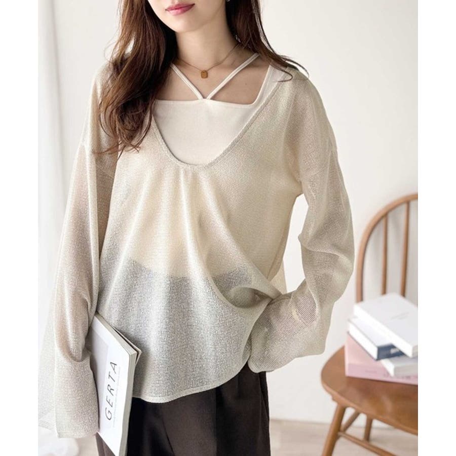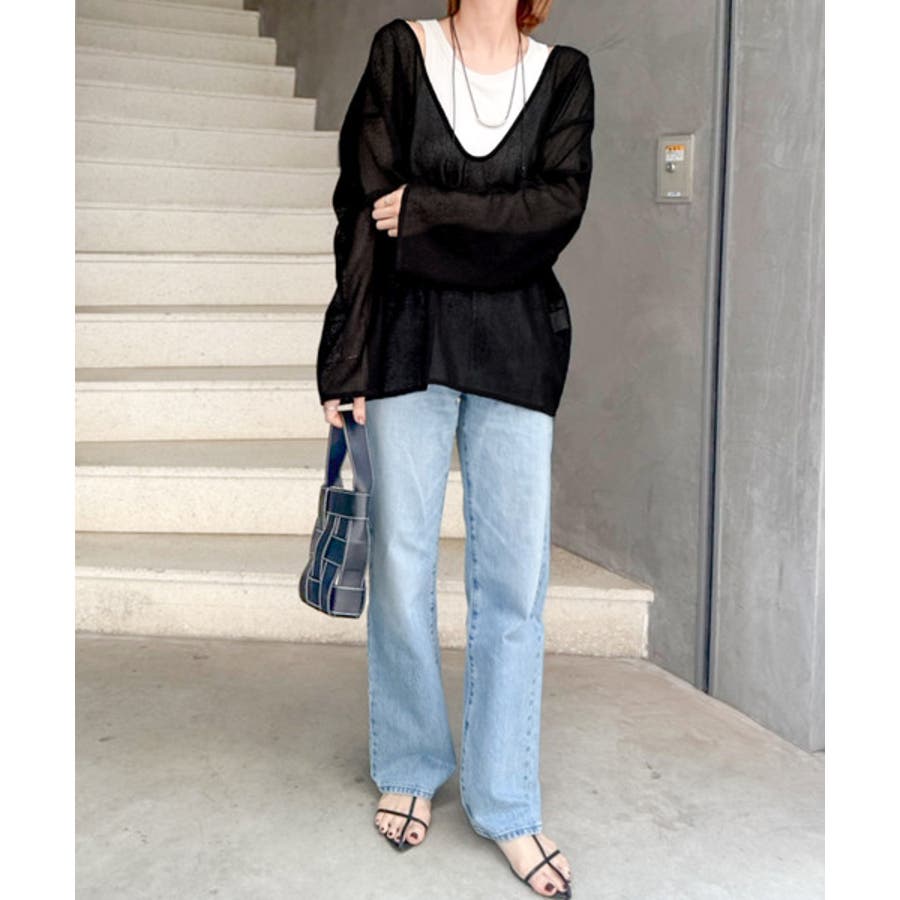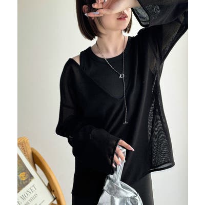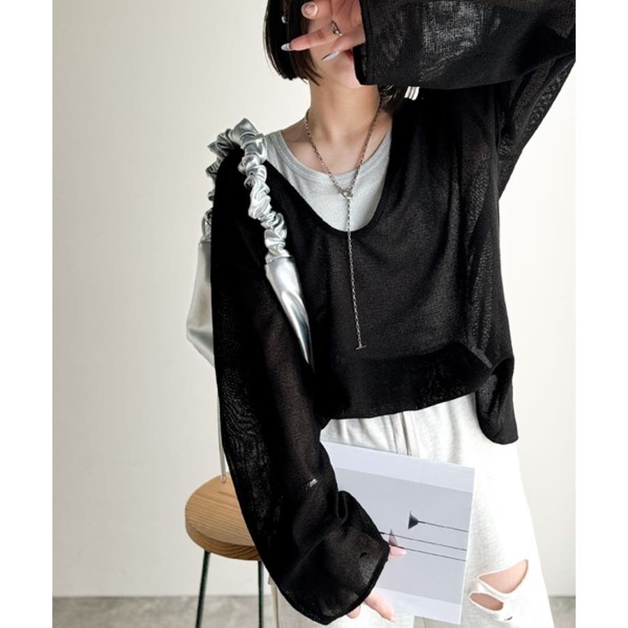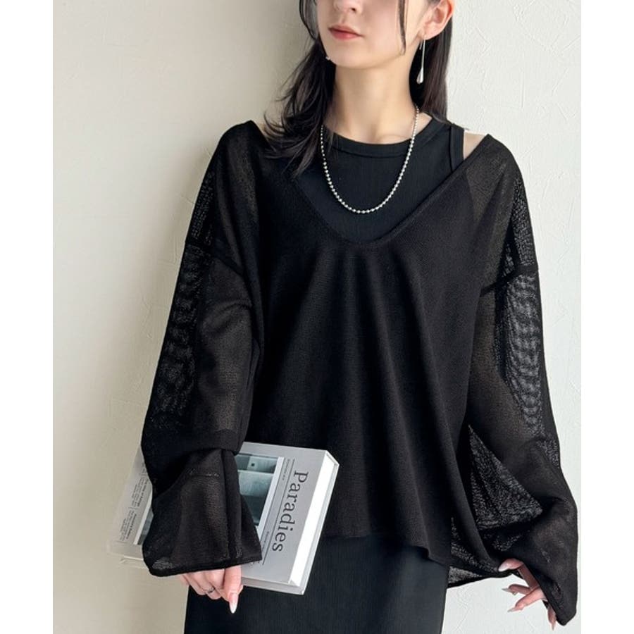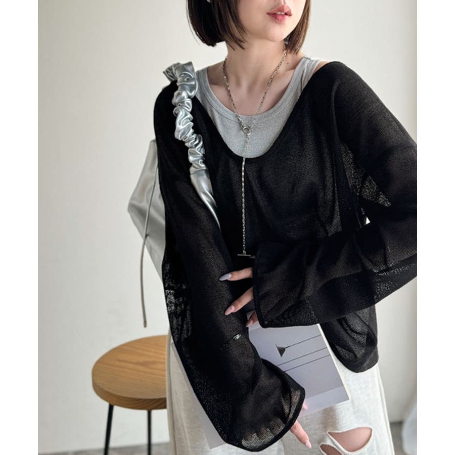 このメッシュトップスは、細かく編み込まれた高見え素材が魅力。ほどよく透け感がありつつ、肌が見えすぎない絶妙なデザインです◎