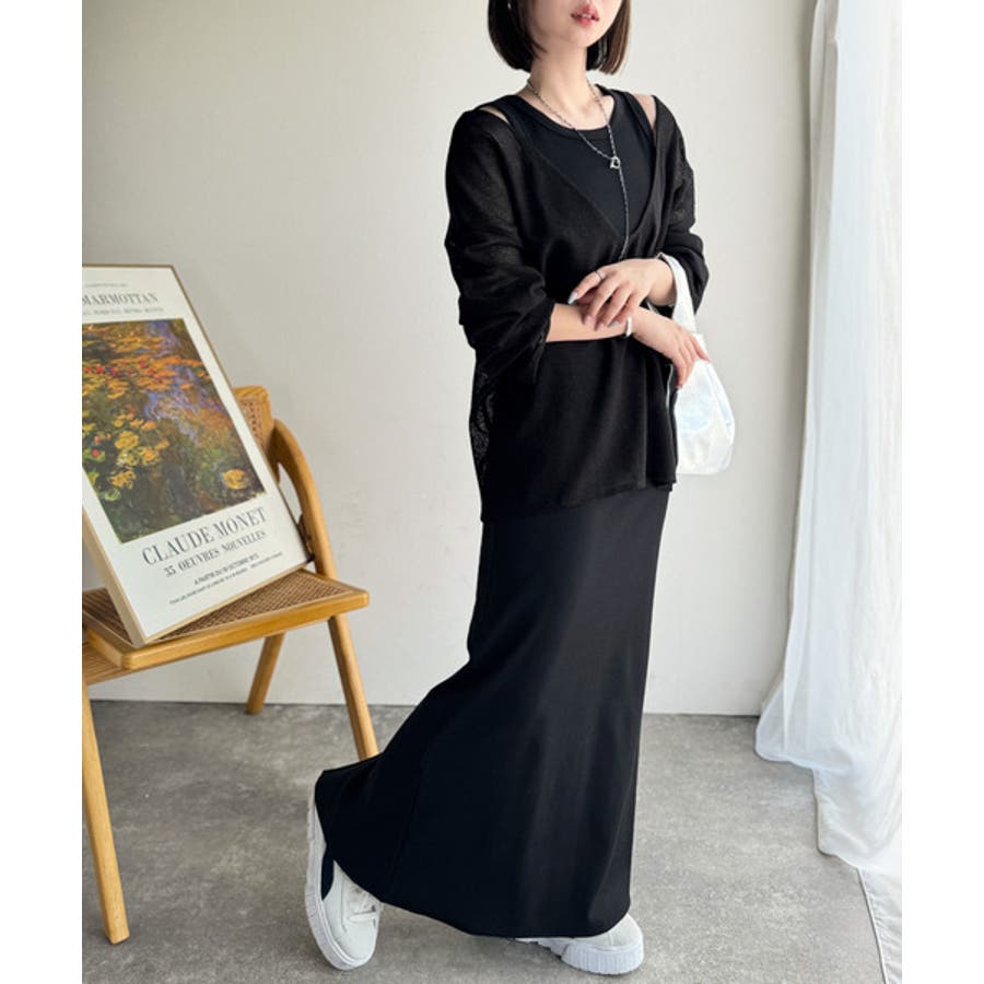 タイトスカートやキャミワンピースを合わせた女性らしいスタイルまで