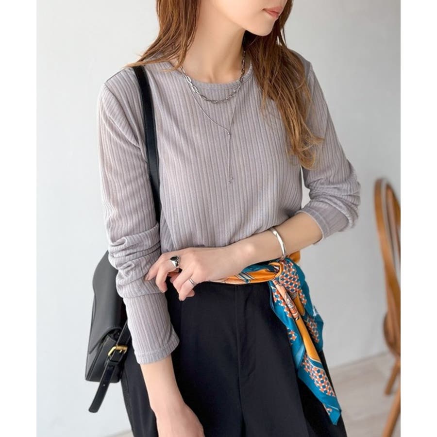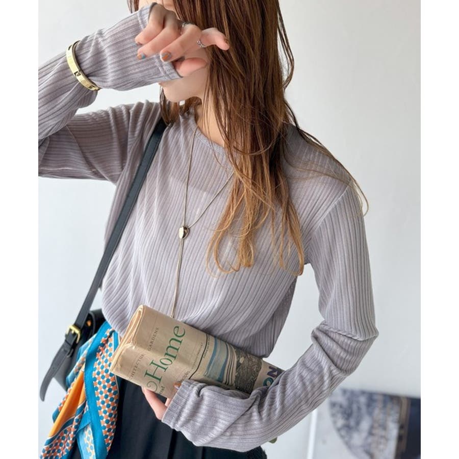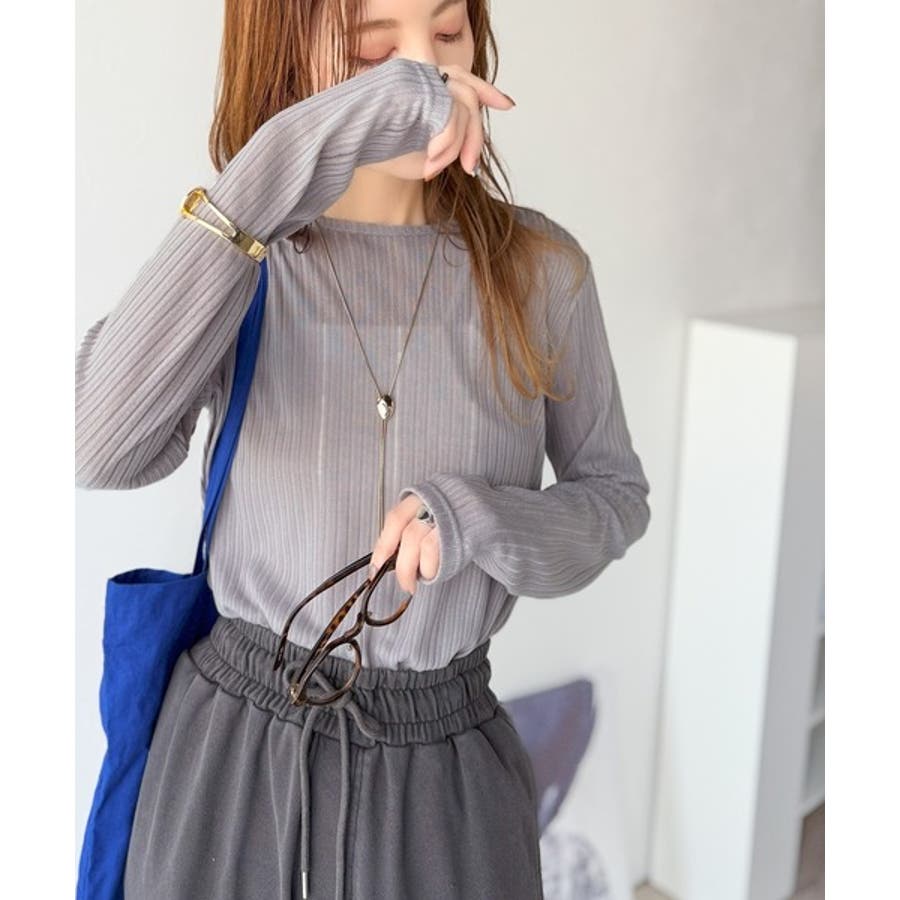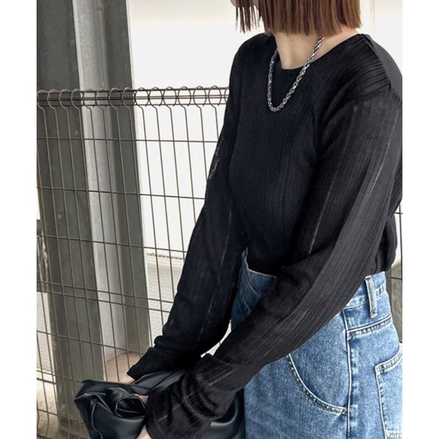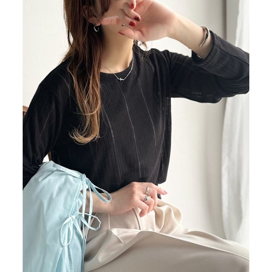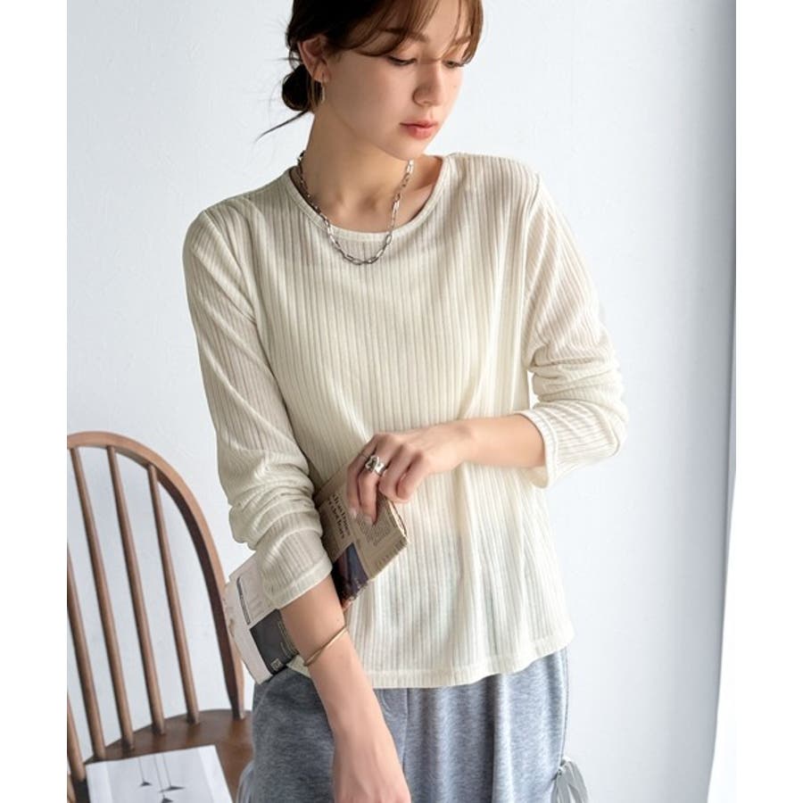 程良い透け感と縦ラインが美しいリブ編みが特徴の、大人が着たいシアートップスが