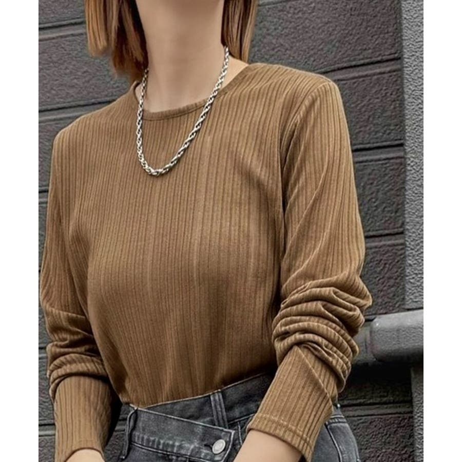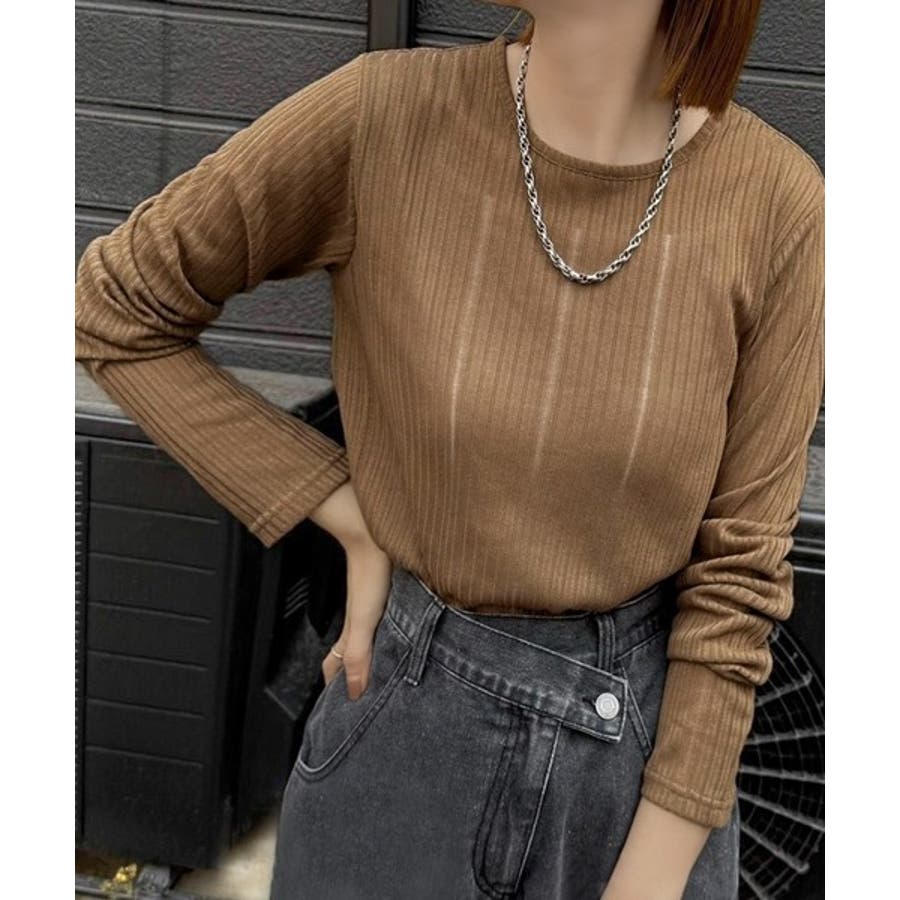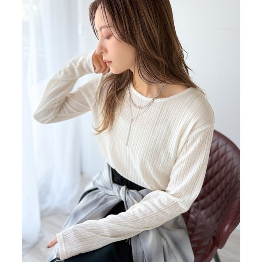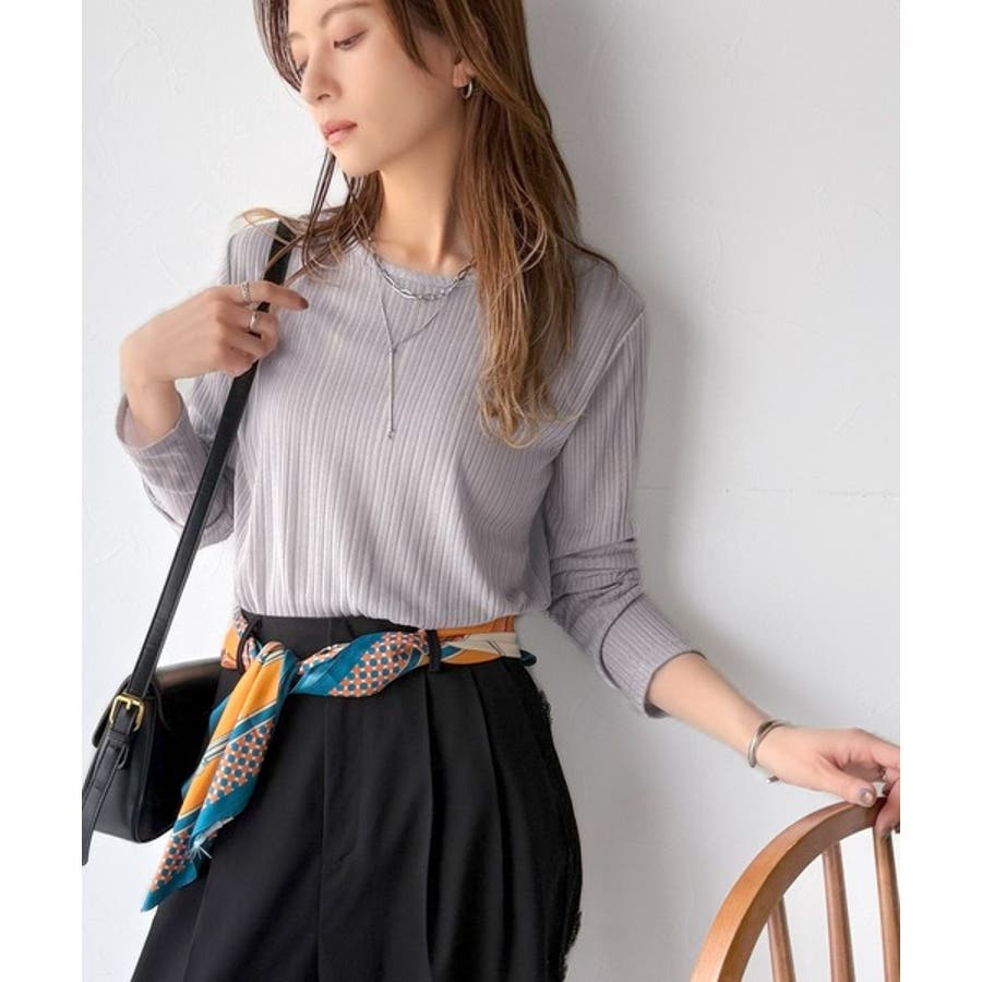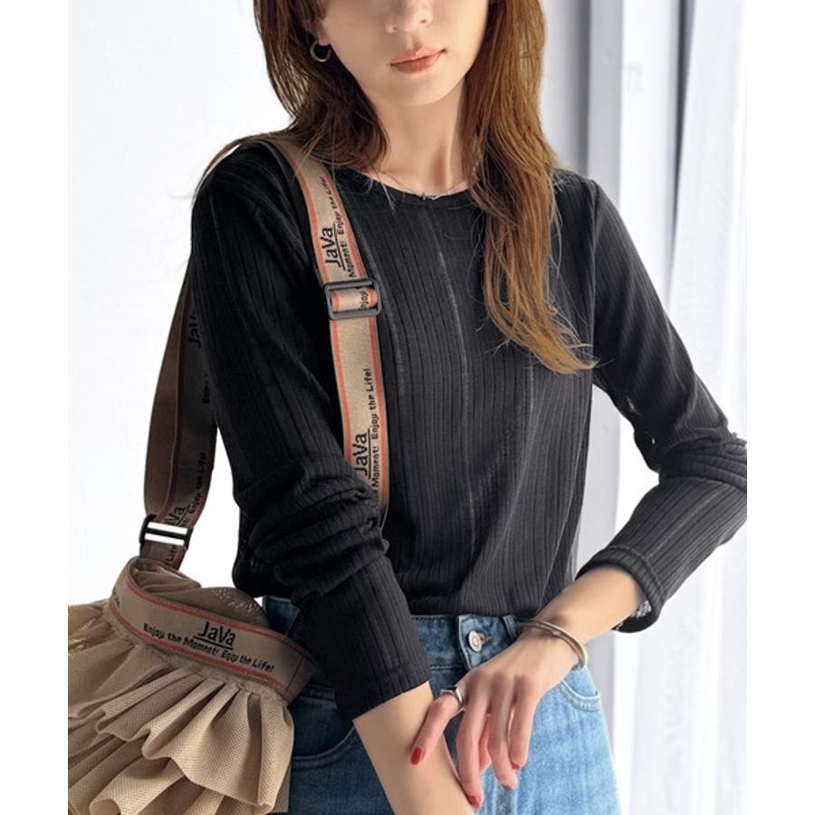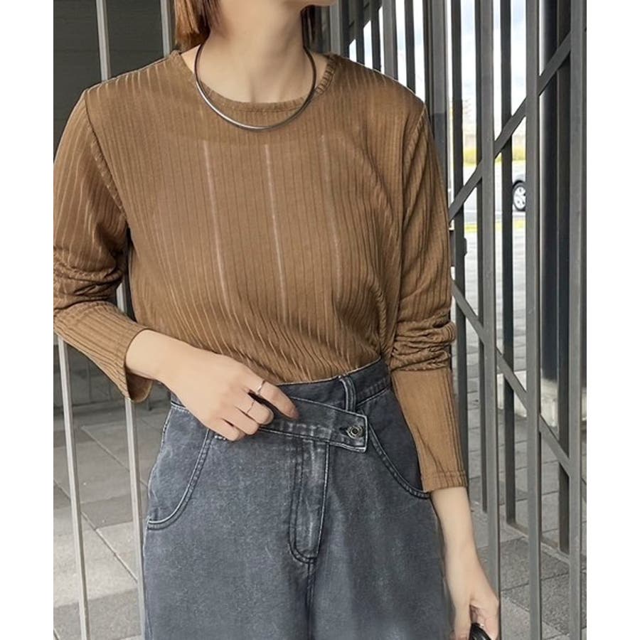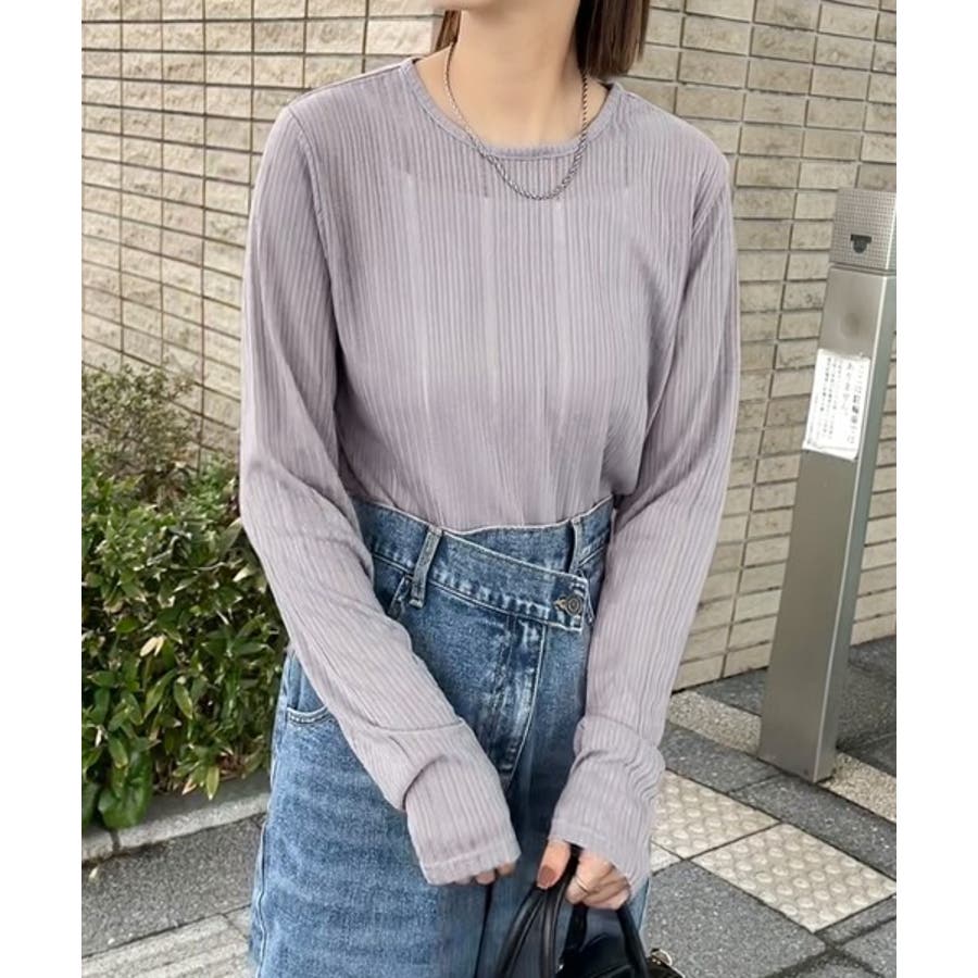 程良い透け感と縦ラインが美しいリブ編みが特徴の、大人が着たいシアートップスが