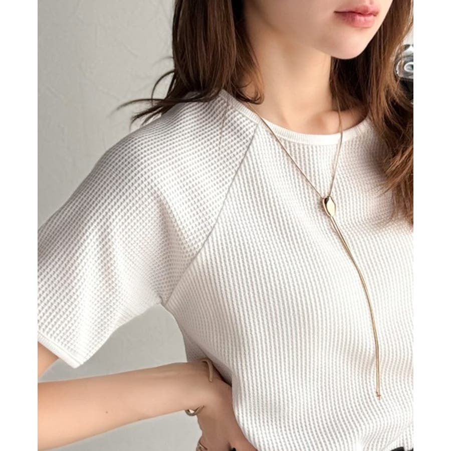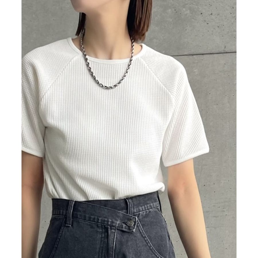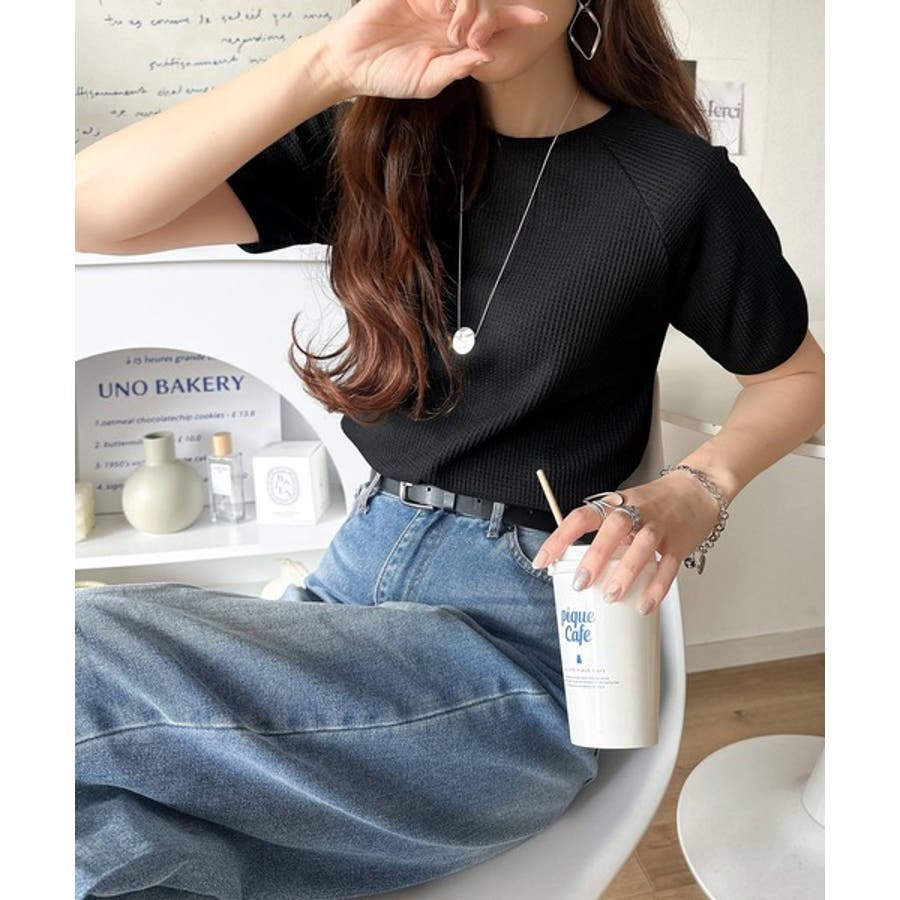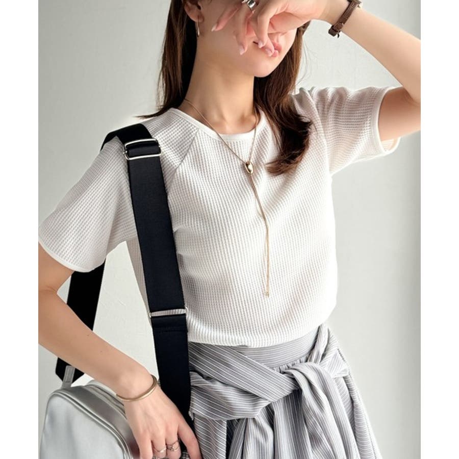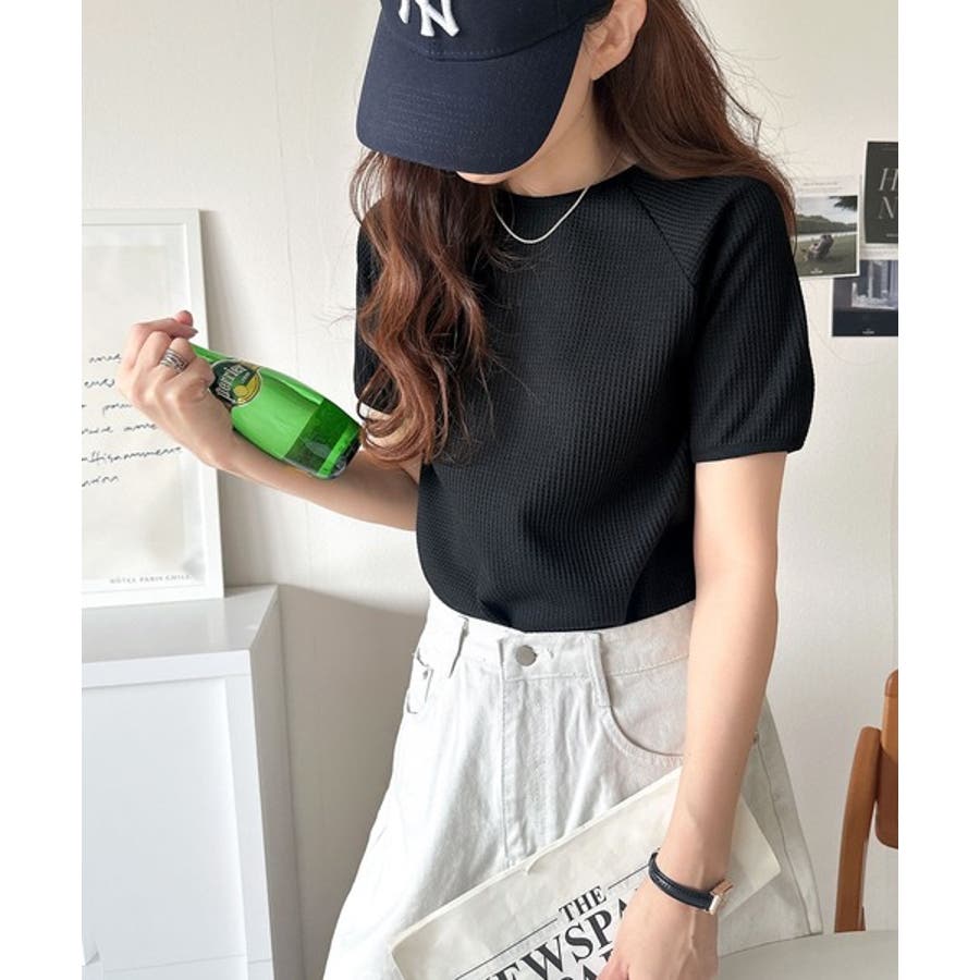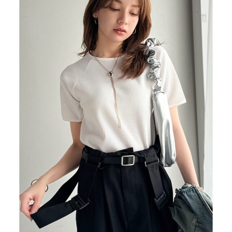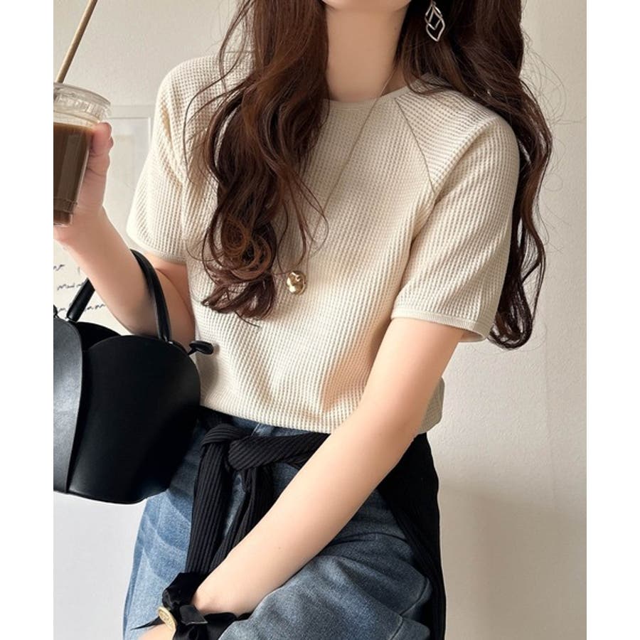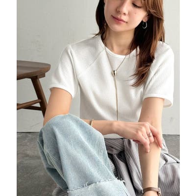 凹凸のあるワッフル素材が魅力の半袖トップス。