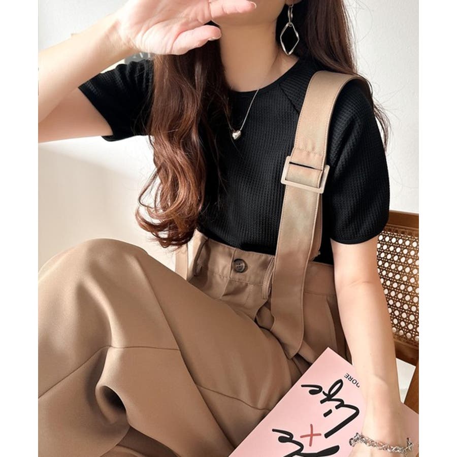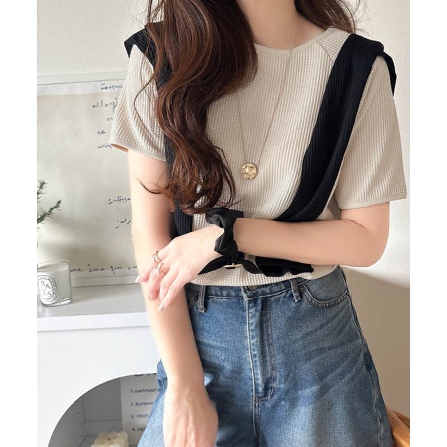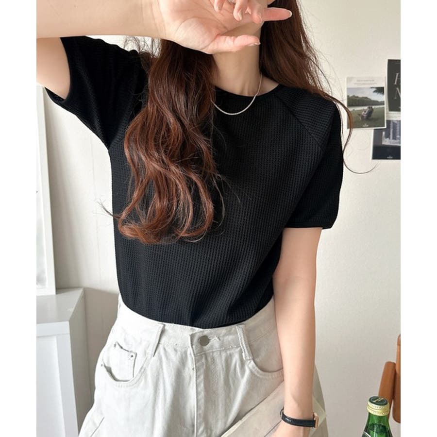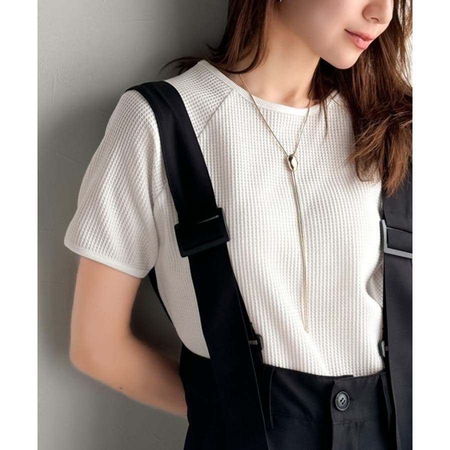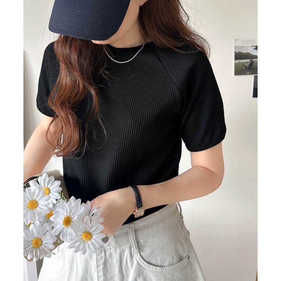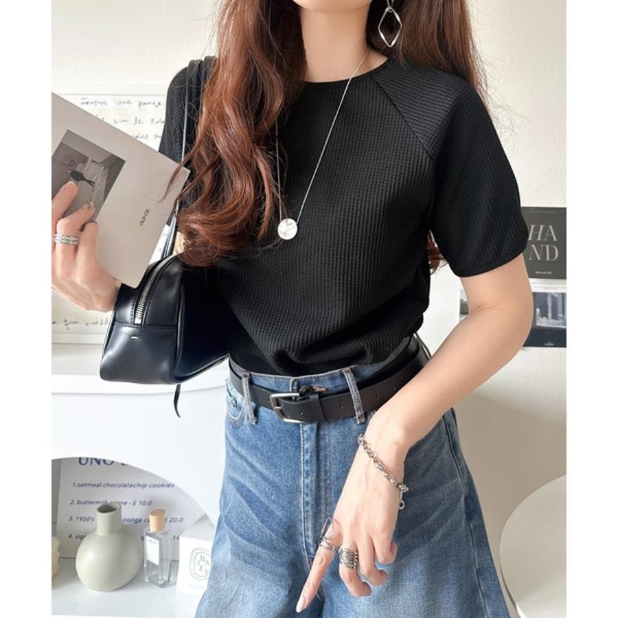 凹凸のあるワッフル素材が魅力の半袖トップス。