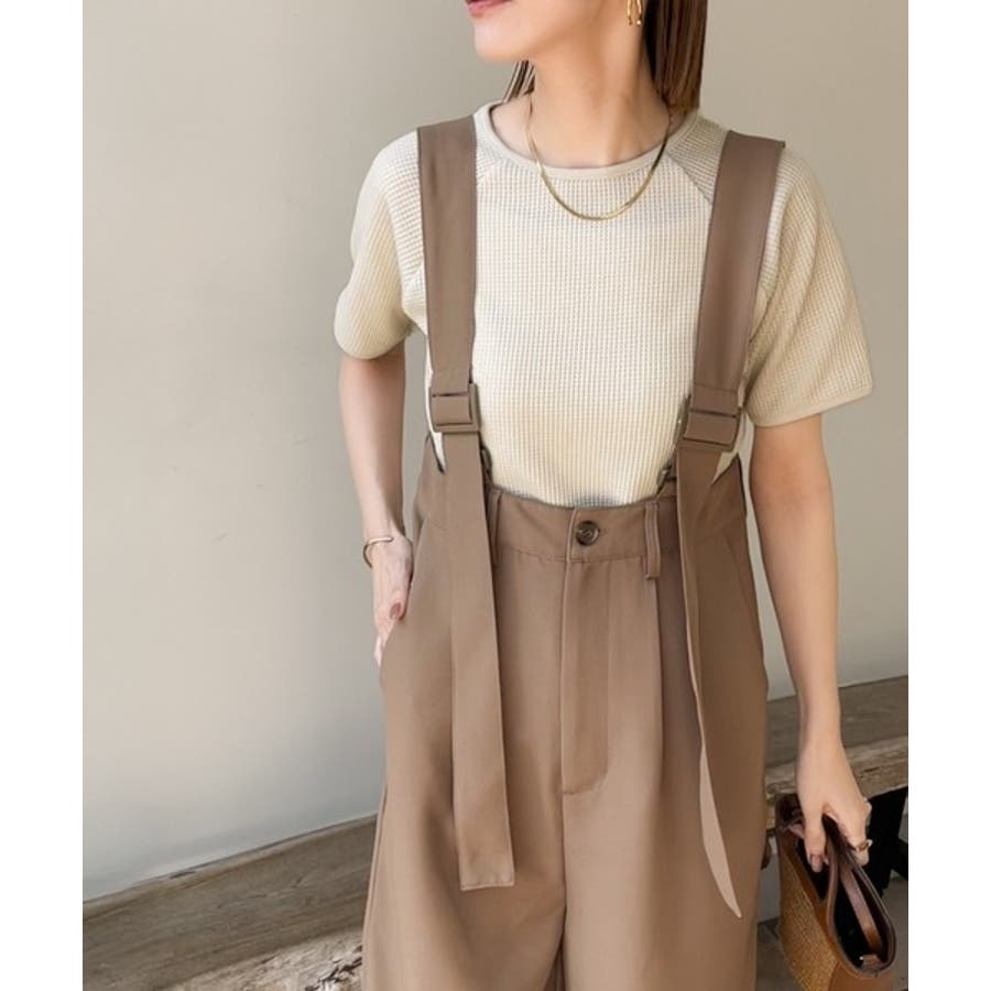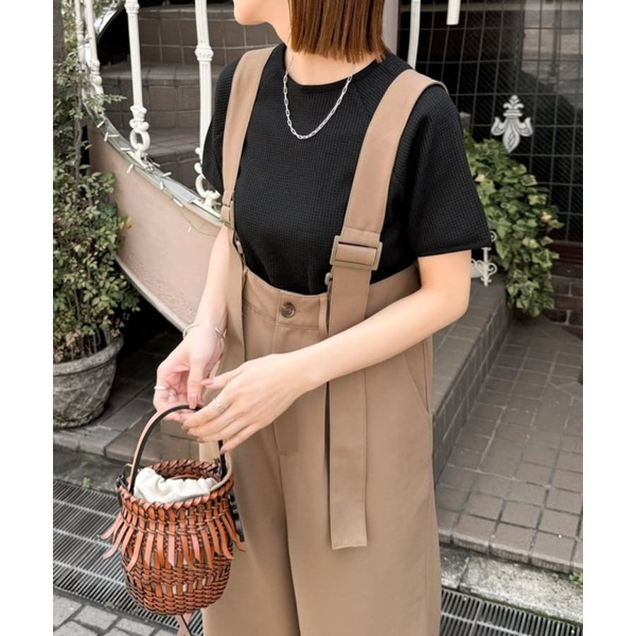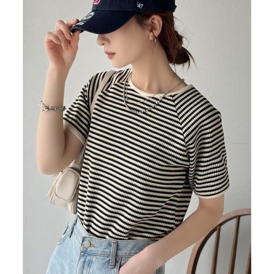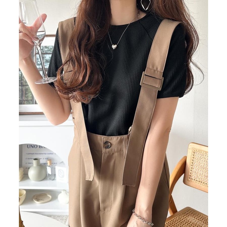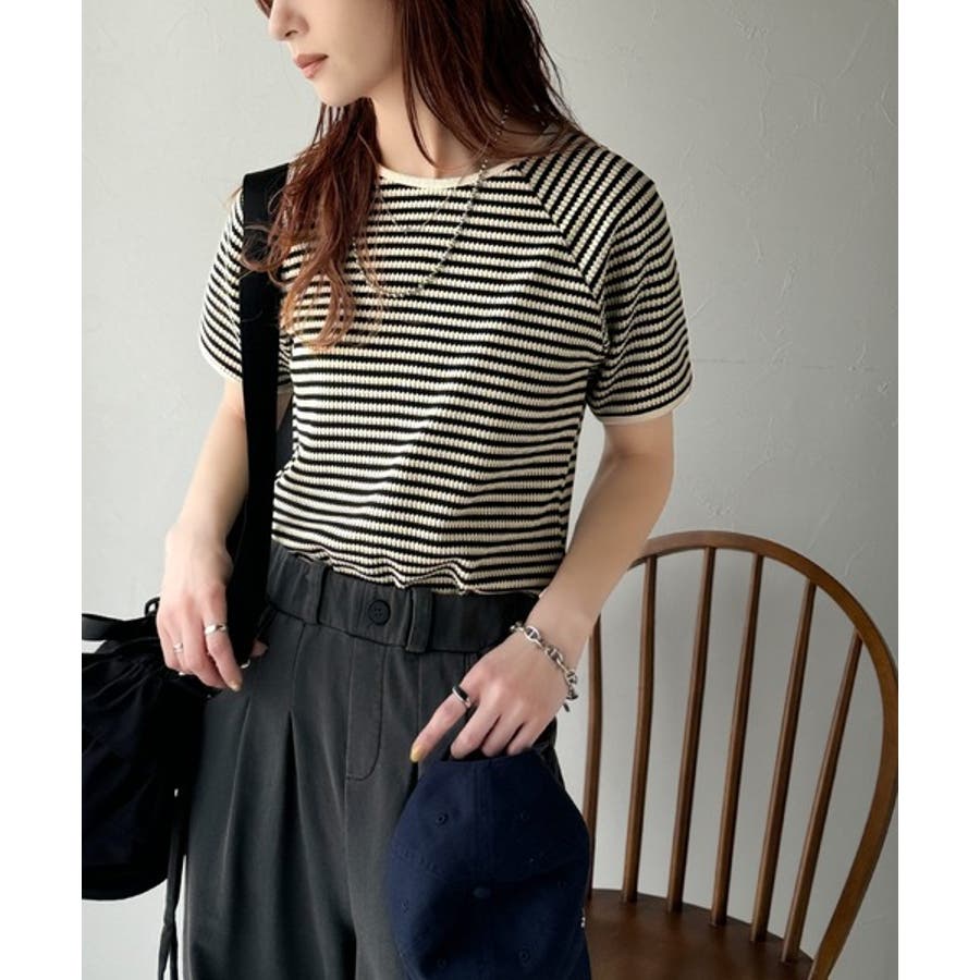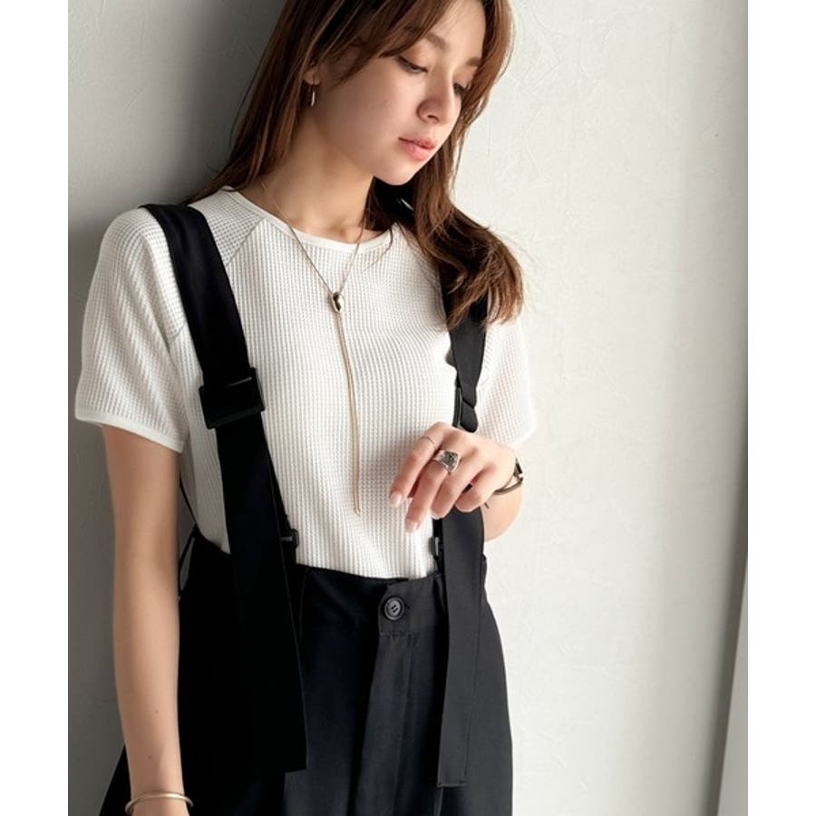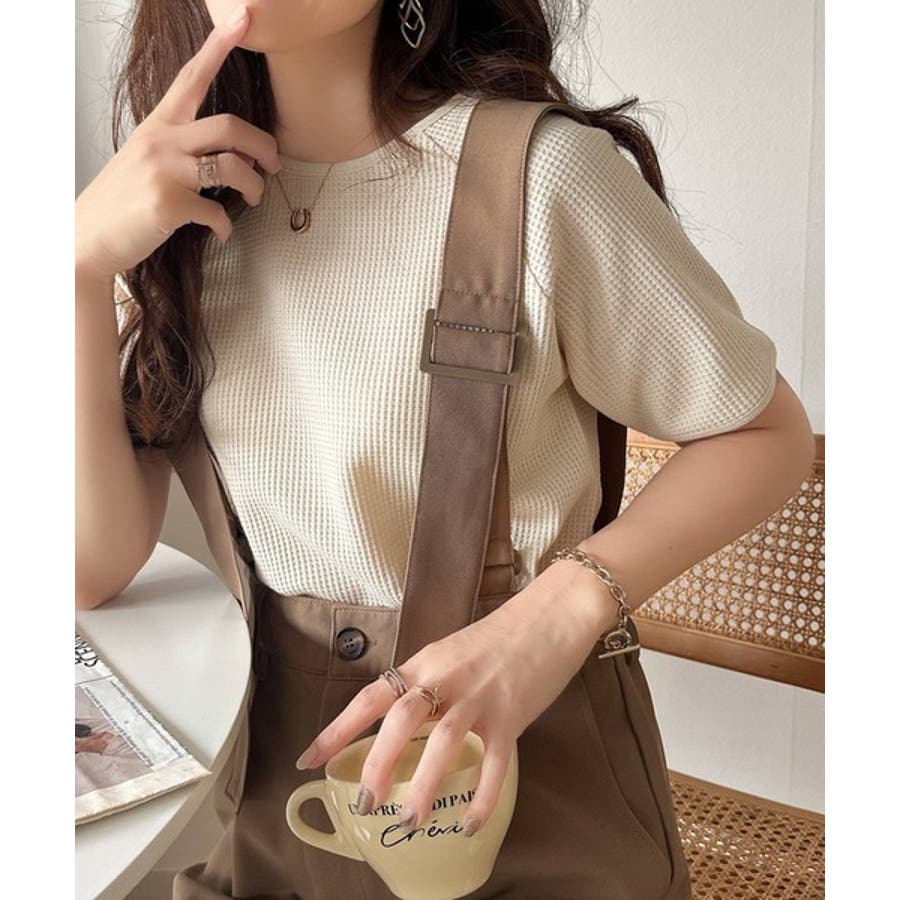凹凸のあるワッフル素材が魅力の半袖トップス。
