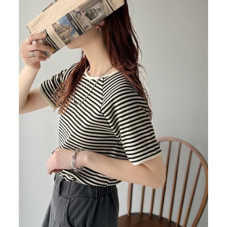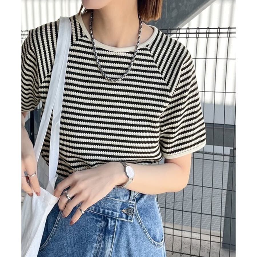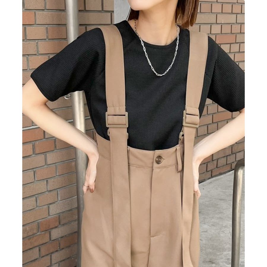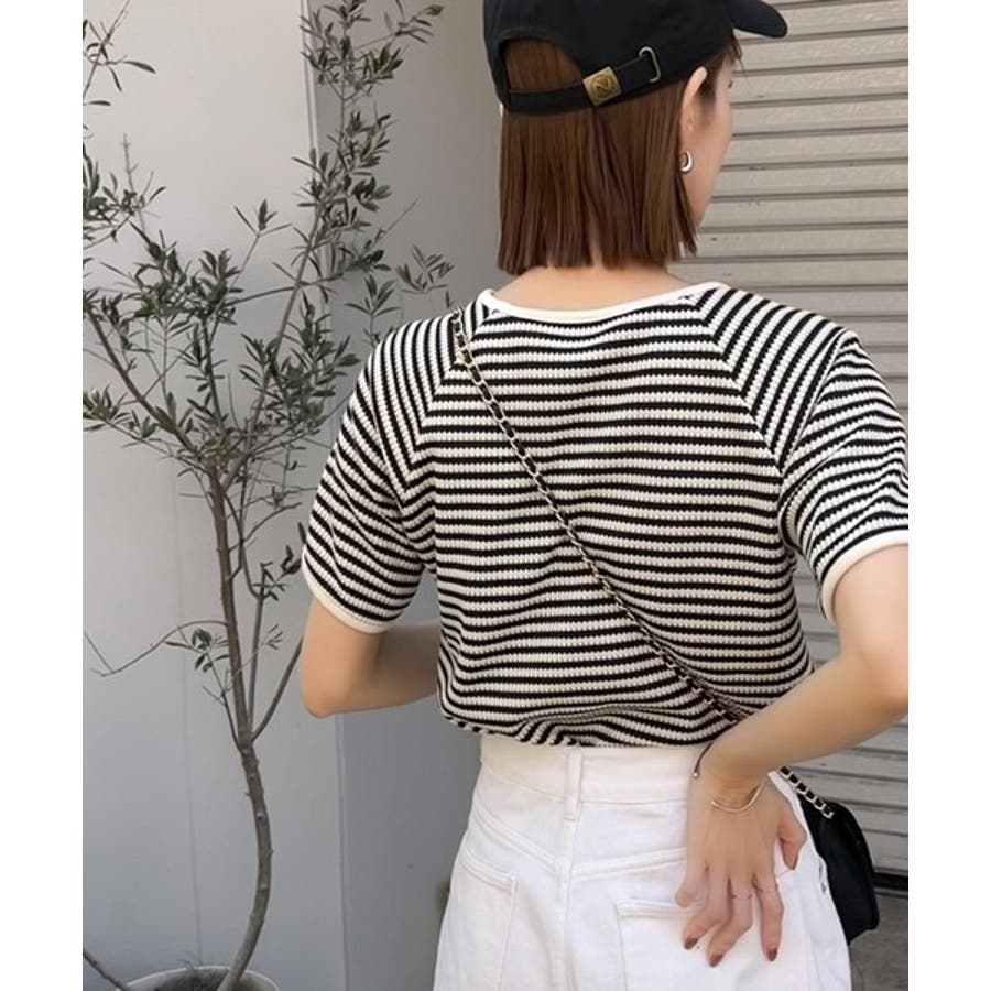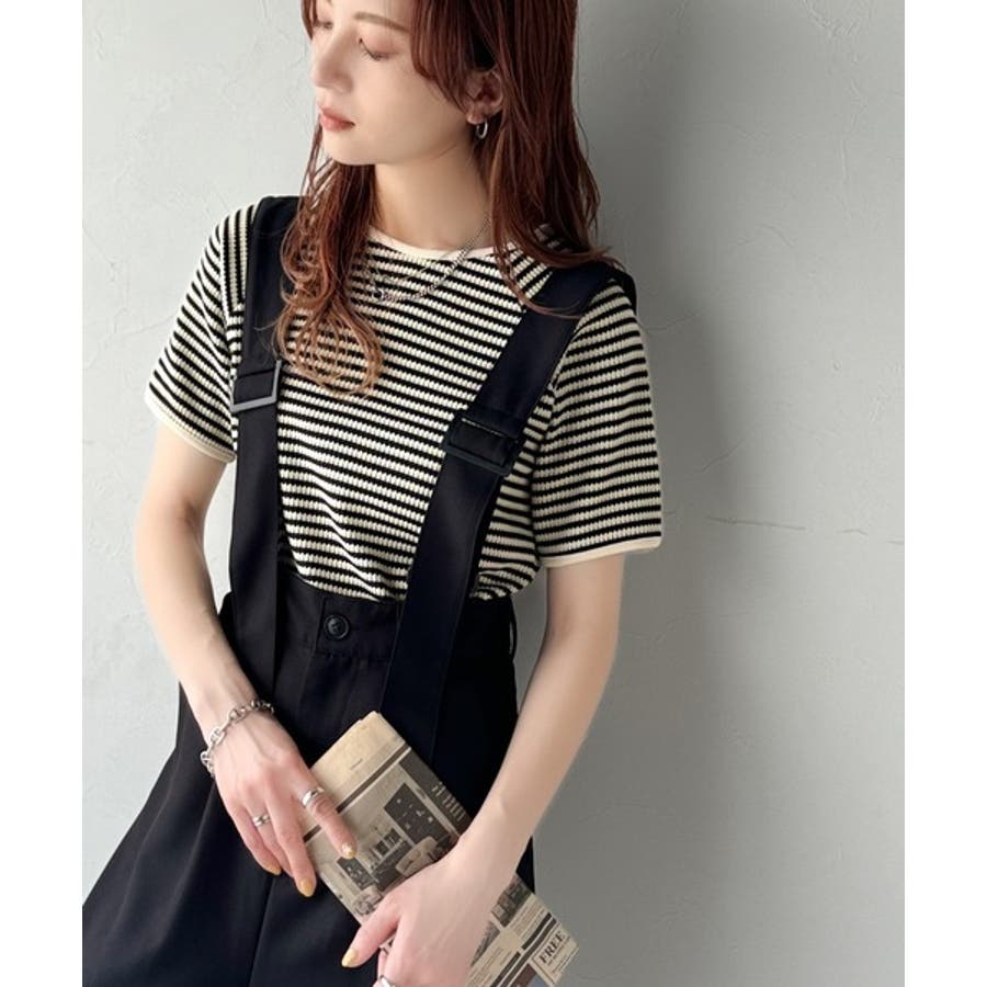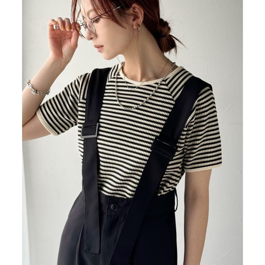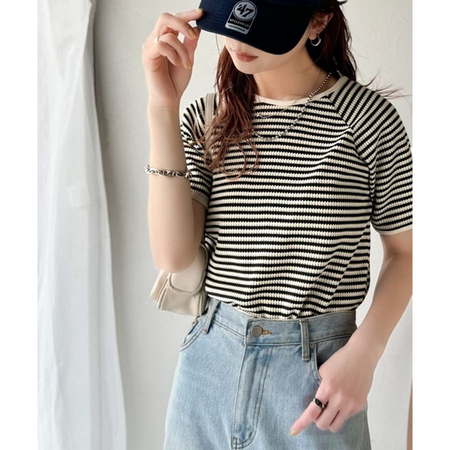 凹凸のあるワッフル素材が魅力の半袖トップス。