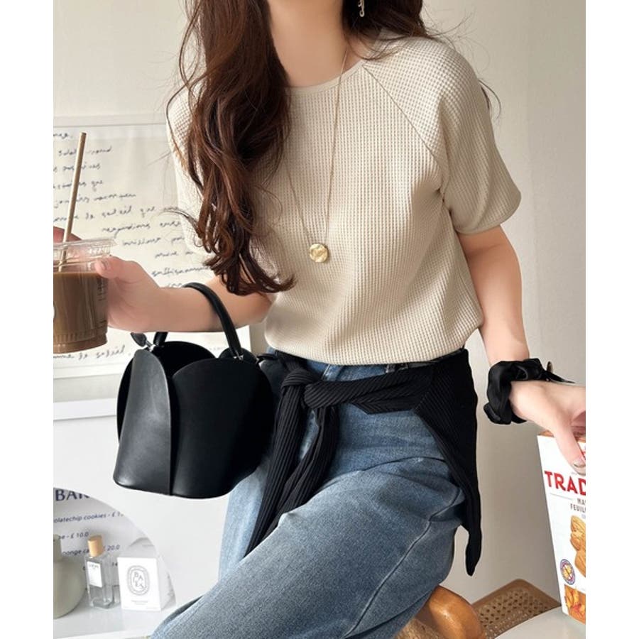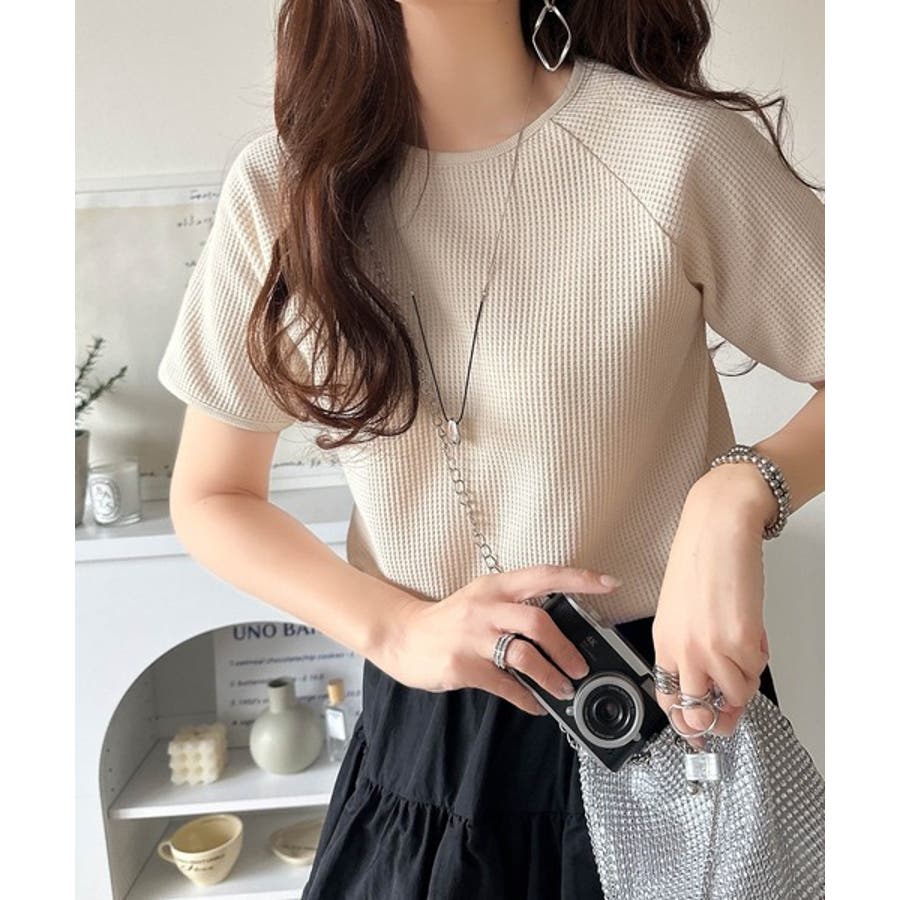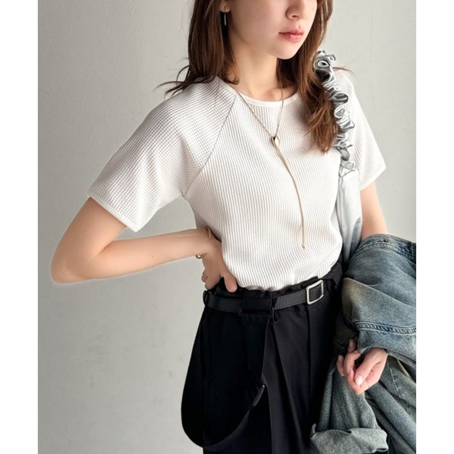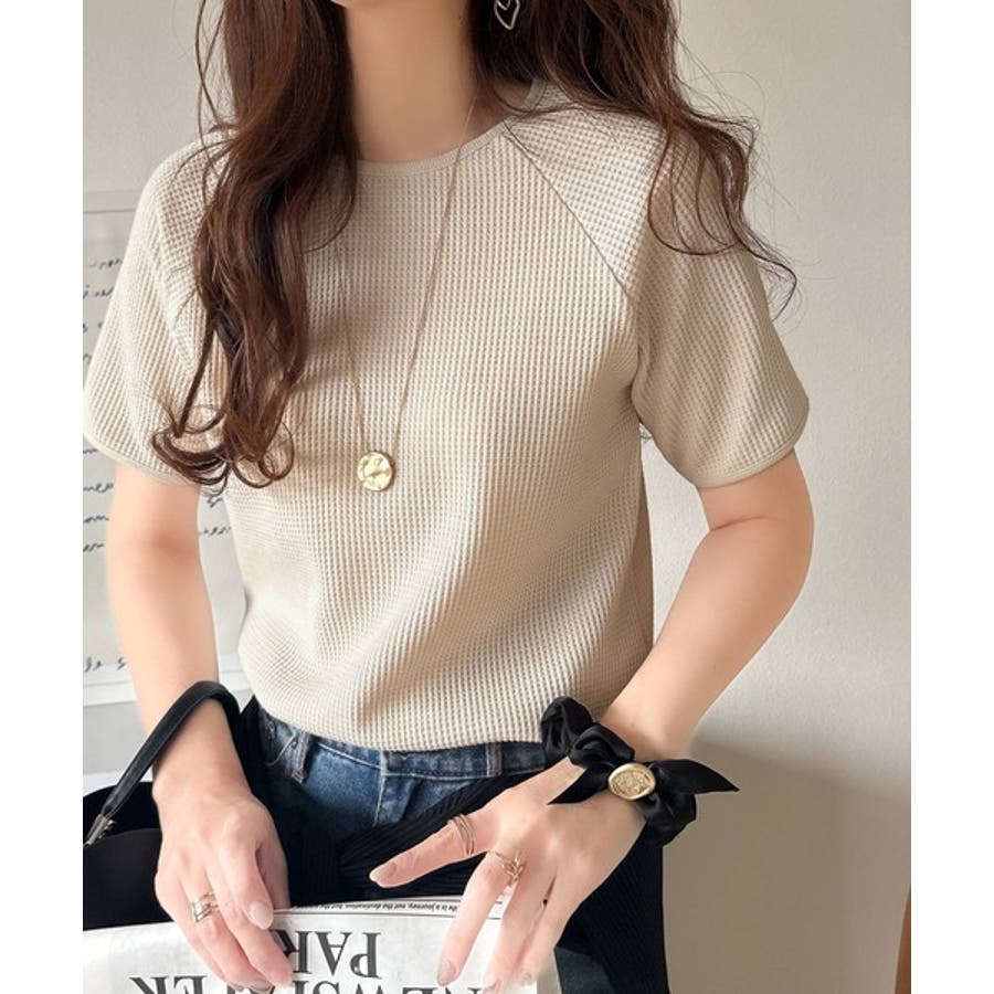 ワッフル素材&ラグランスリーブで、こなれ感も女性らしさも叶える一枚♪