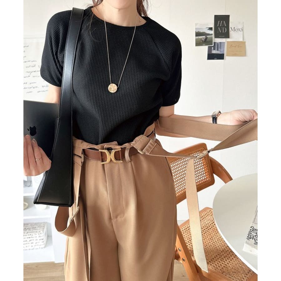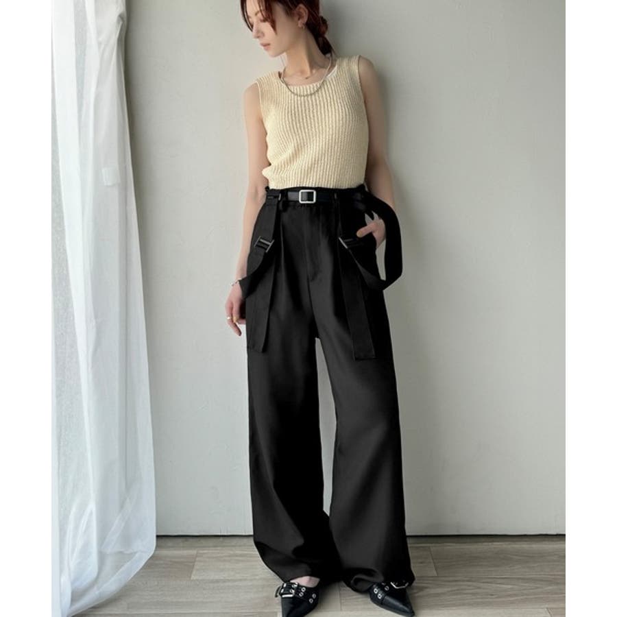 きれいめな落ち感素材と、ウエストマークのベルトデザインが主役。