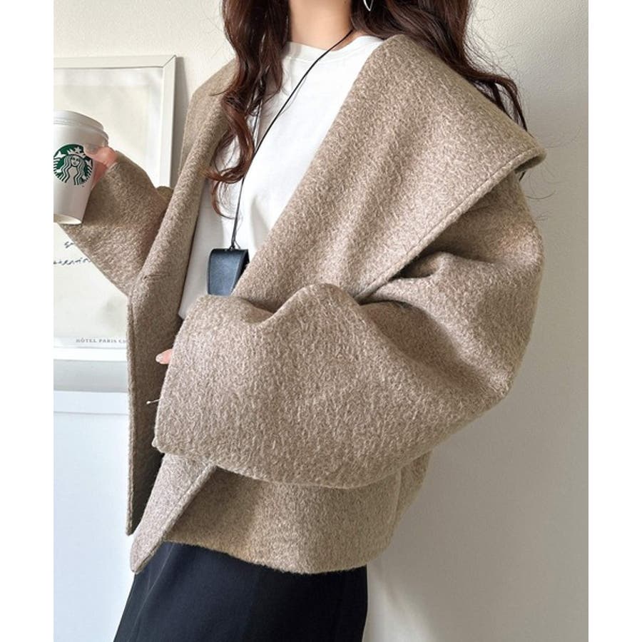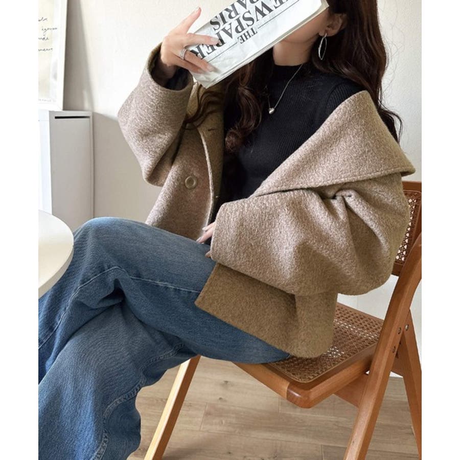 ビッグカラーで小顔見え。ふわっと羽織って、キュンとこなれる。ビッグカラーフェイク…