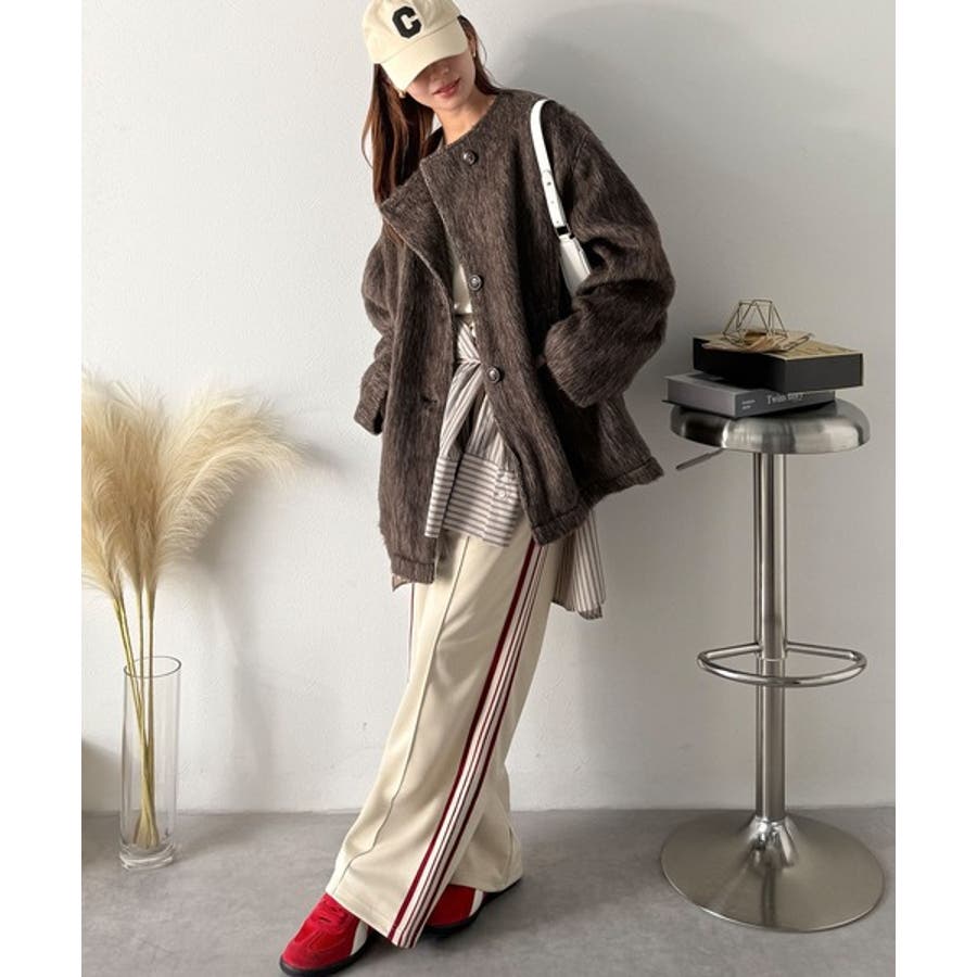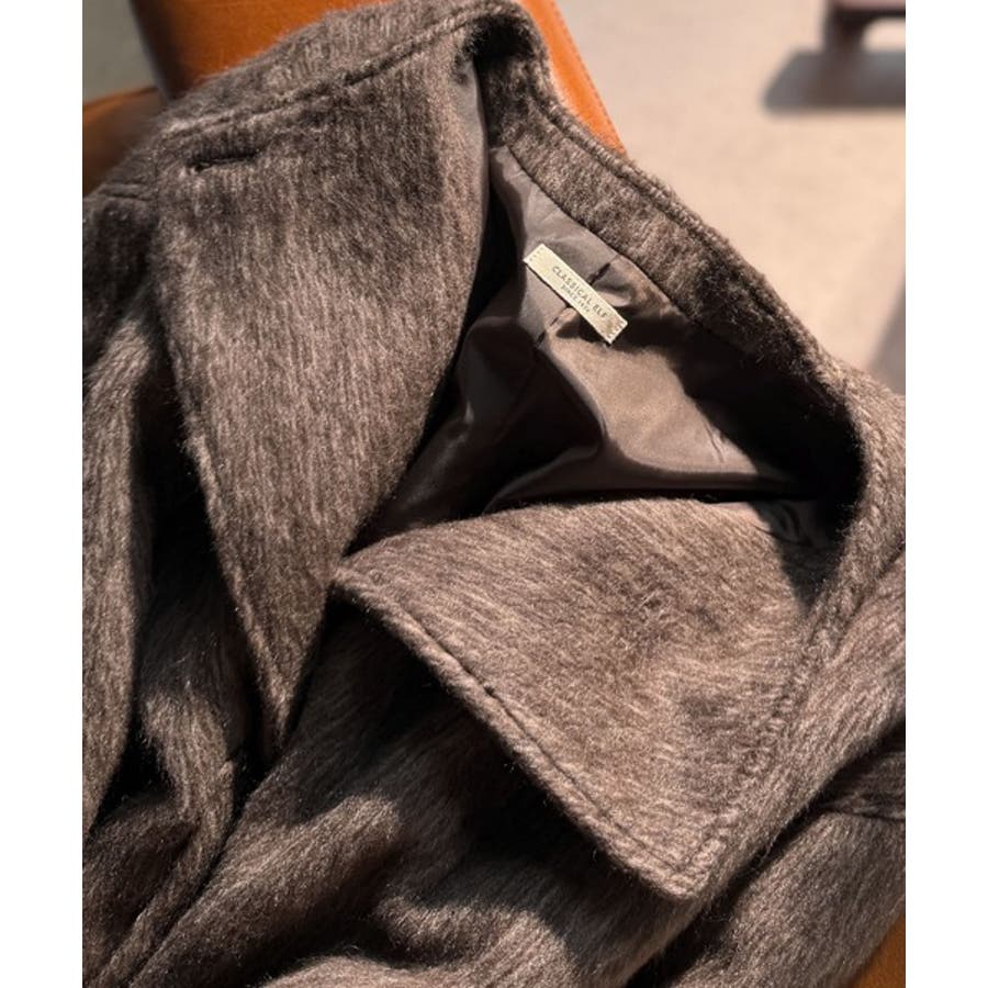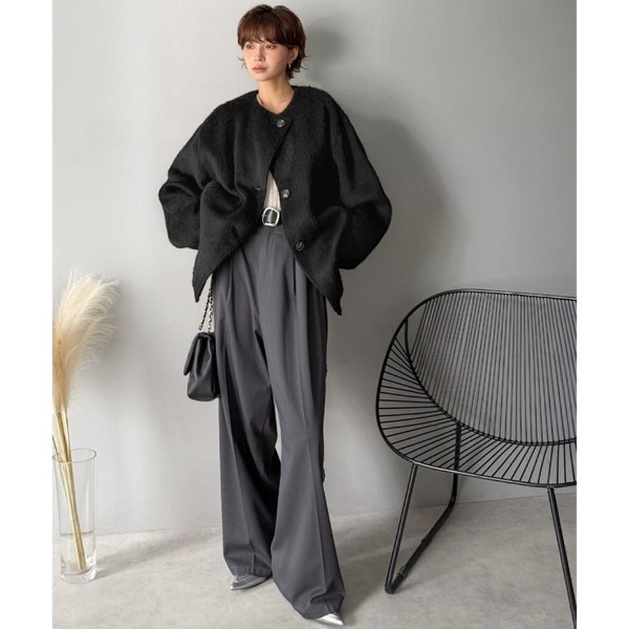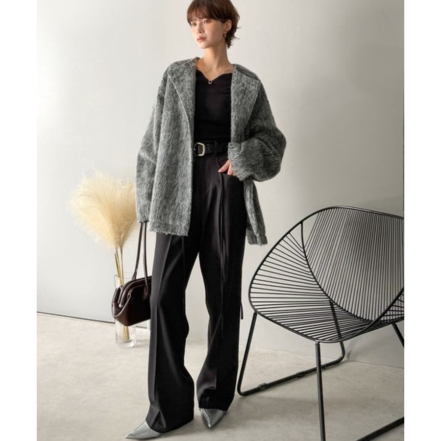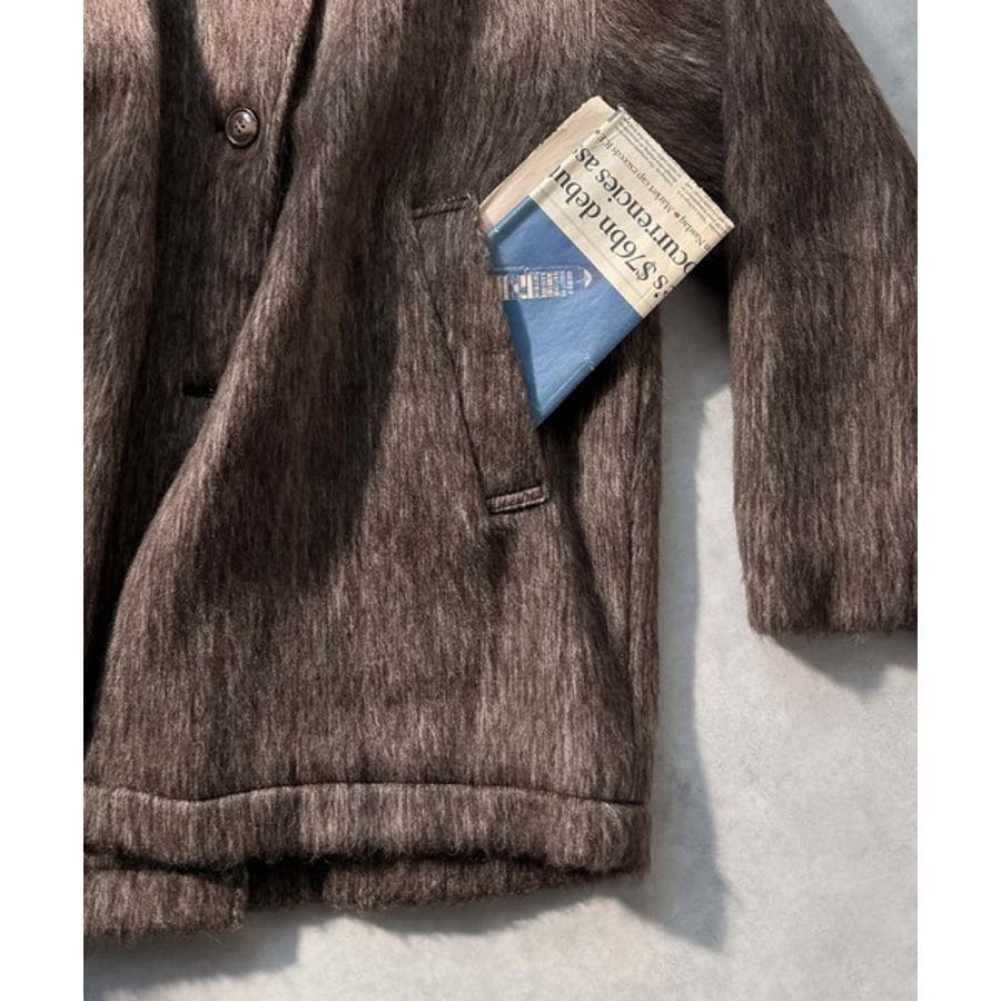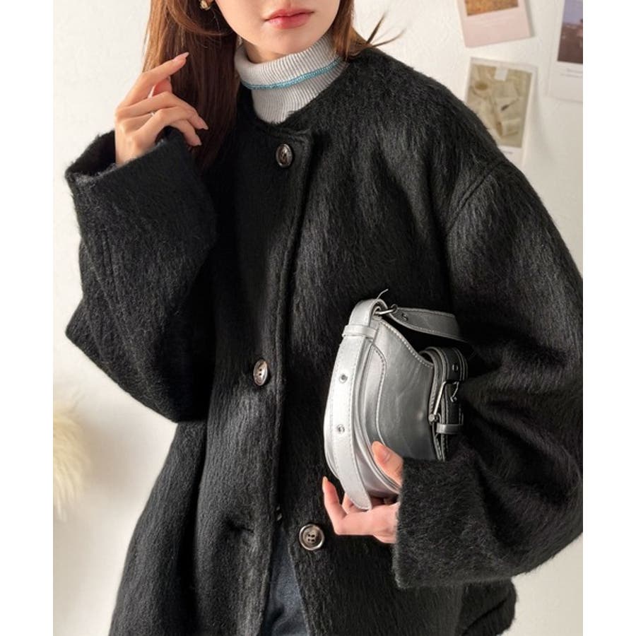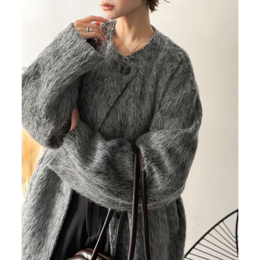 ふんわりとした印象と毛足の流れが美しい、ミックスシャギー素材のノーカラーコート。
