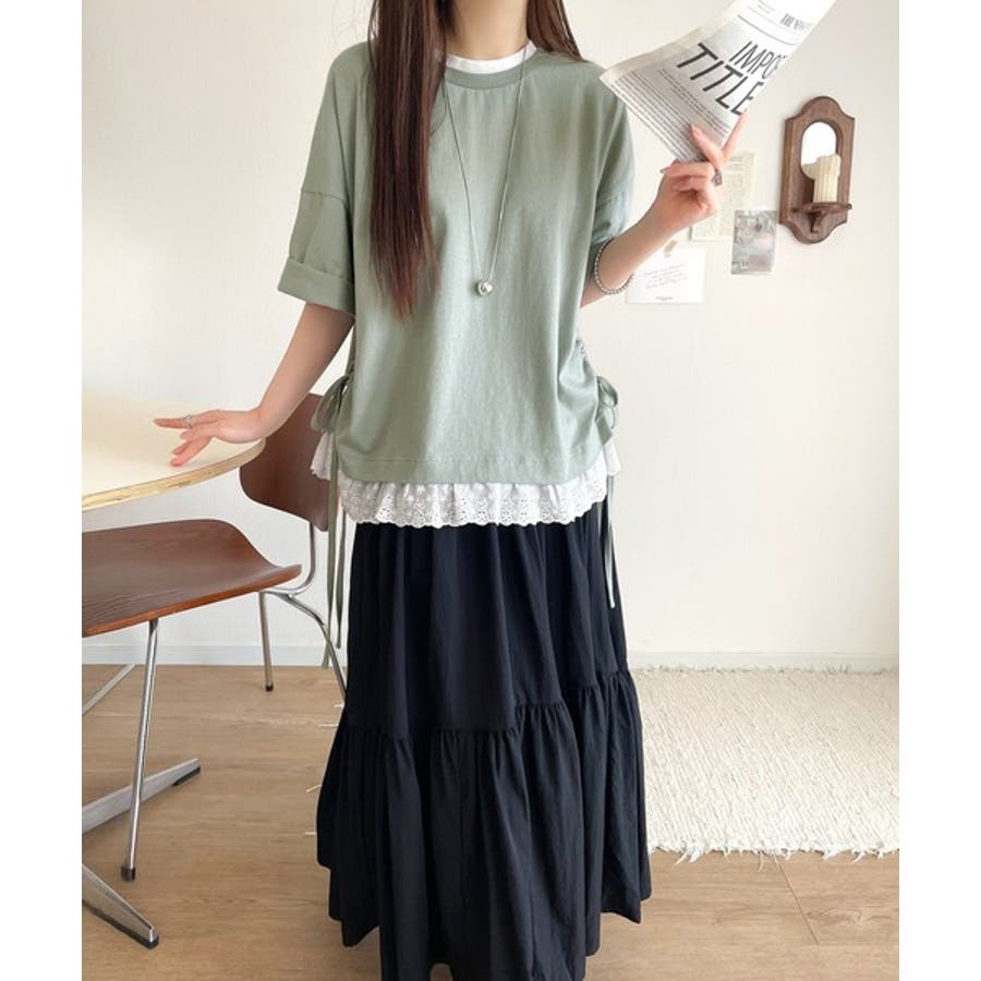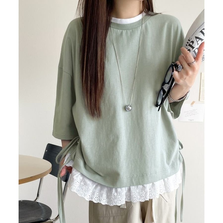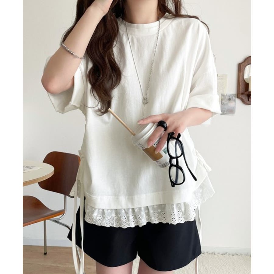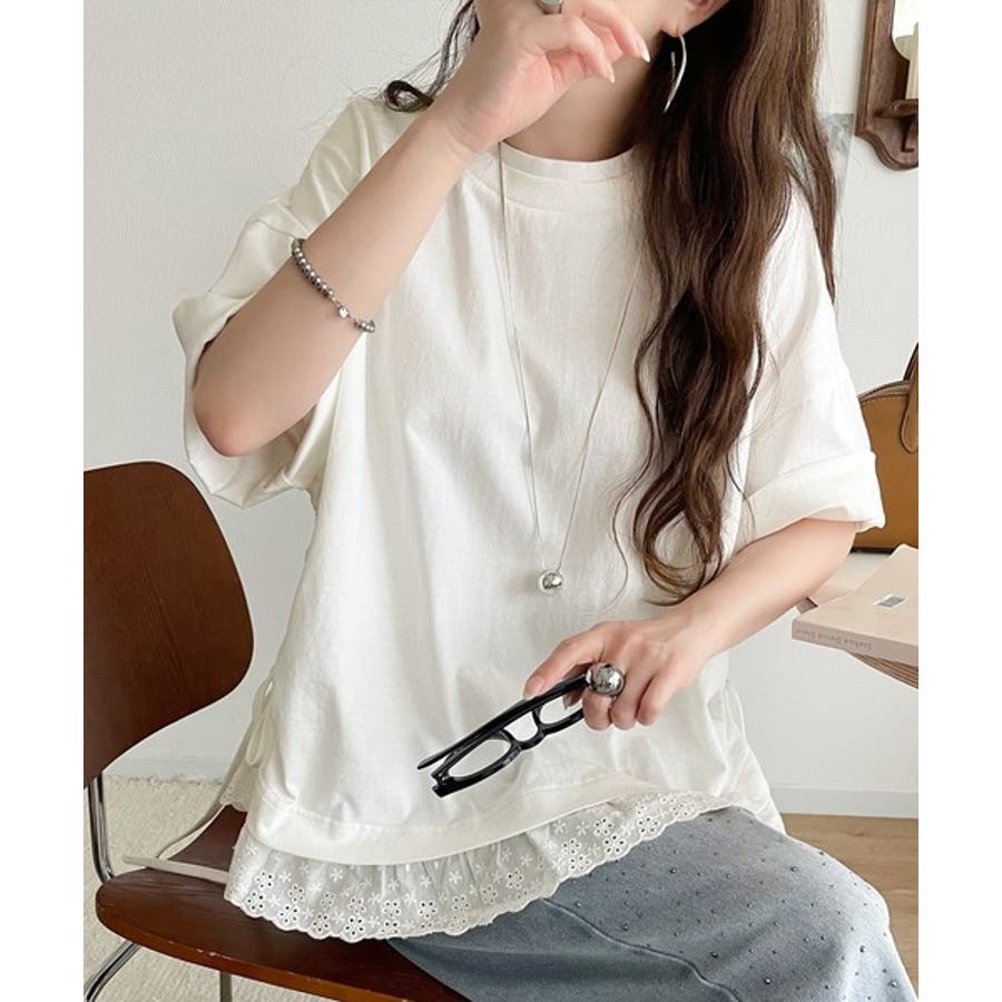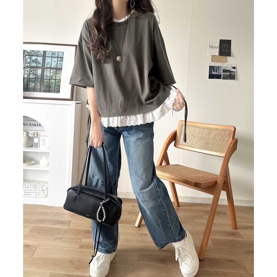 投稿日:2025.08.13カジュアルなレイヤード風Tシャツと裾のコットンレースの組み合わせが可愛いです。