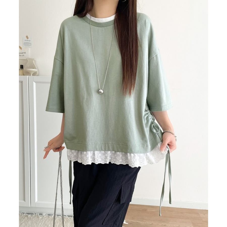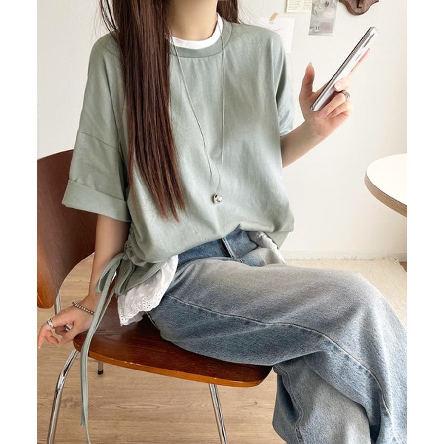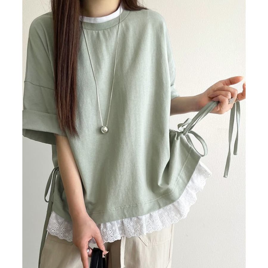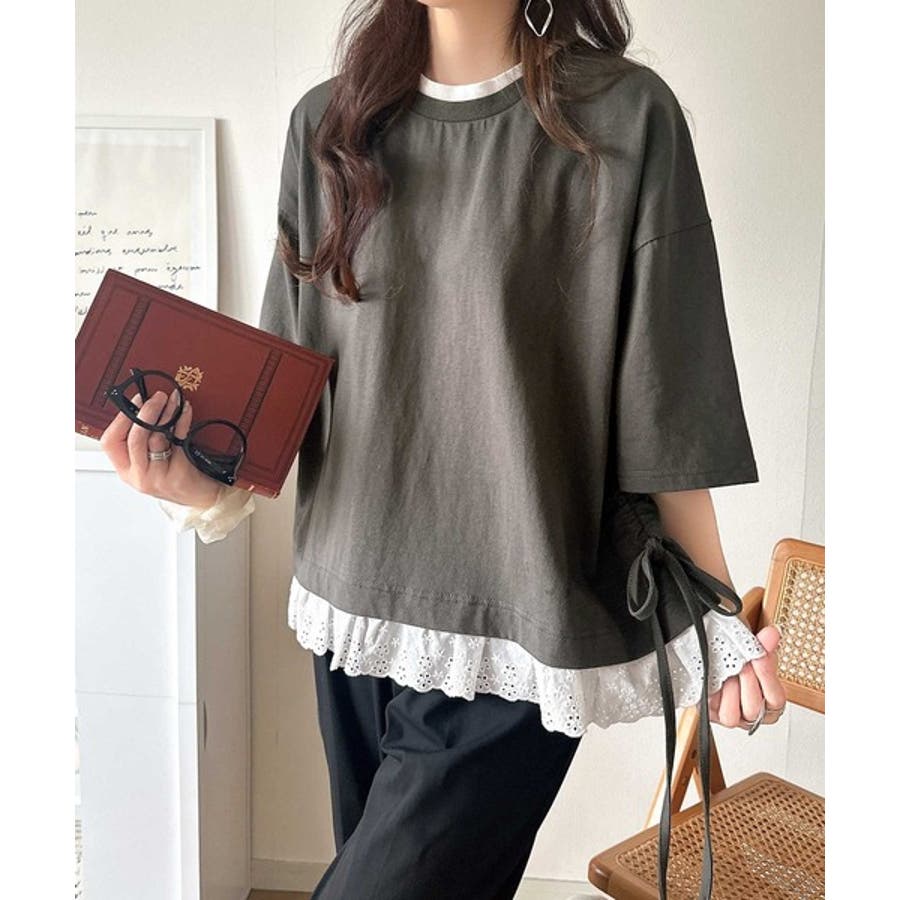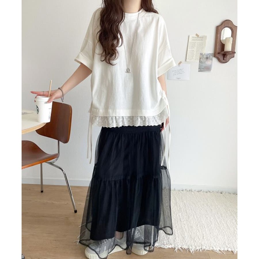 投稿日:2025.08.13カジュアルなレイヤード風Tシャツと裾のコットンレースの組み合わせが可愛いです。