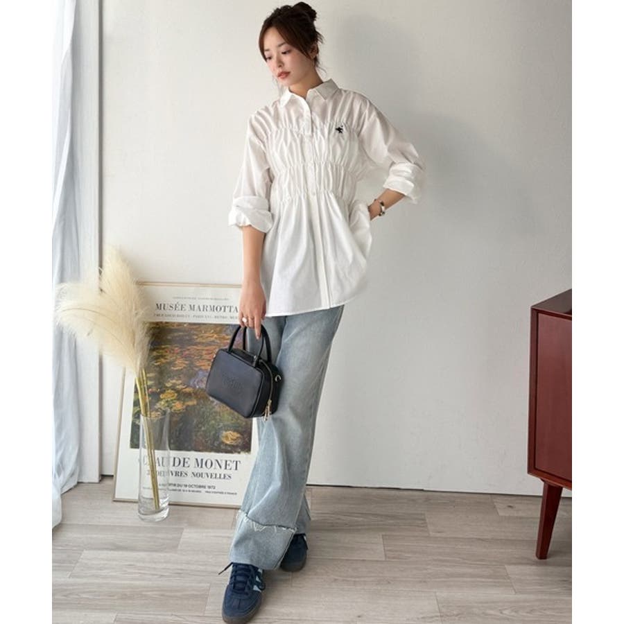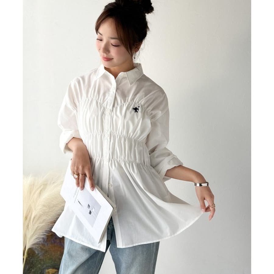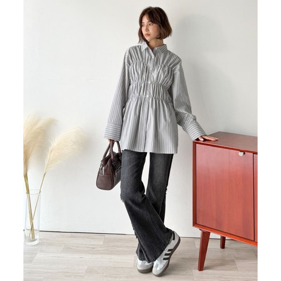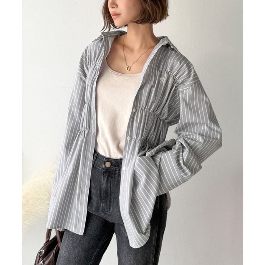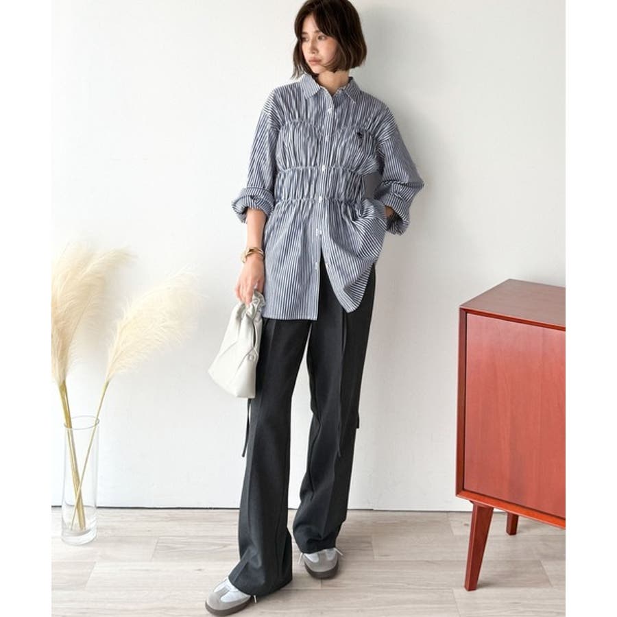 カジュアルかつ抜け感のあるシャーリングシャツ。