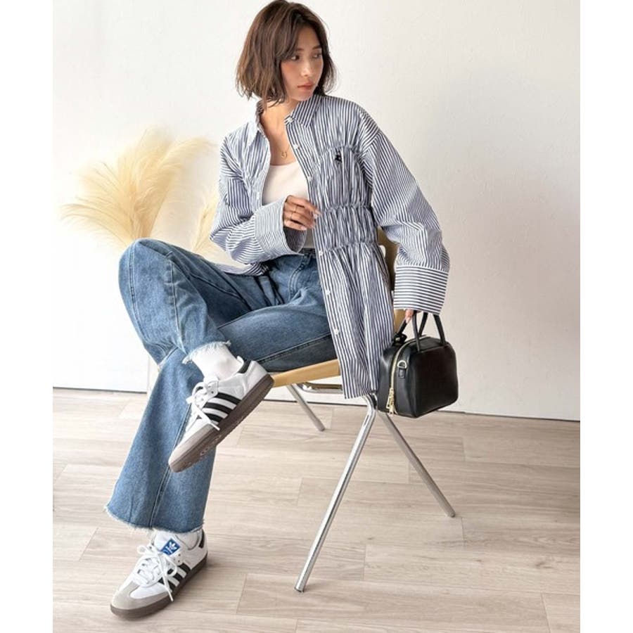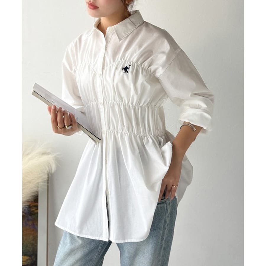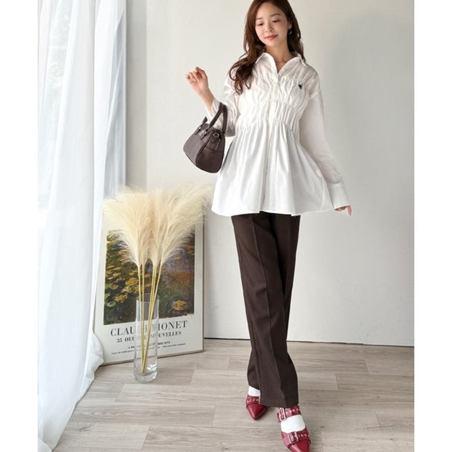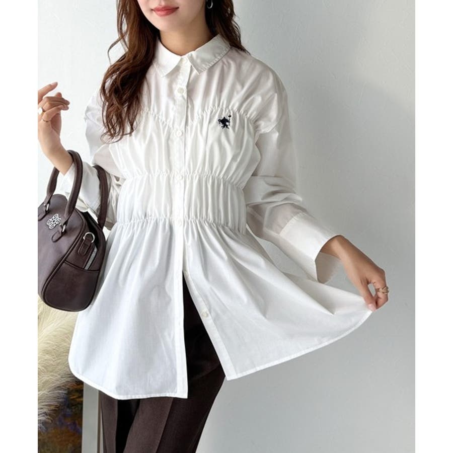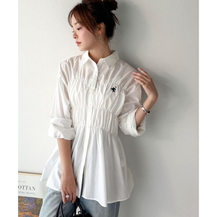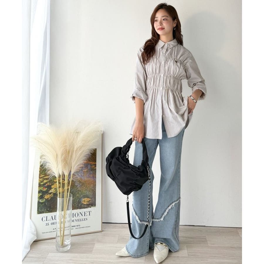 カジュアルかつ抜け感のあるシャーリングシャツ。