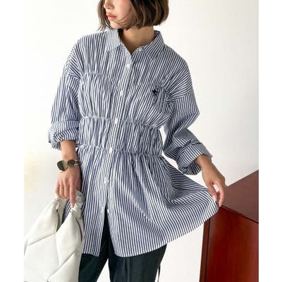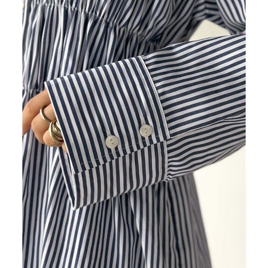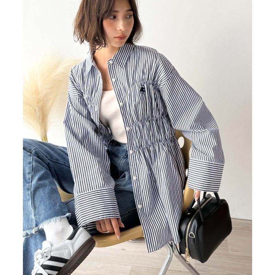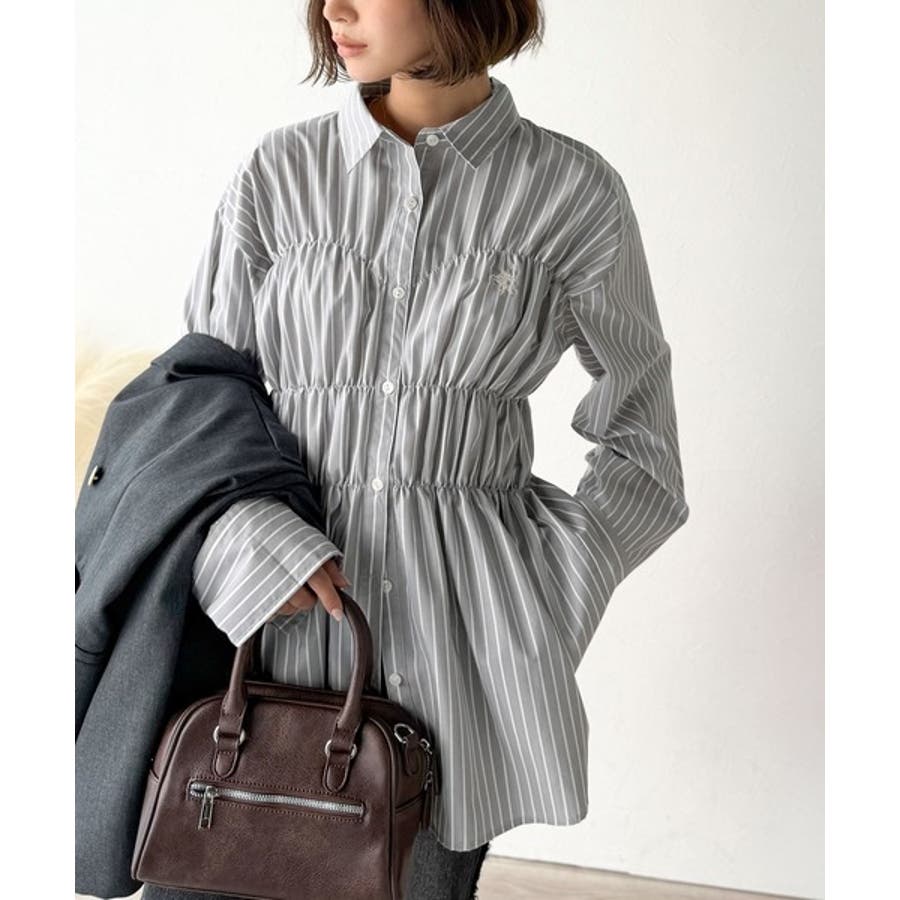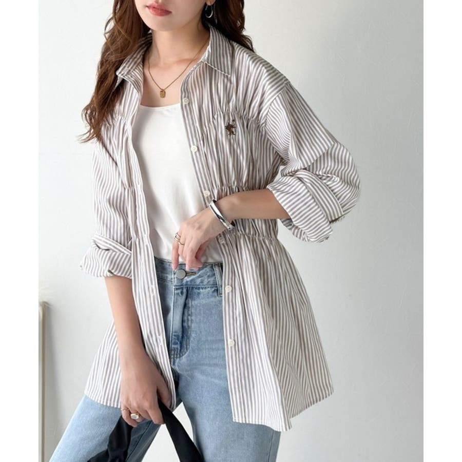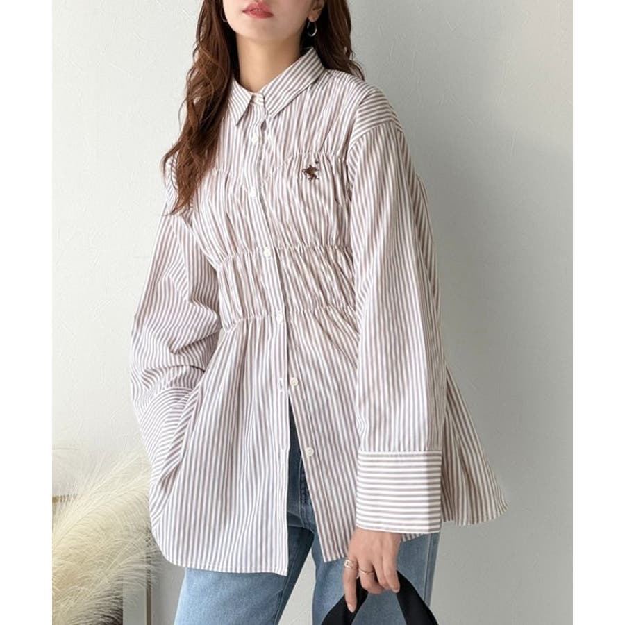 大人のシルエット美人を叶える、ビスチェ風シャーリング長袖シャツ(ストライプ 無地…