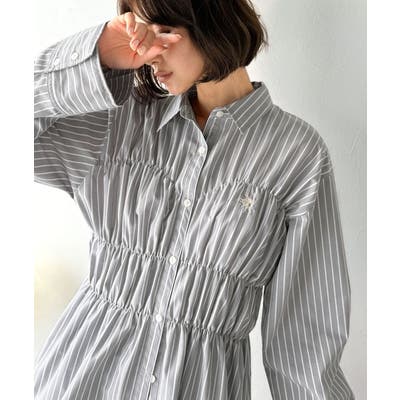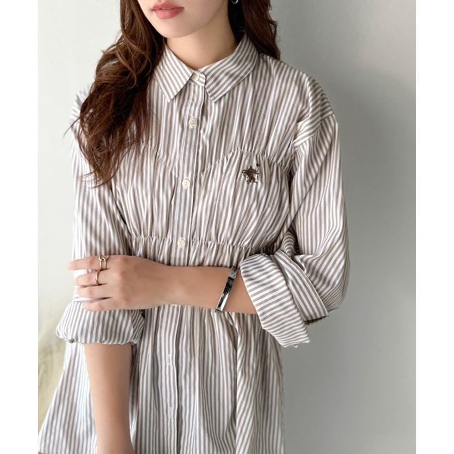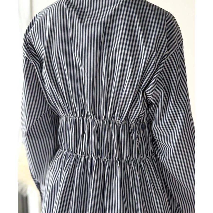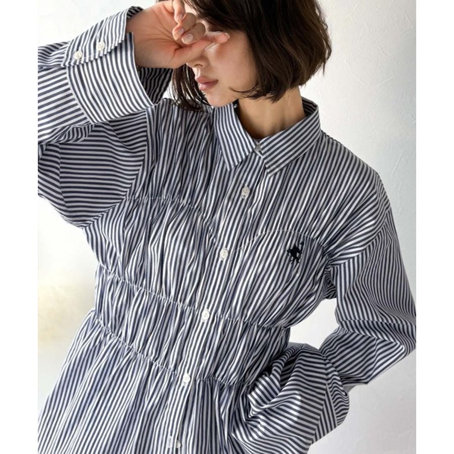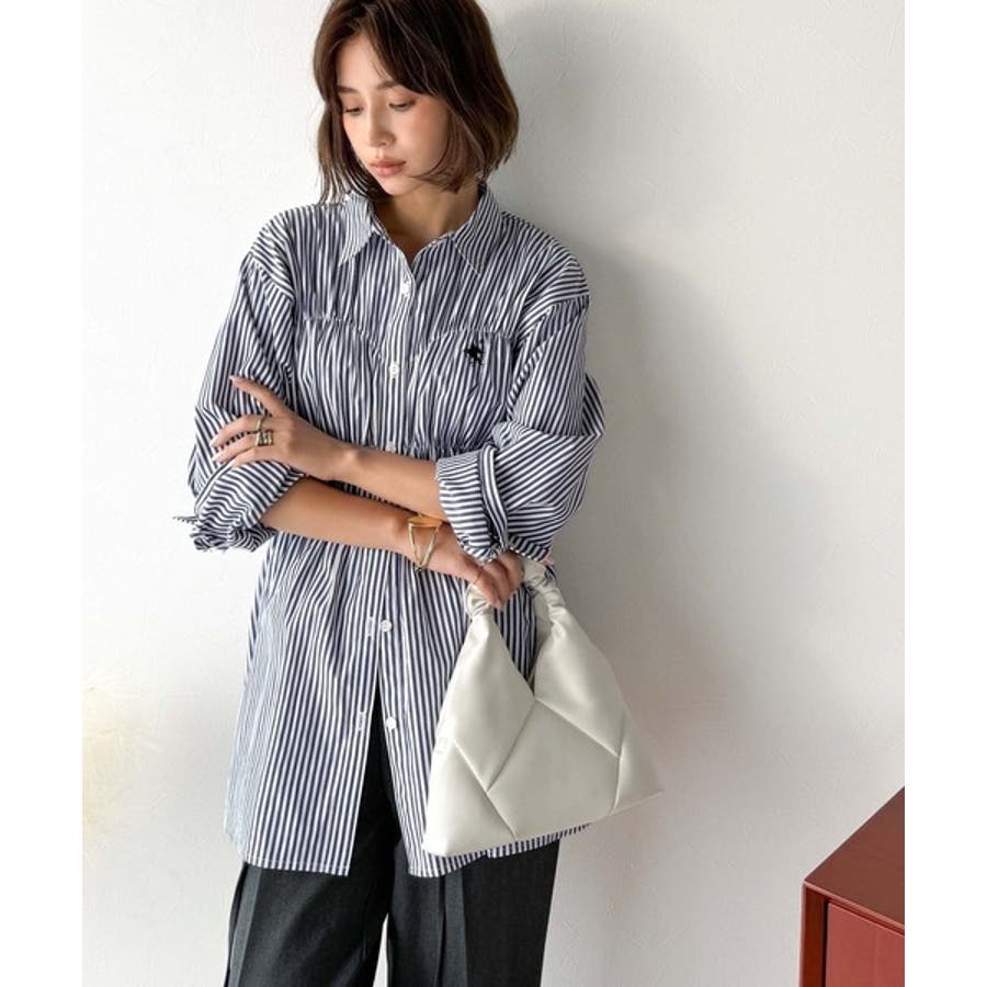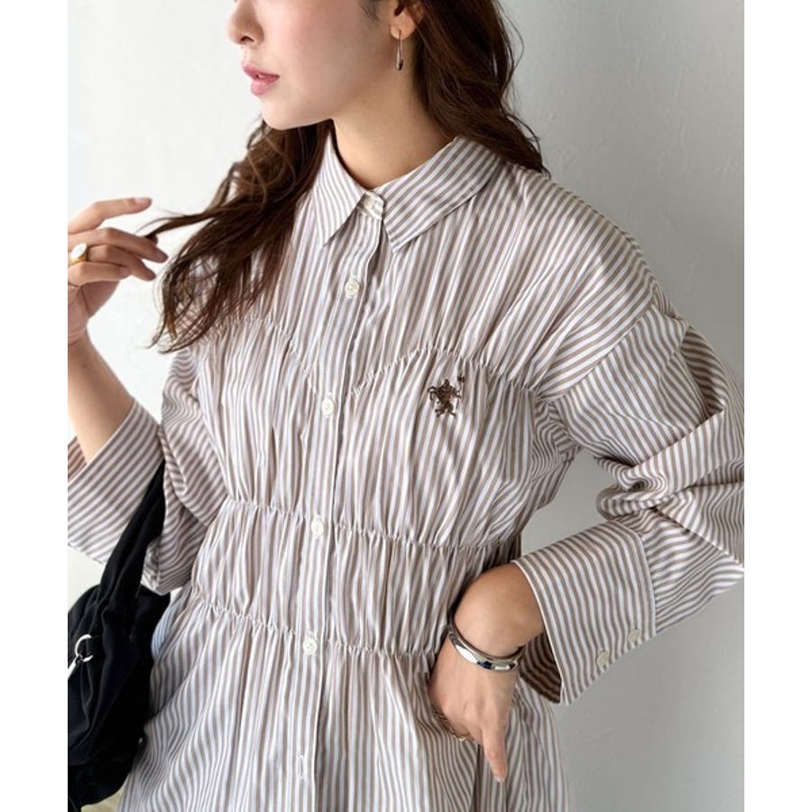 大人のシルエット美人を叶える、ビスチェ風シャーリング長袖シャツ(ストライプ 無地…
