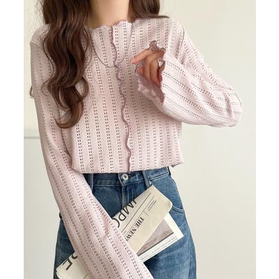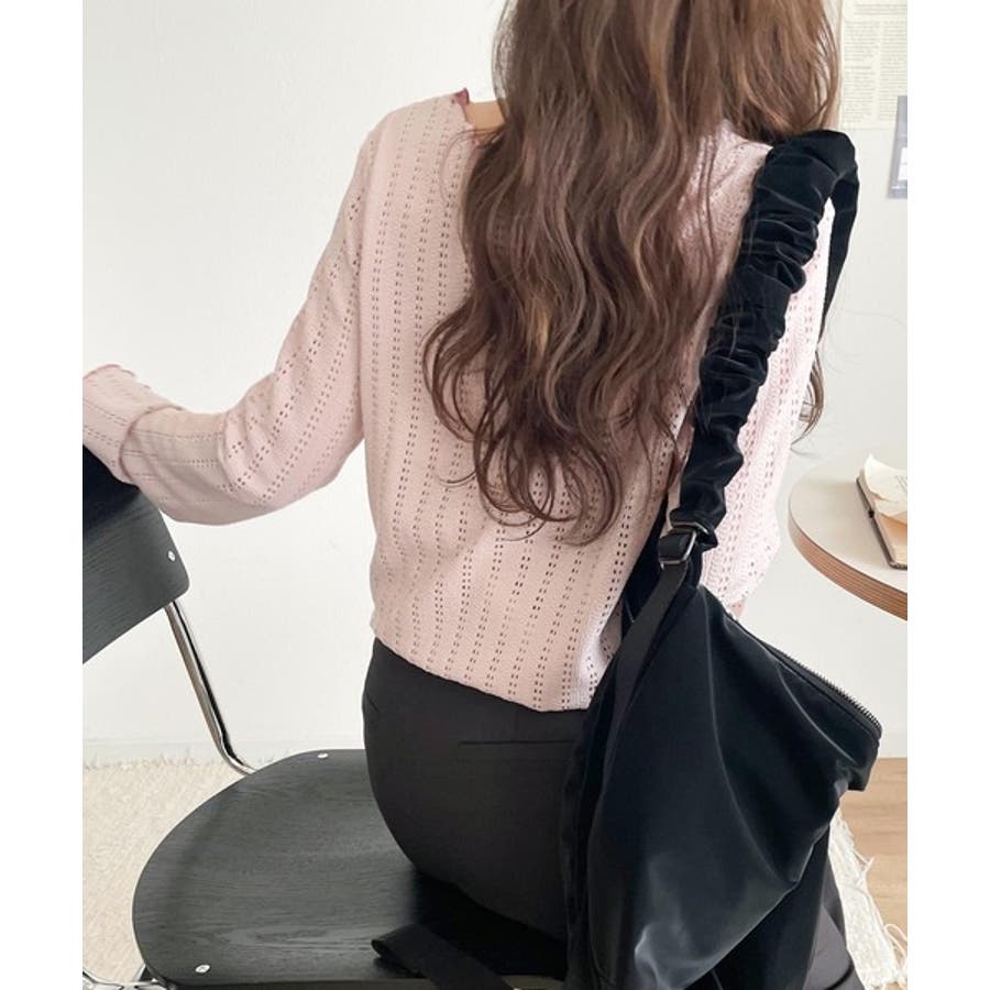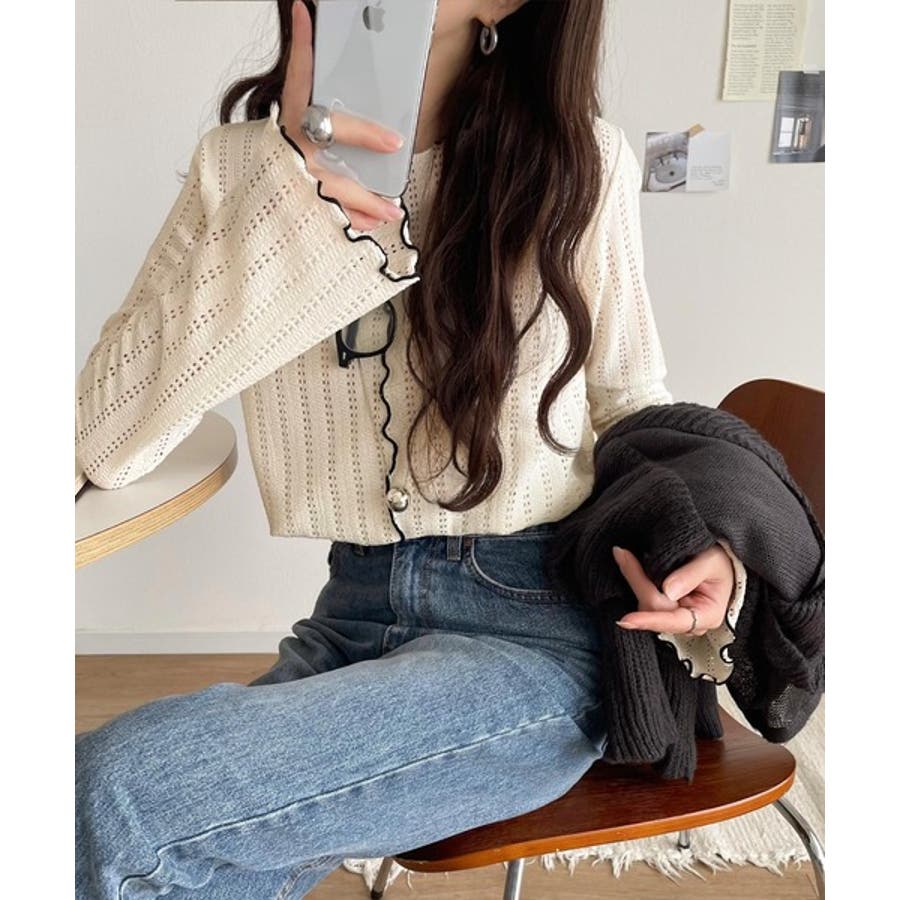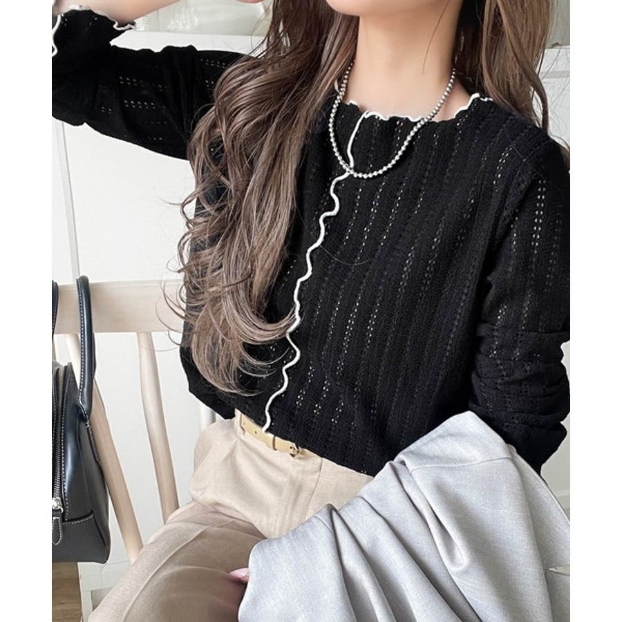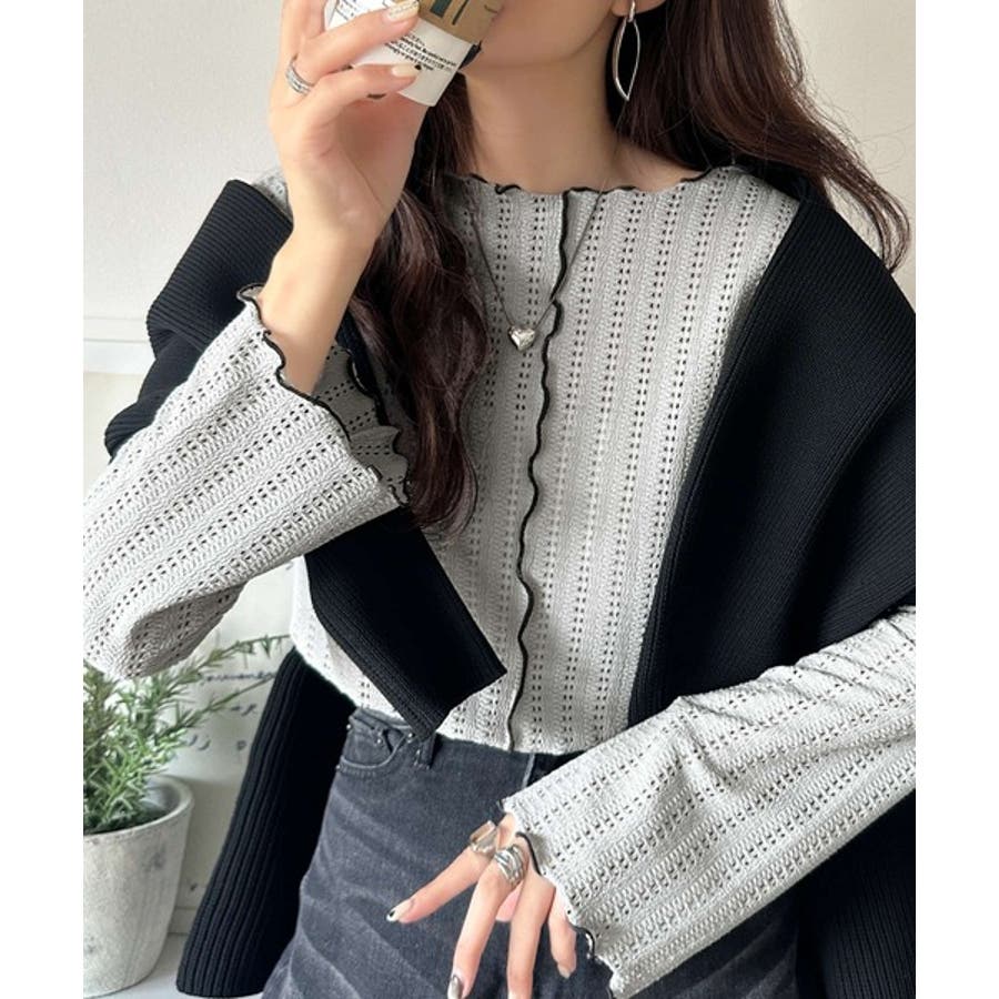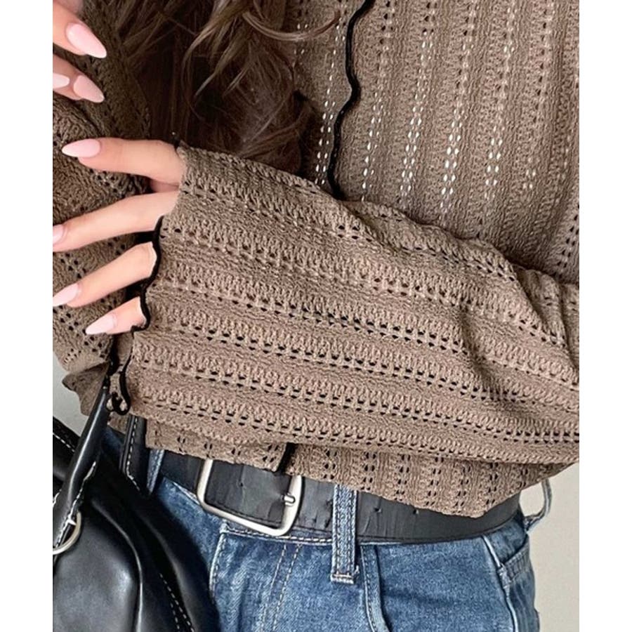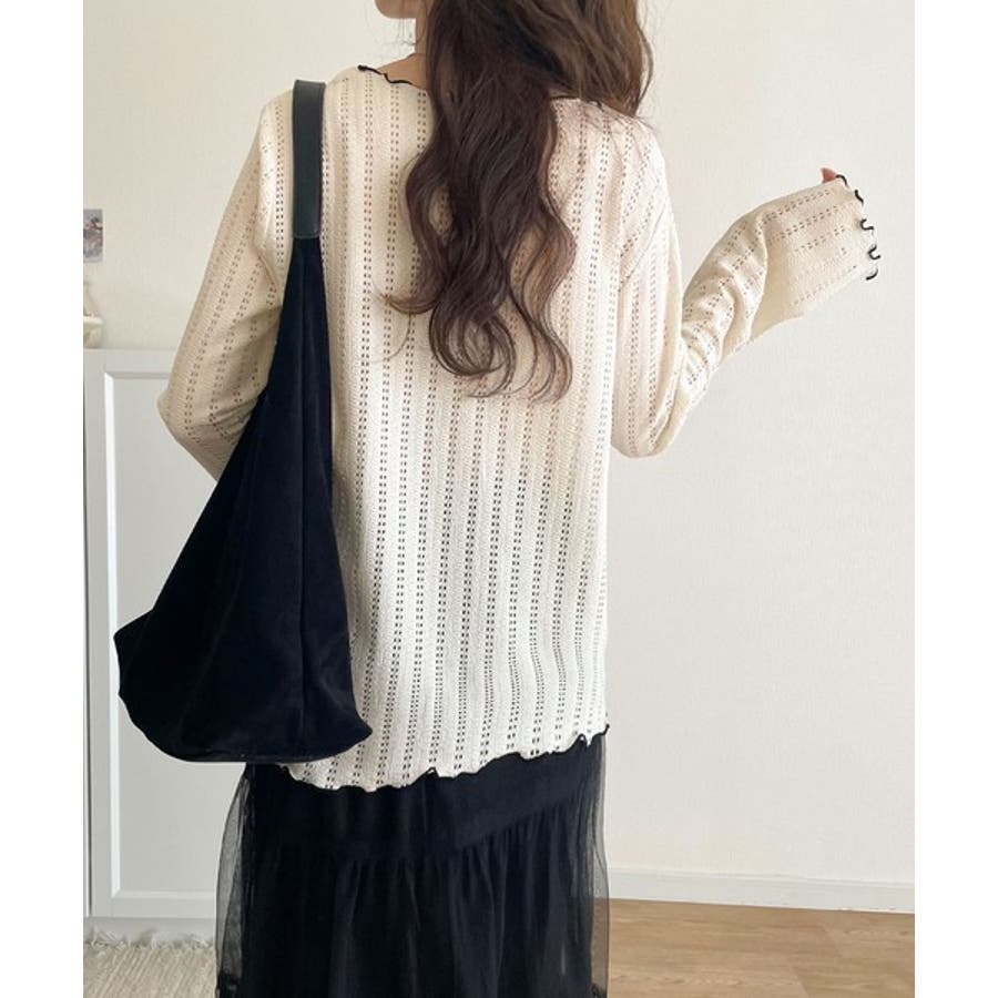 ほどよい透け感と縦ラインの透かし編みで華奢見えが叶う贅沢な1枚♪