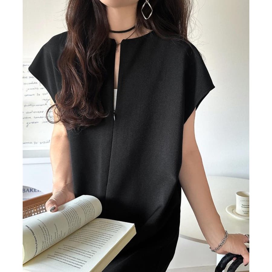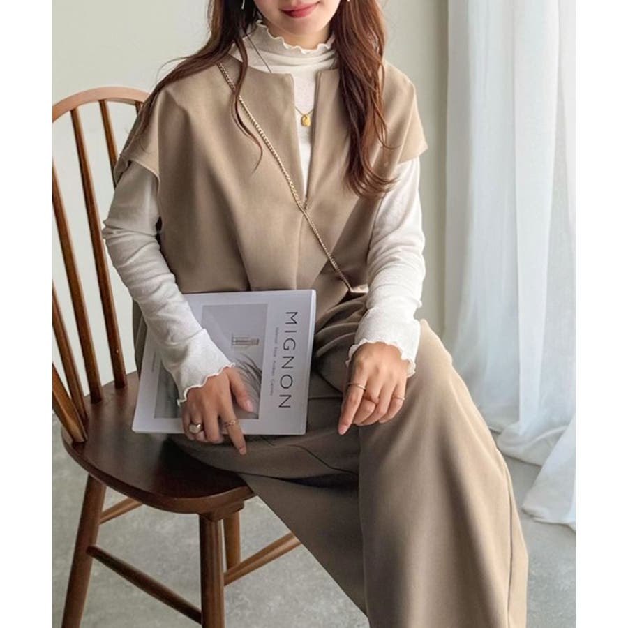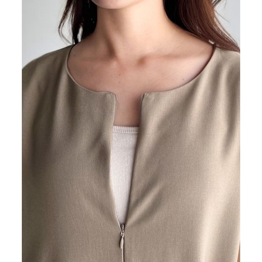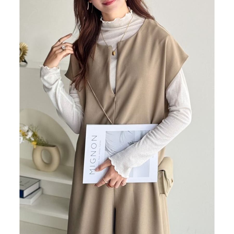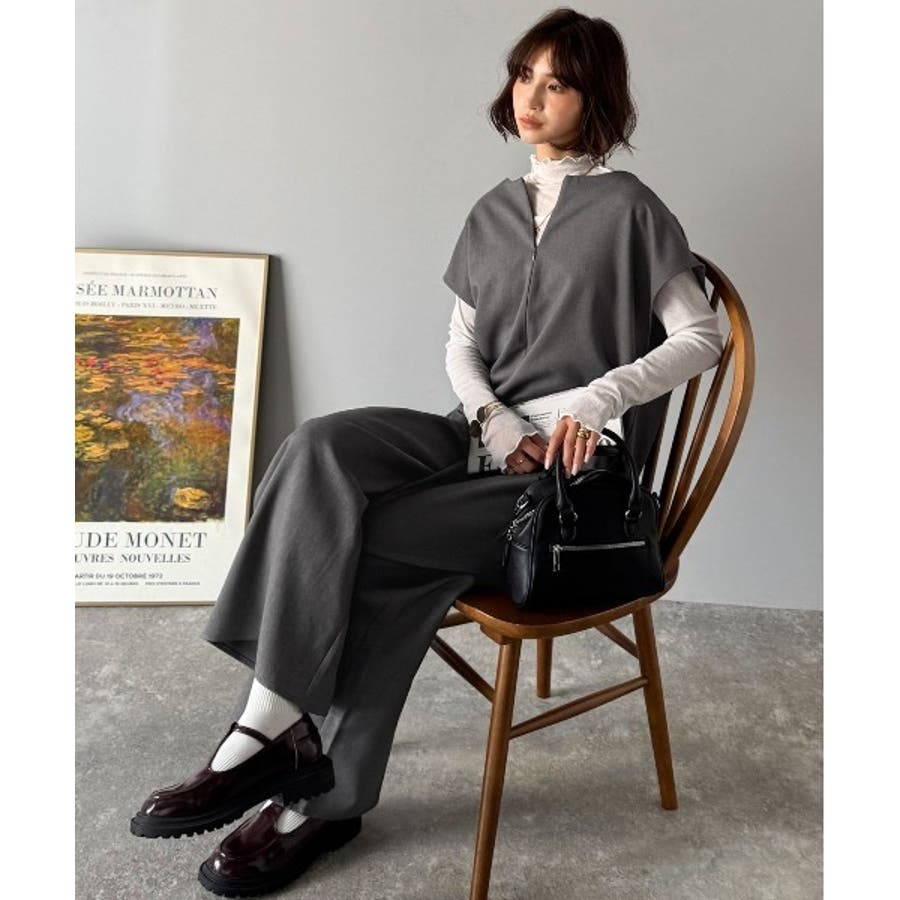 シンプルだけど、襟元に大人の抜け感。ハーフジップオールインワン
