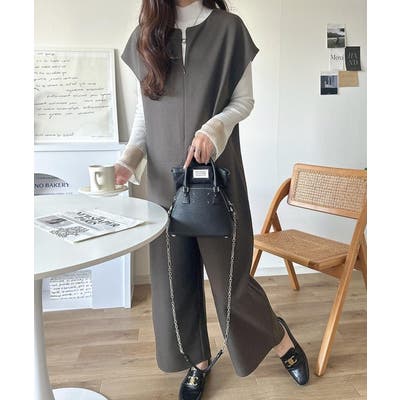 シンプルながら大人の抜け感を演出できるハーフジップオールインワン。