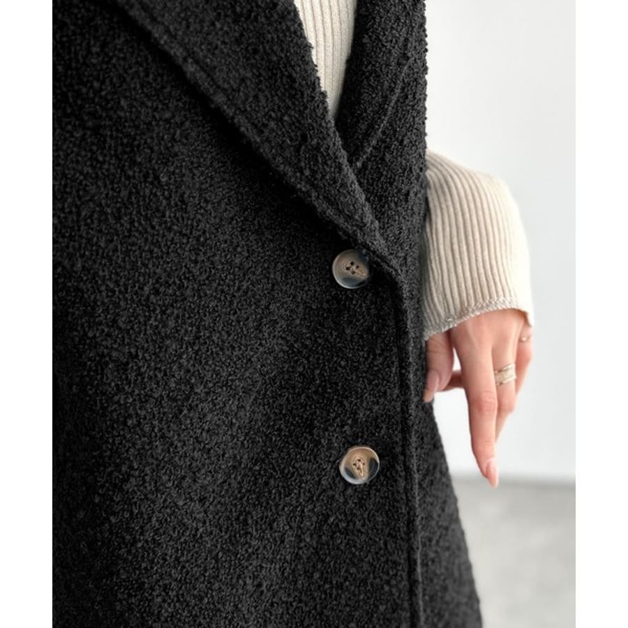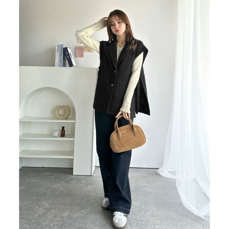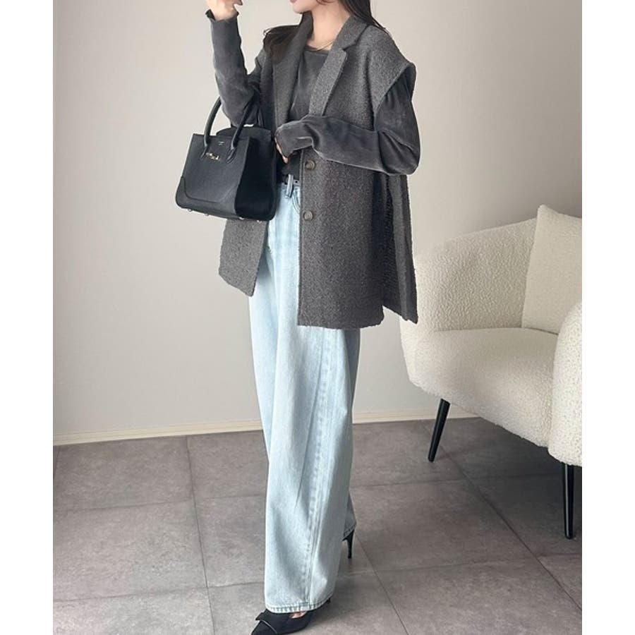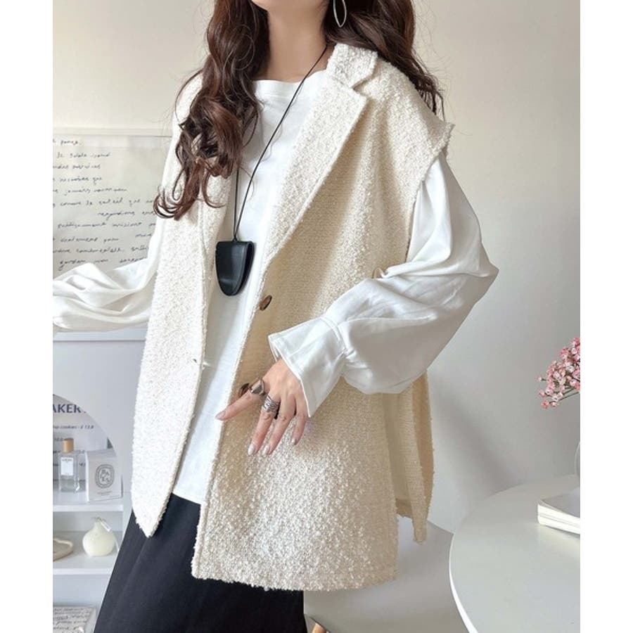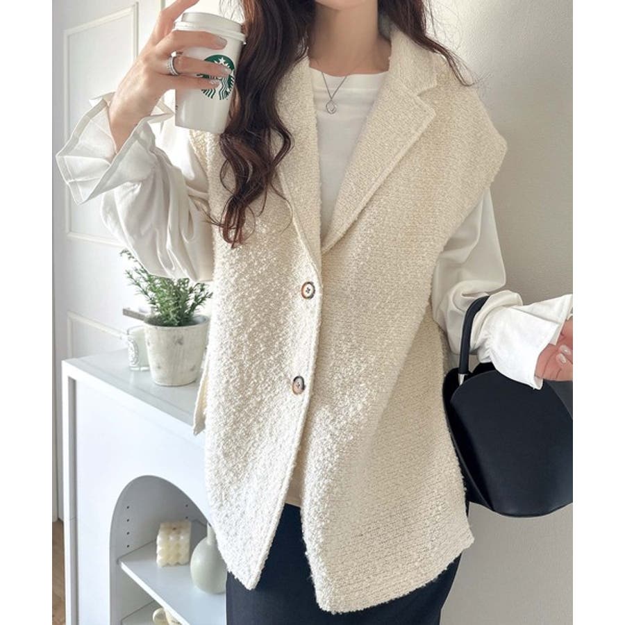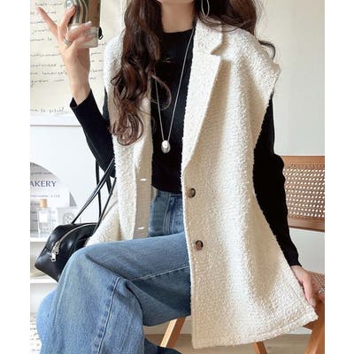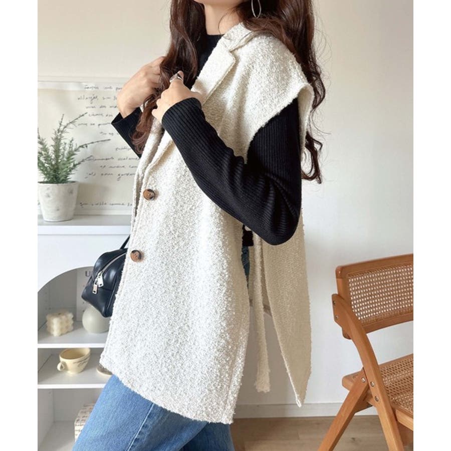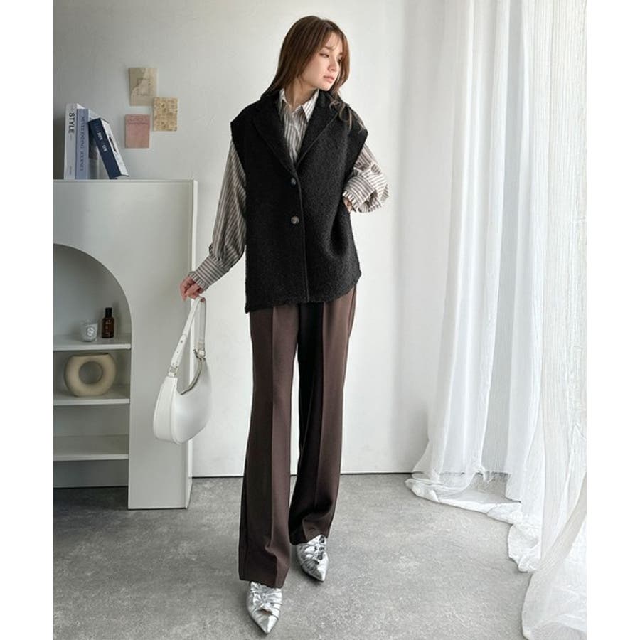 シンプルで洗練された大人の雰囲気を演出。サイドベルトブークレシングルジレベスト