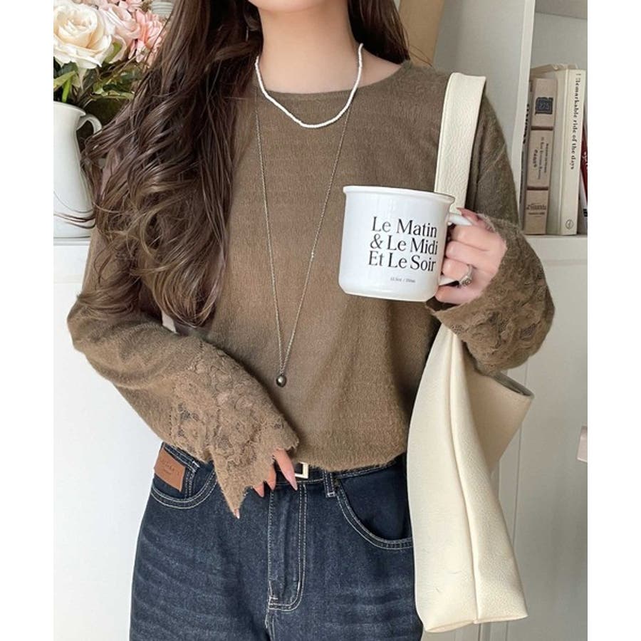 袖口に繊細な花柄レースをあしらい、手元からフェミニンな印象を演出。