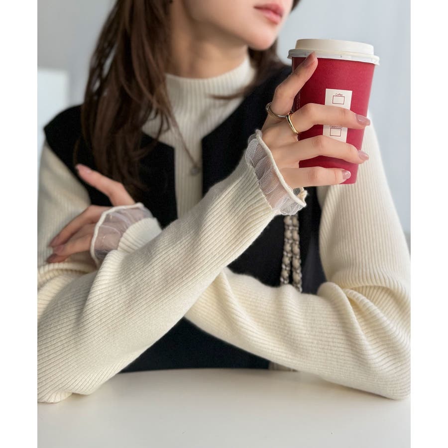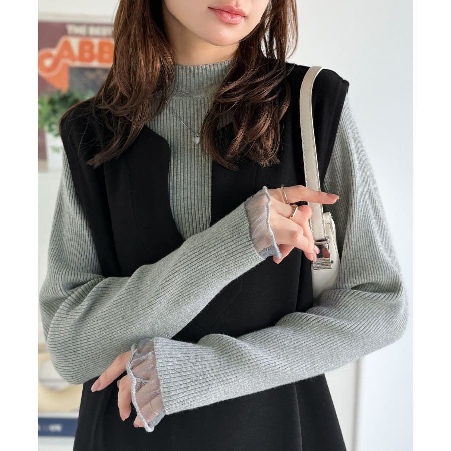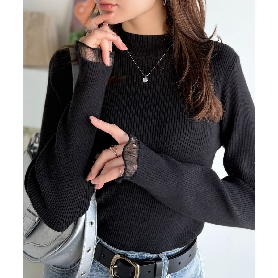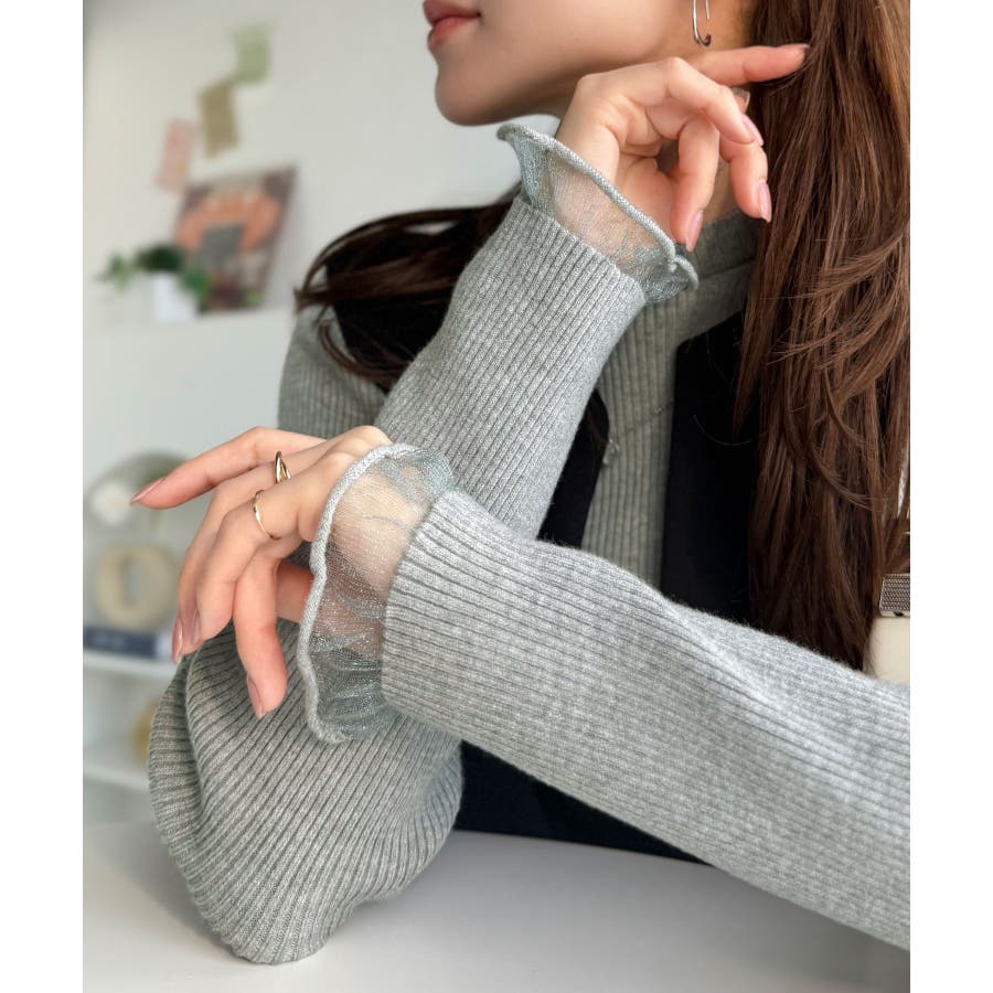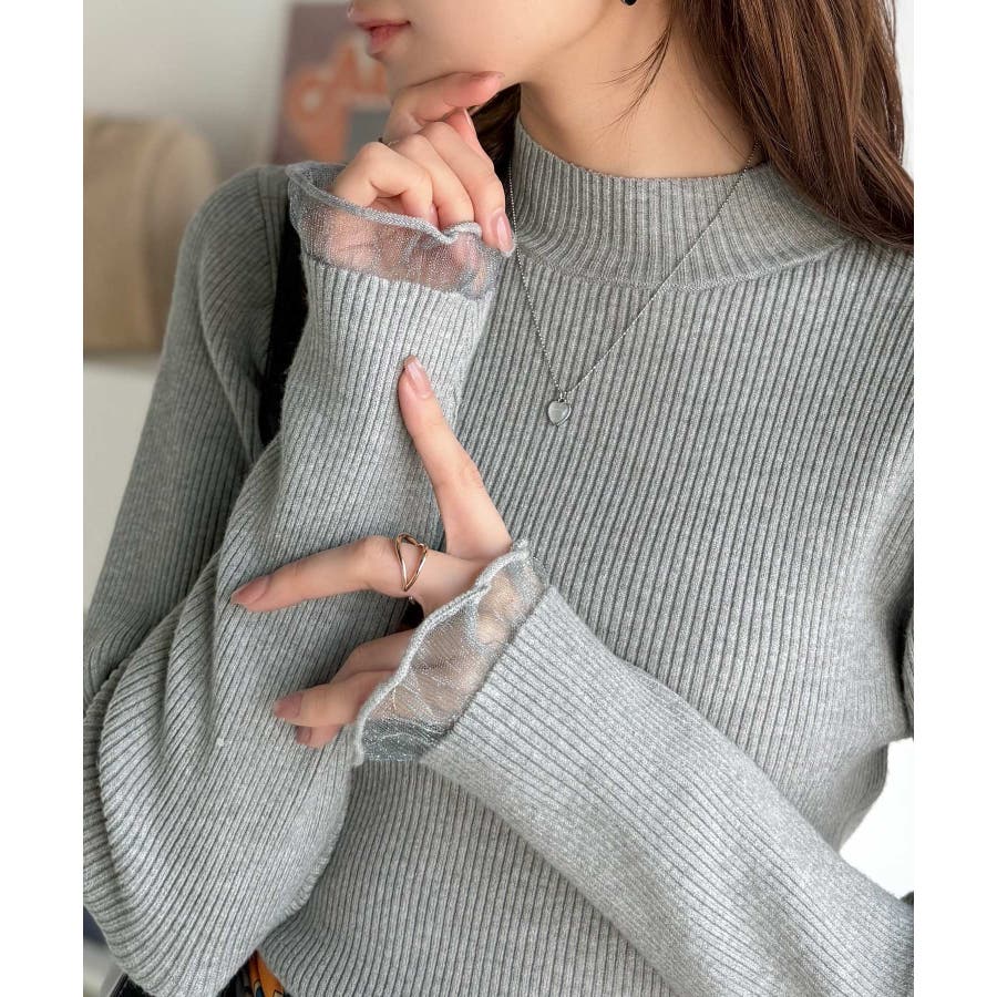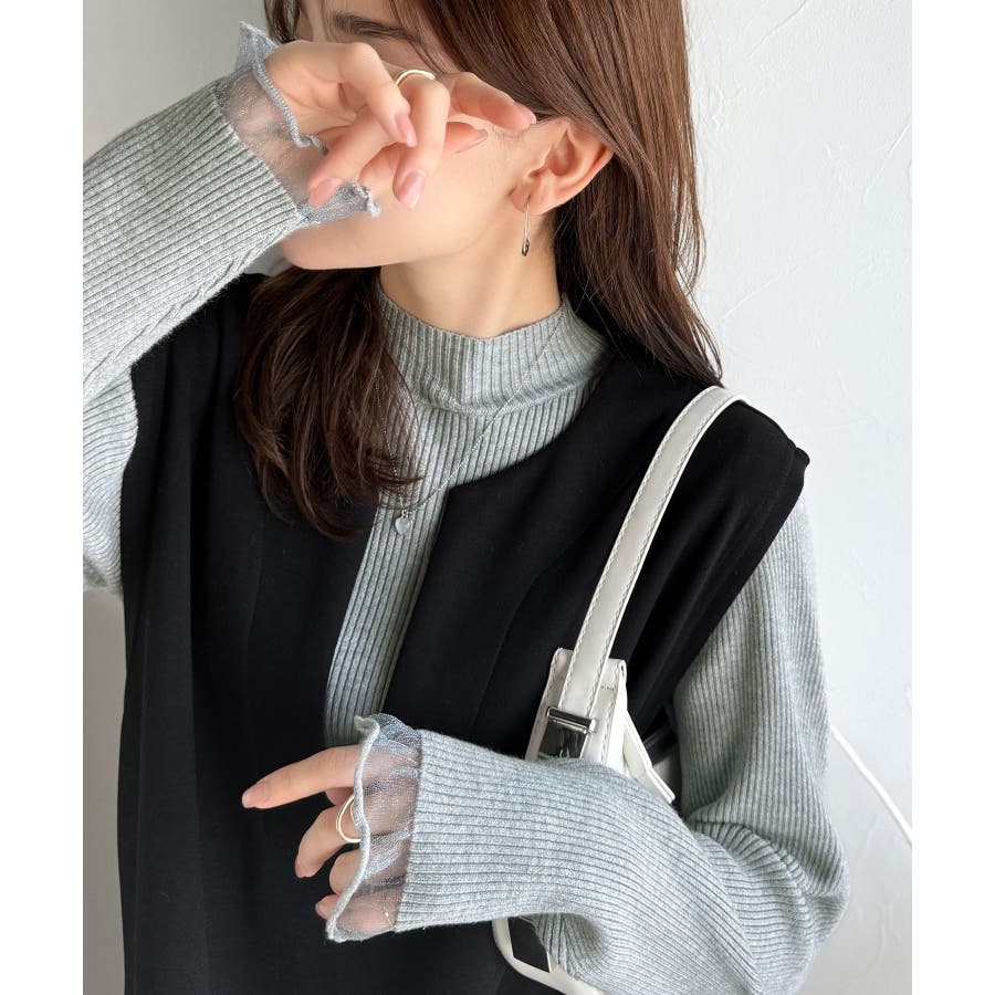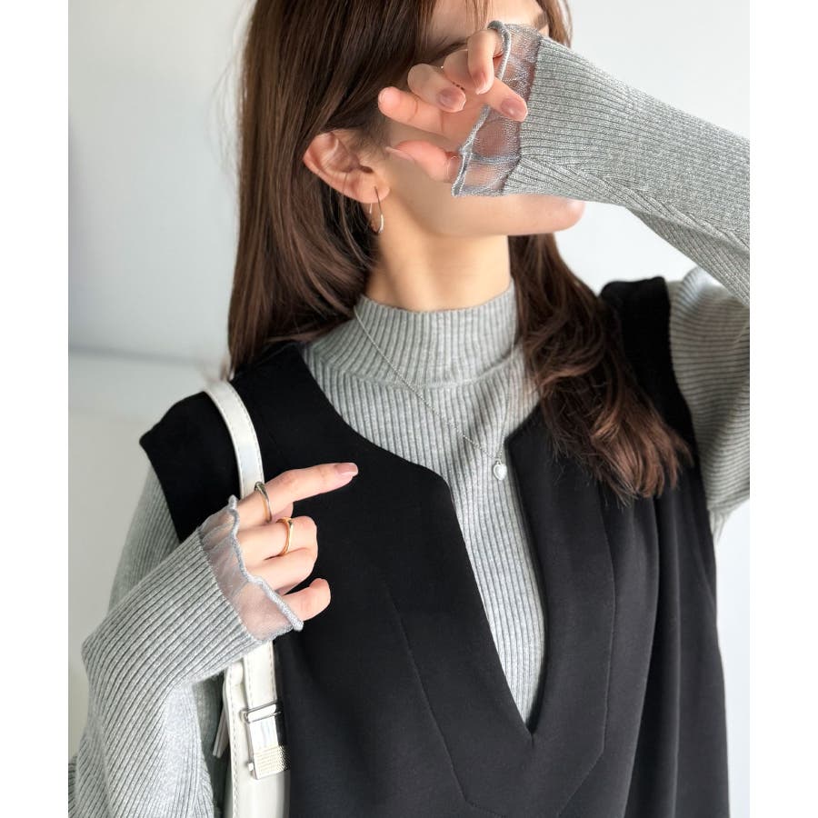 袖口をシアー素材で切り替え、動くたびに揺れるフレアシルエットがフェミニンなアクセントに。