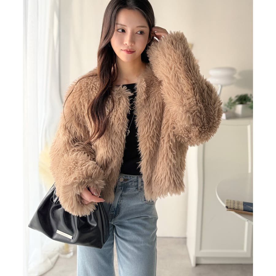 新しい魅力を引き出す、上品なノーカラーショートファーコート。