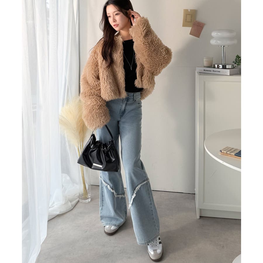贅沢に使用された毛足長めのフェイクファーは、軽やかでありながら暖かさを保ちます。