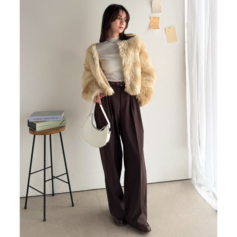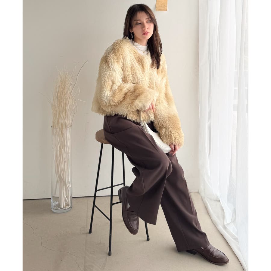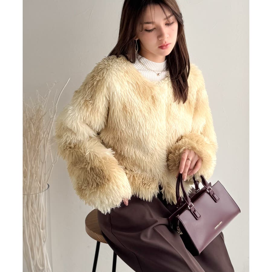 華やかなフェイクファーを使用し、上品でありながらもカジュアルにも着こなせるアイテムです。