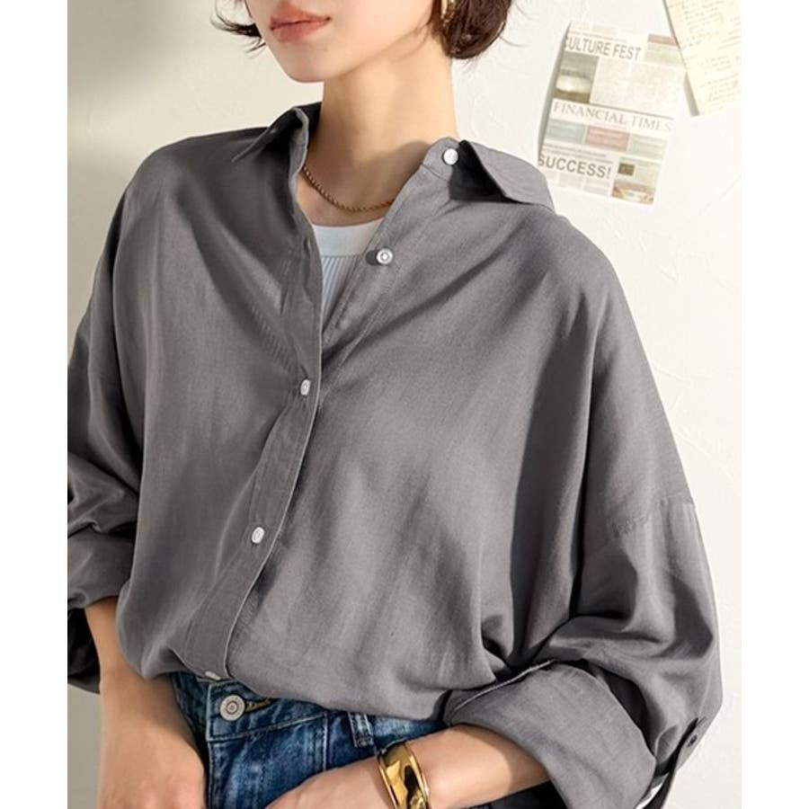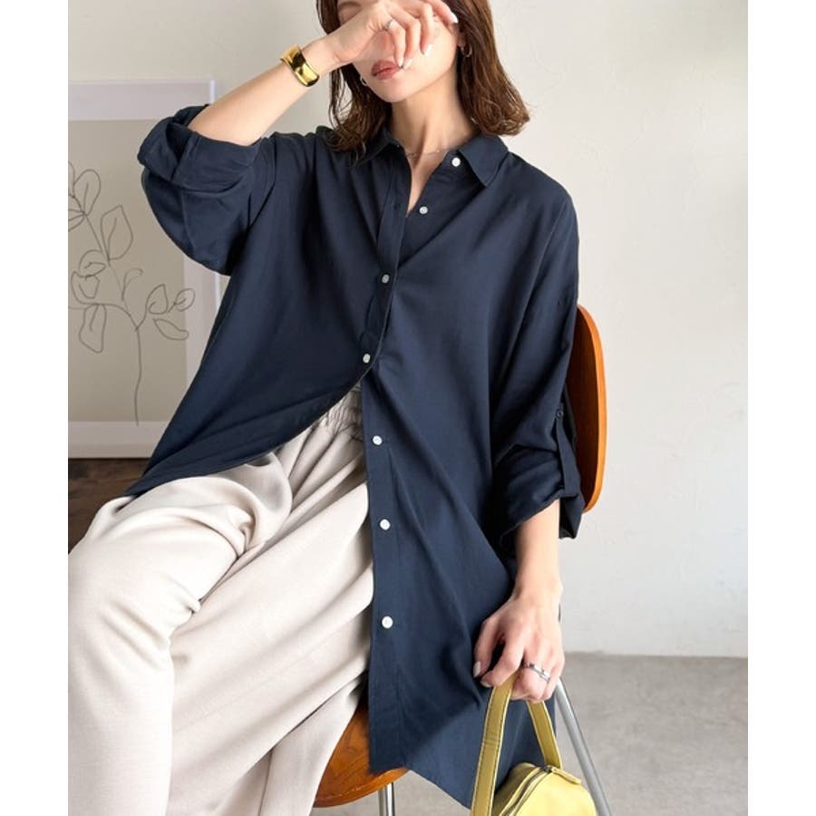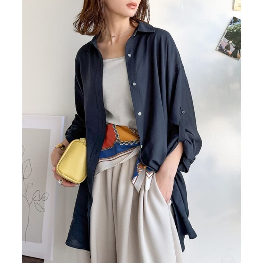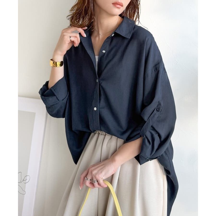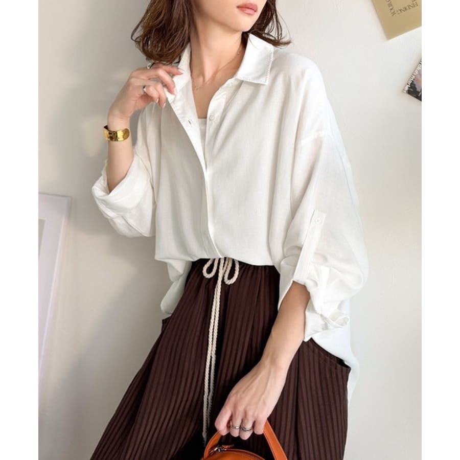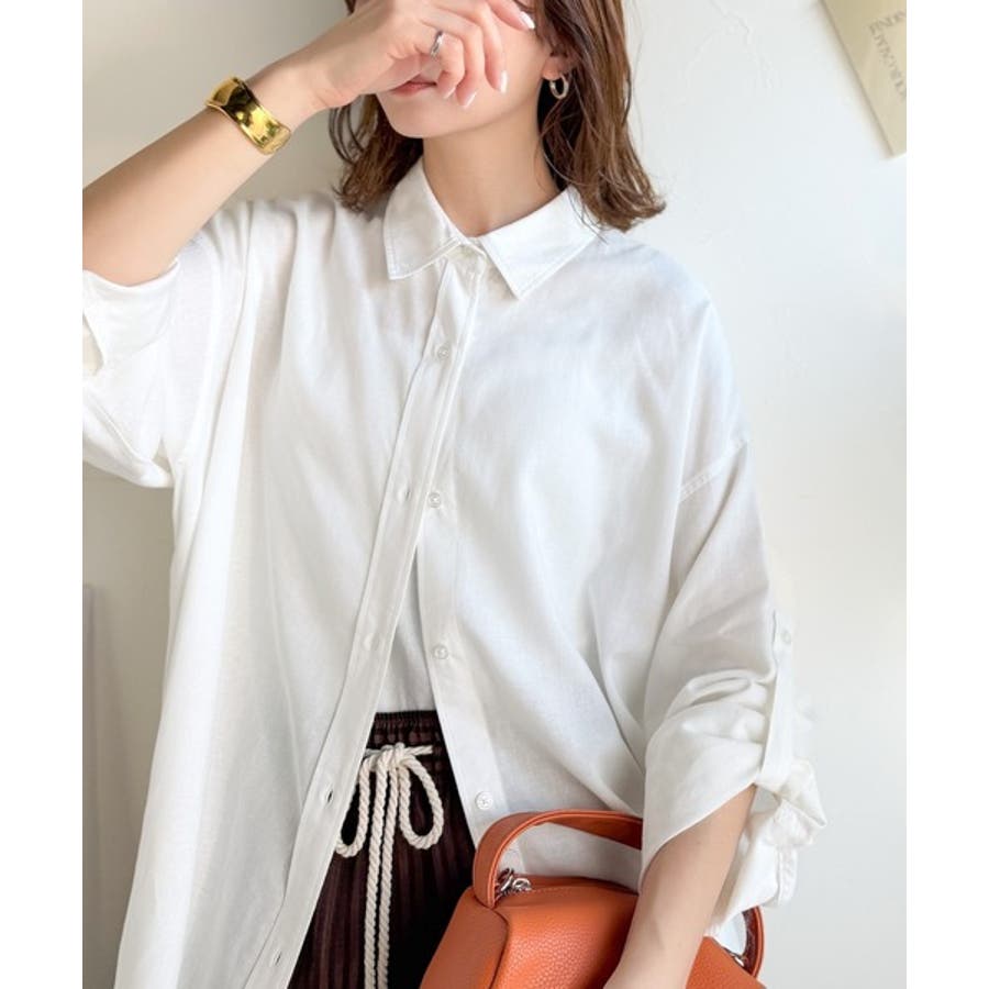 【機能性素材】軽やかにデイリーに使える。レーヨン麻混オーバーサイズロールアップシ…