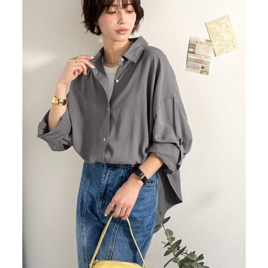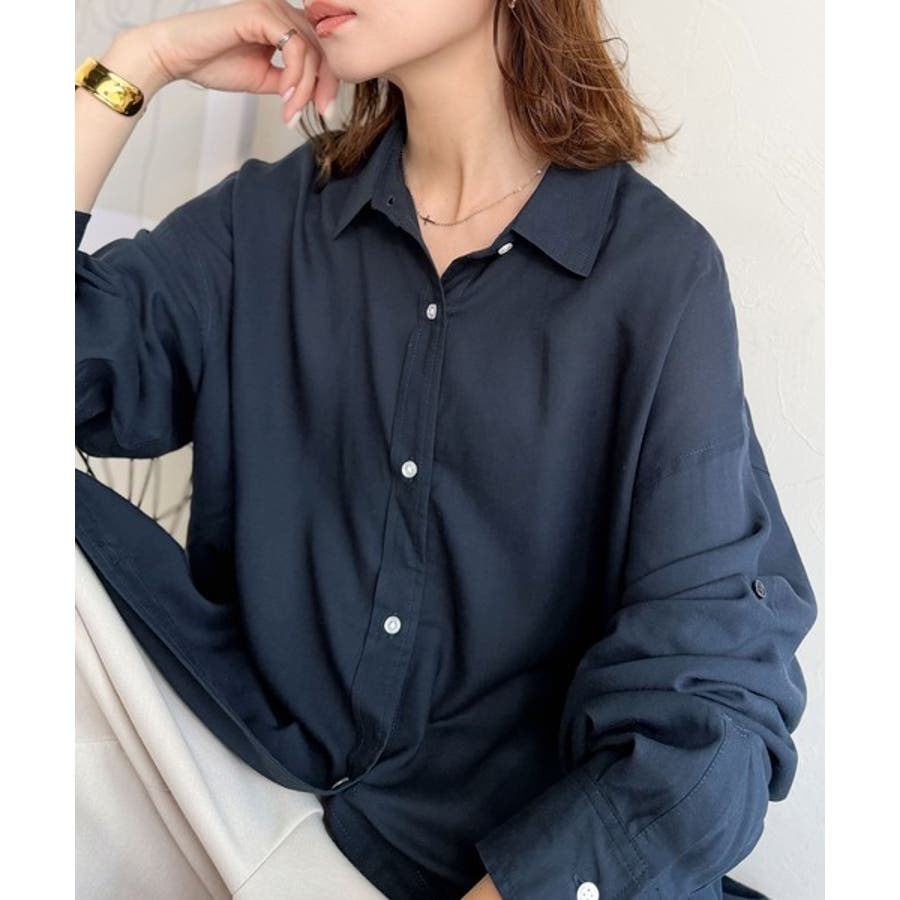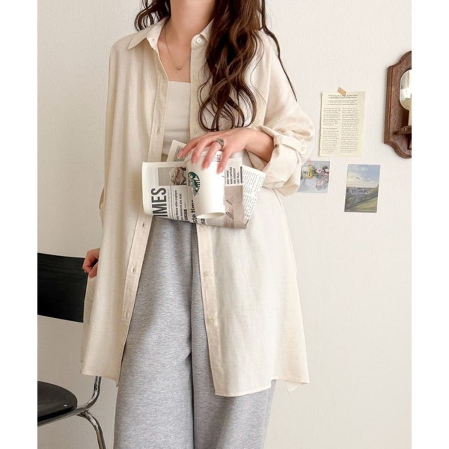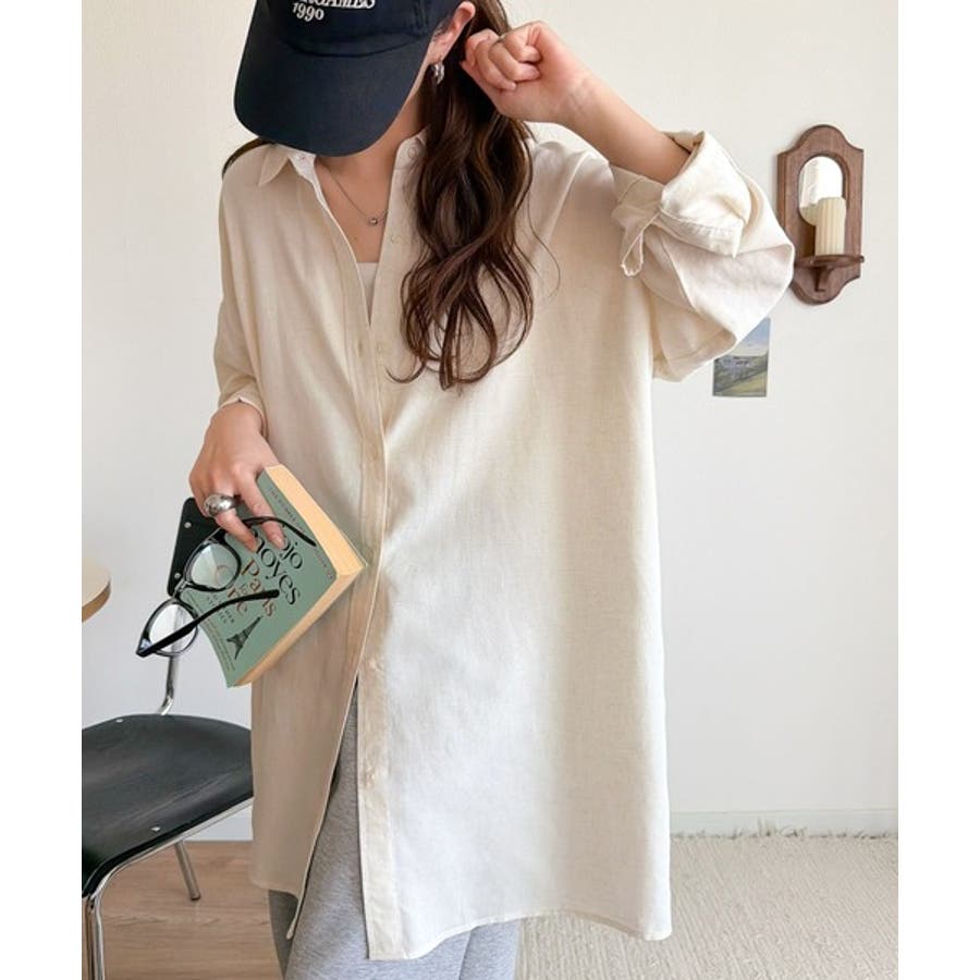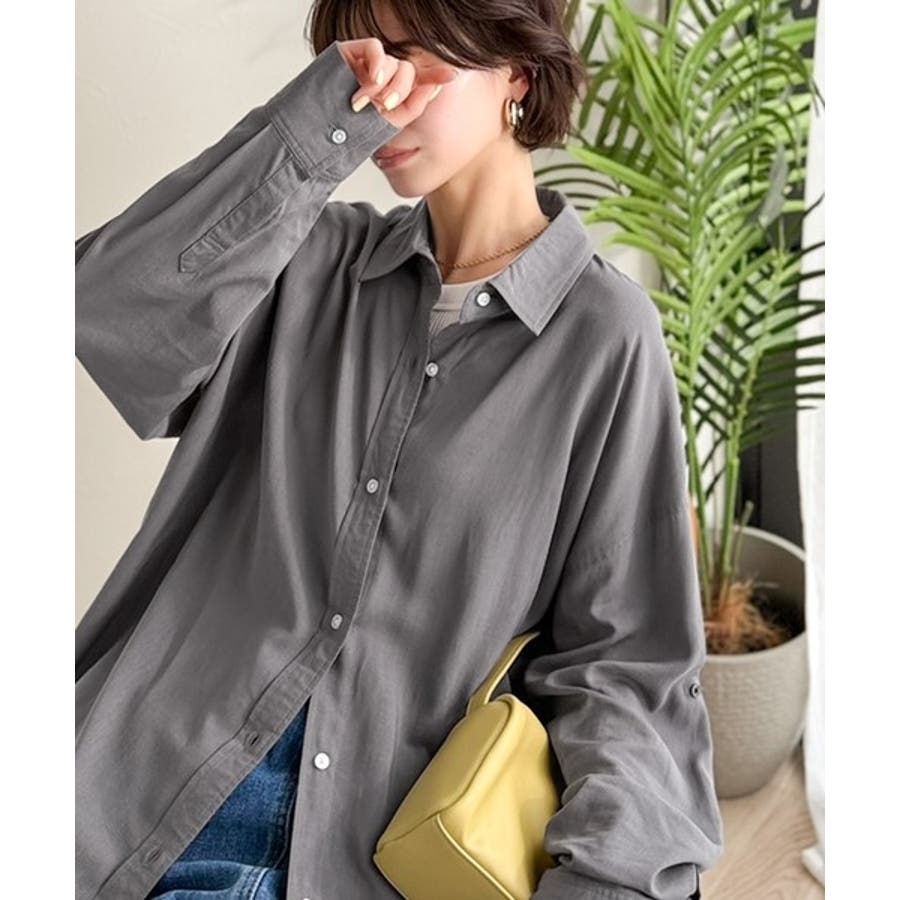 【機能性素材】軽やかにデイリーに使える。レーヨン麻混オーバーサイズロールアップシ…