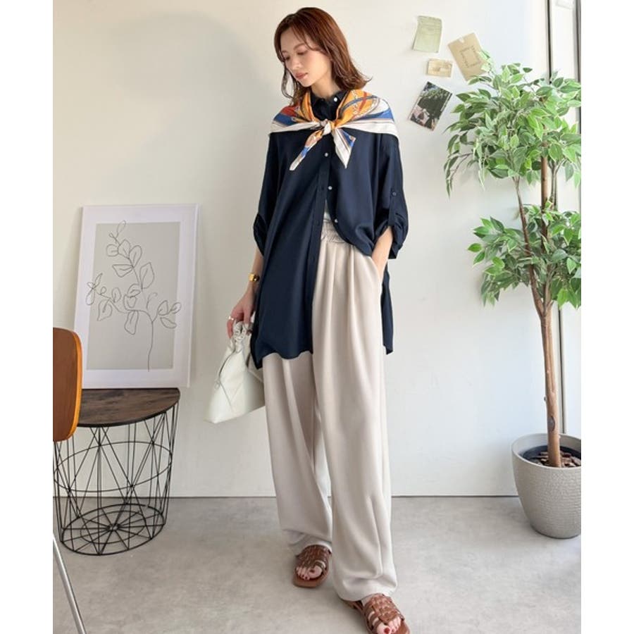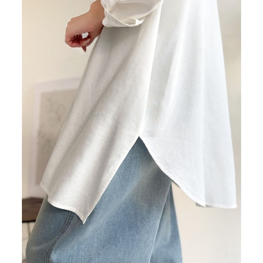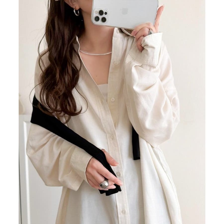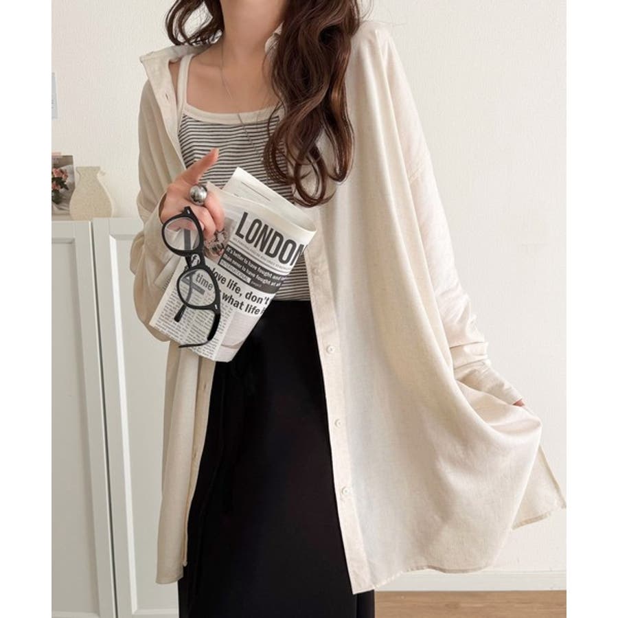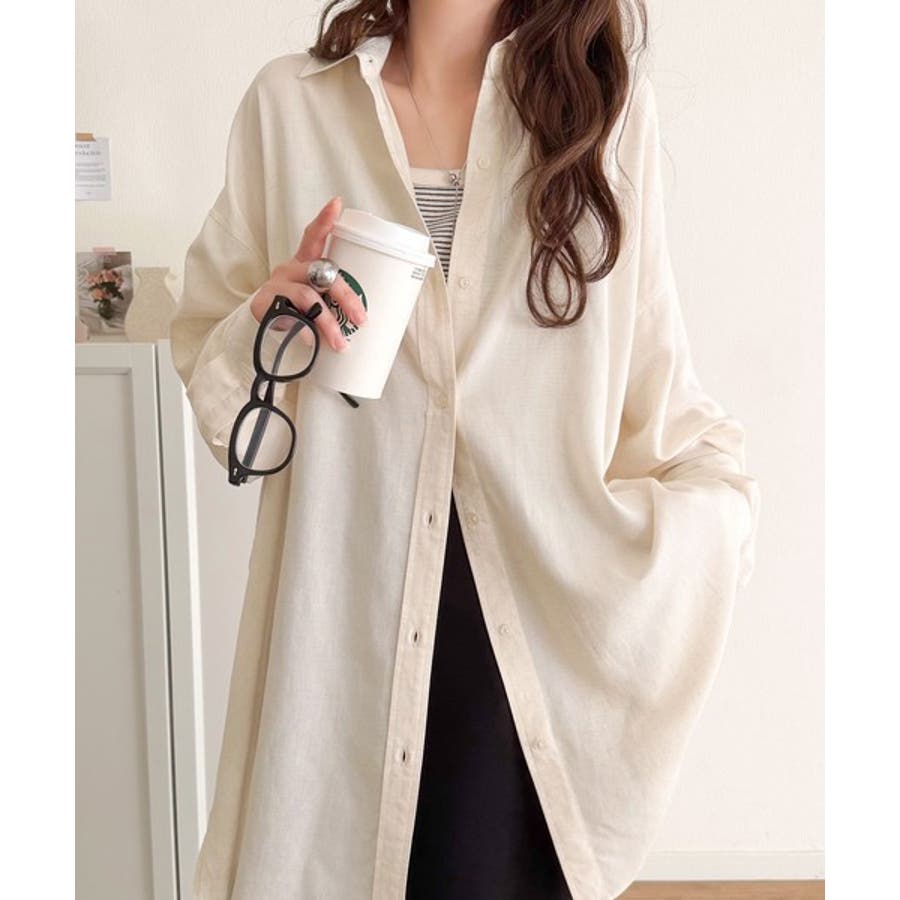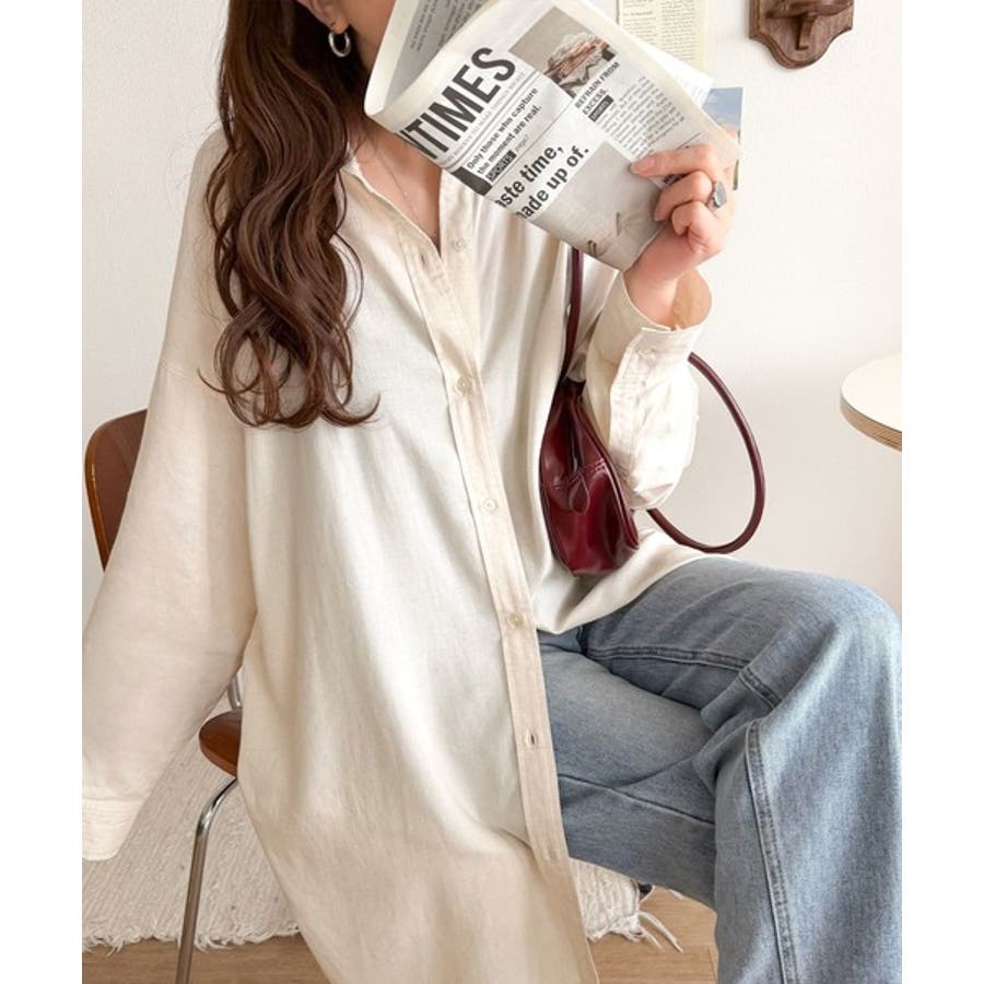 【機能性素材】軽やかにデイリーに使える。レーヨン麻混オーバーサイズロールアップシ…