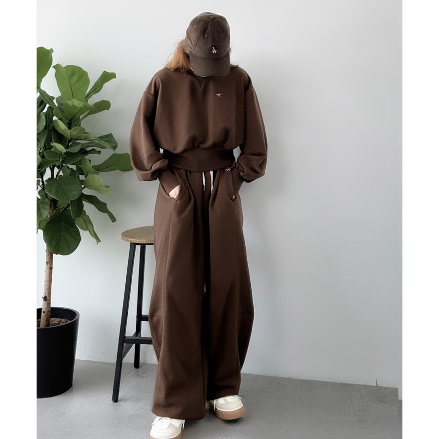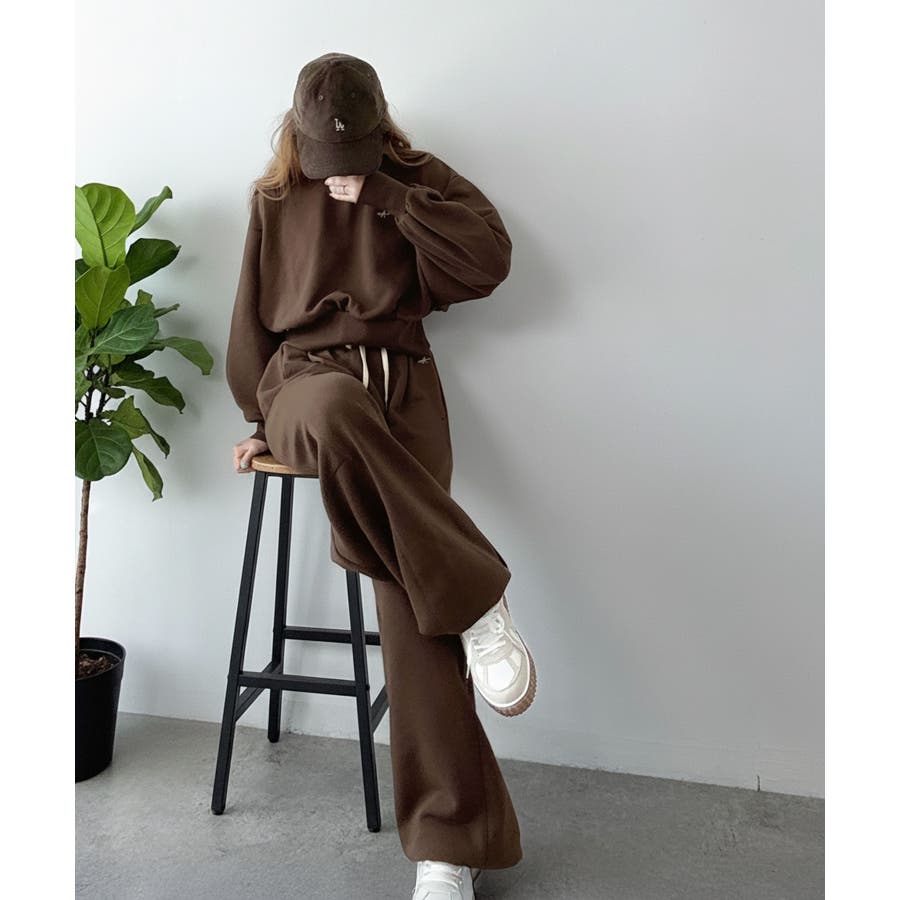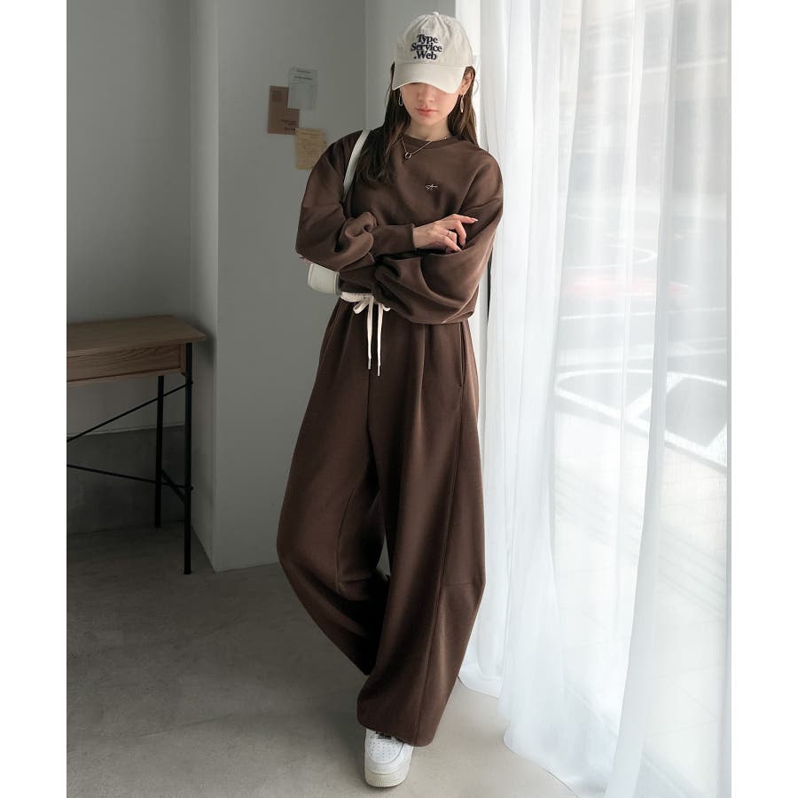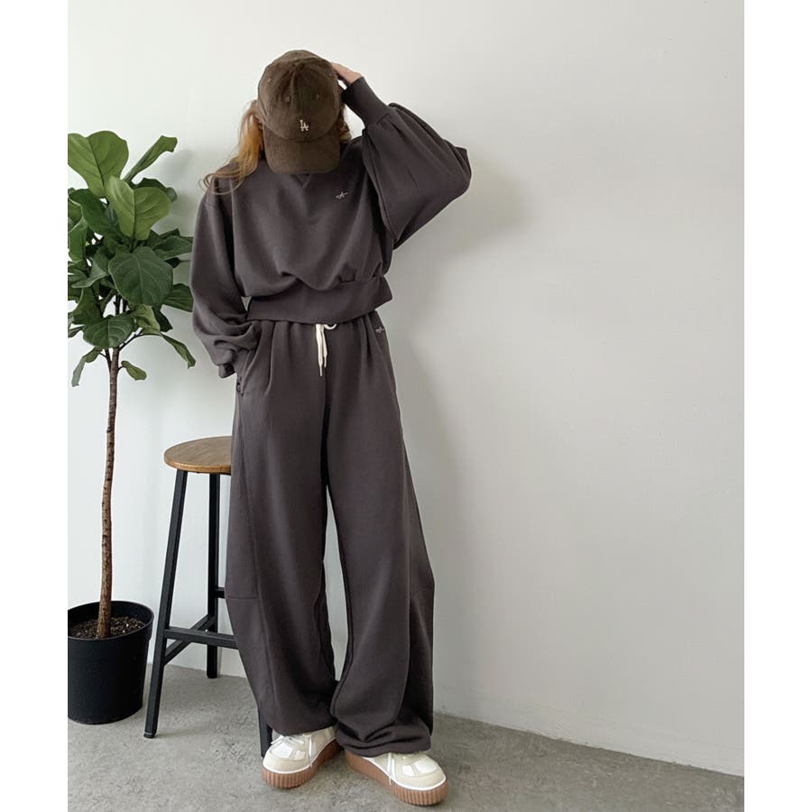 同色のスウェットと合わせてセットアップコーデも可能で、