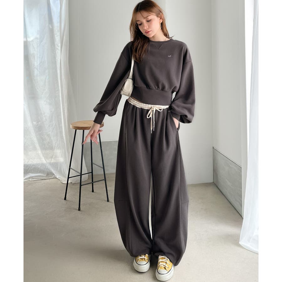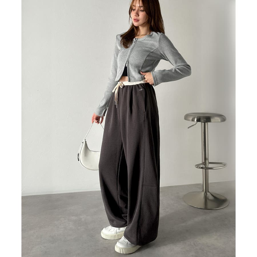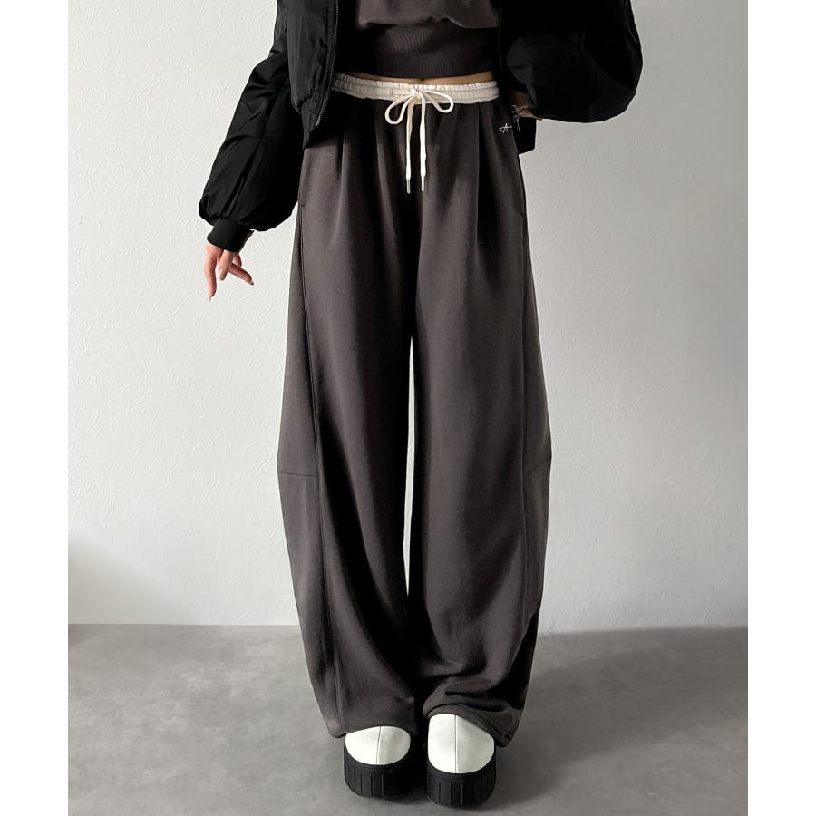 履くだけで“美脚バランス”完成!配色ウエストで差がつく、裏毛スウェットカーブパン…