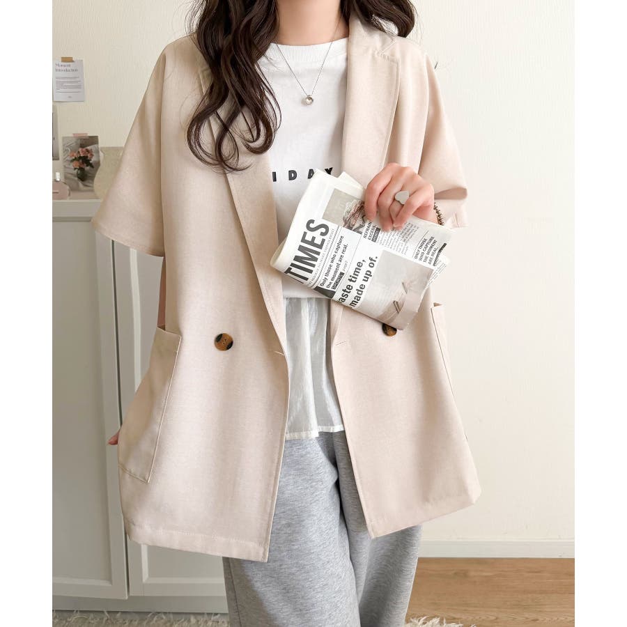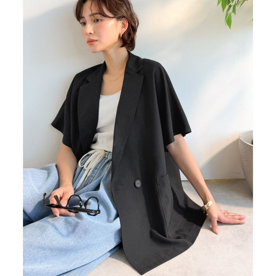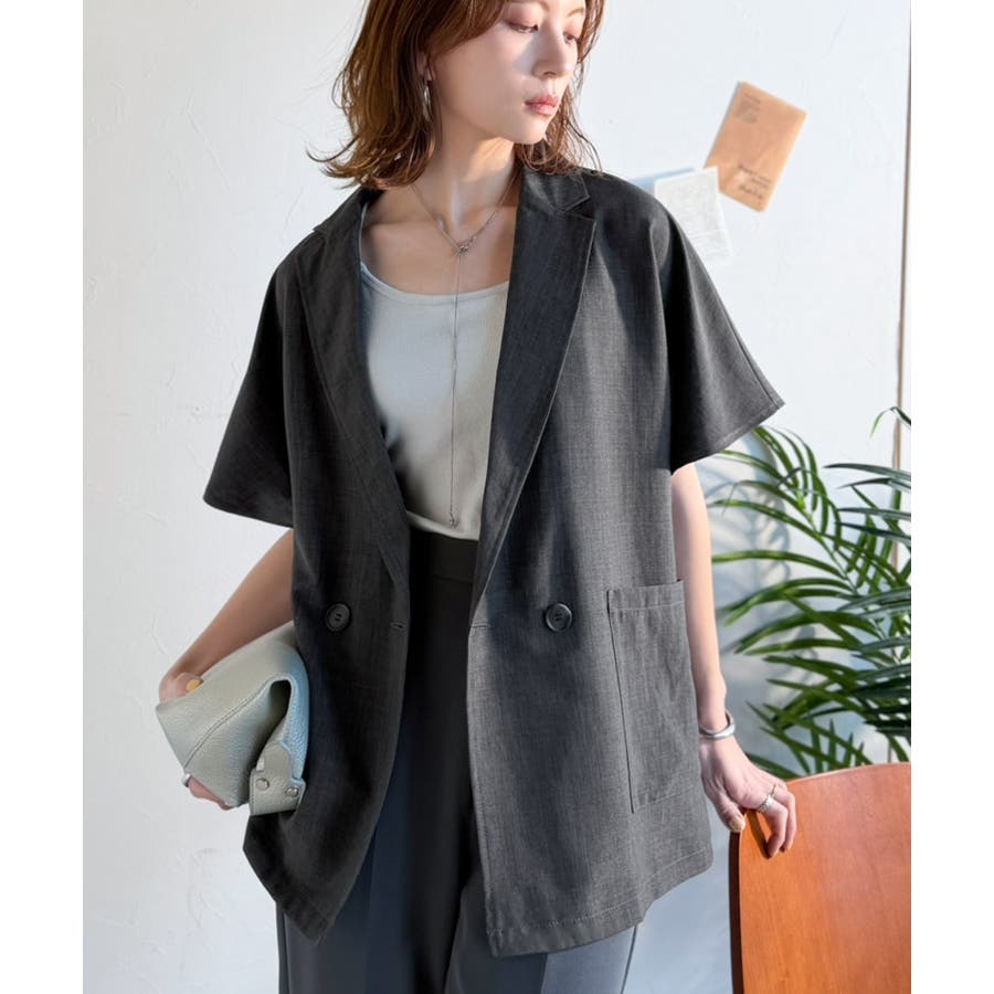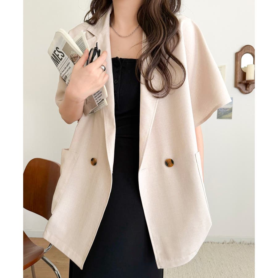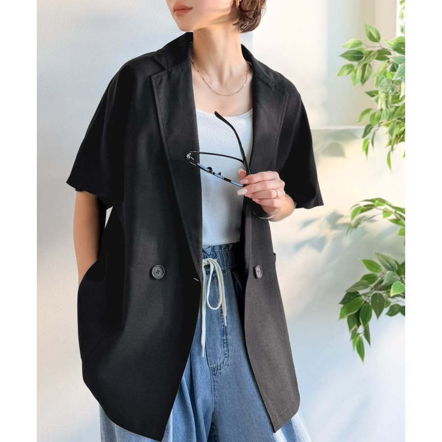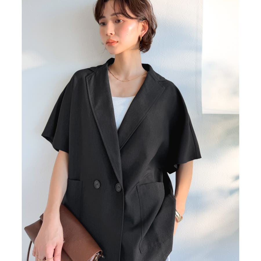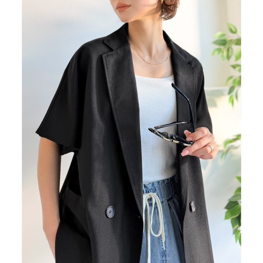 纏うだけで上品見え。リネンライクドルマンスリーブテーラードダブルジャケット(半袖…