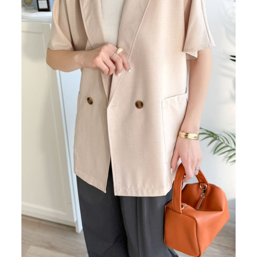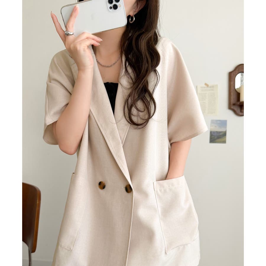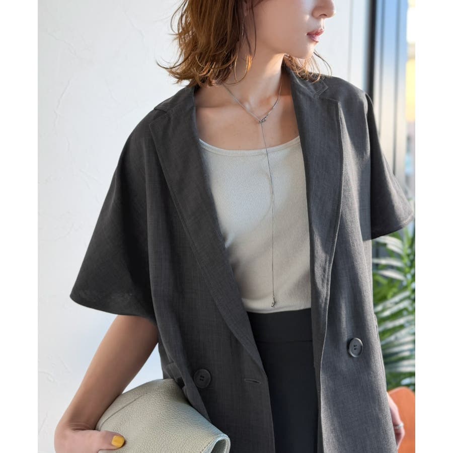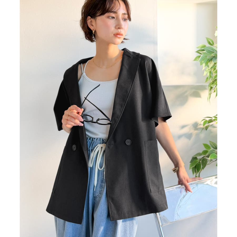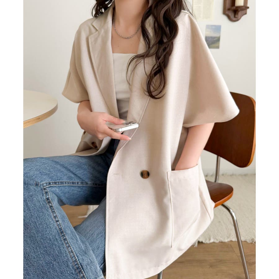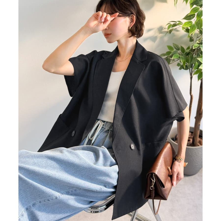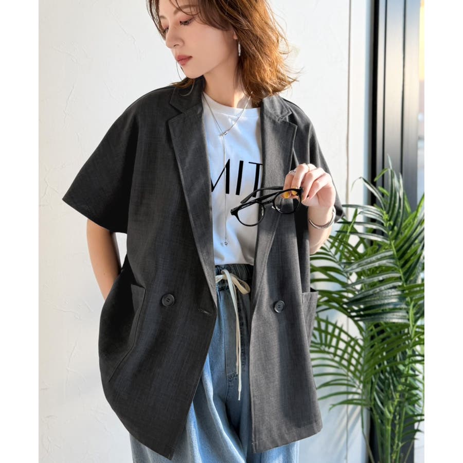 纏うだけで上品見え。リネンライクドルマンスリーブテーラードダブルジャケット(半袖…