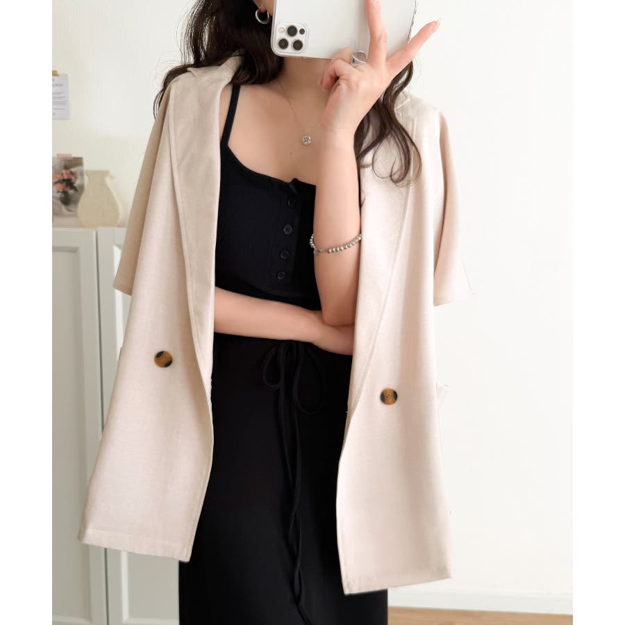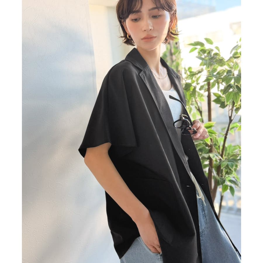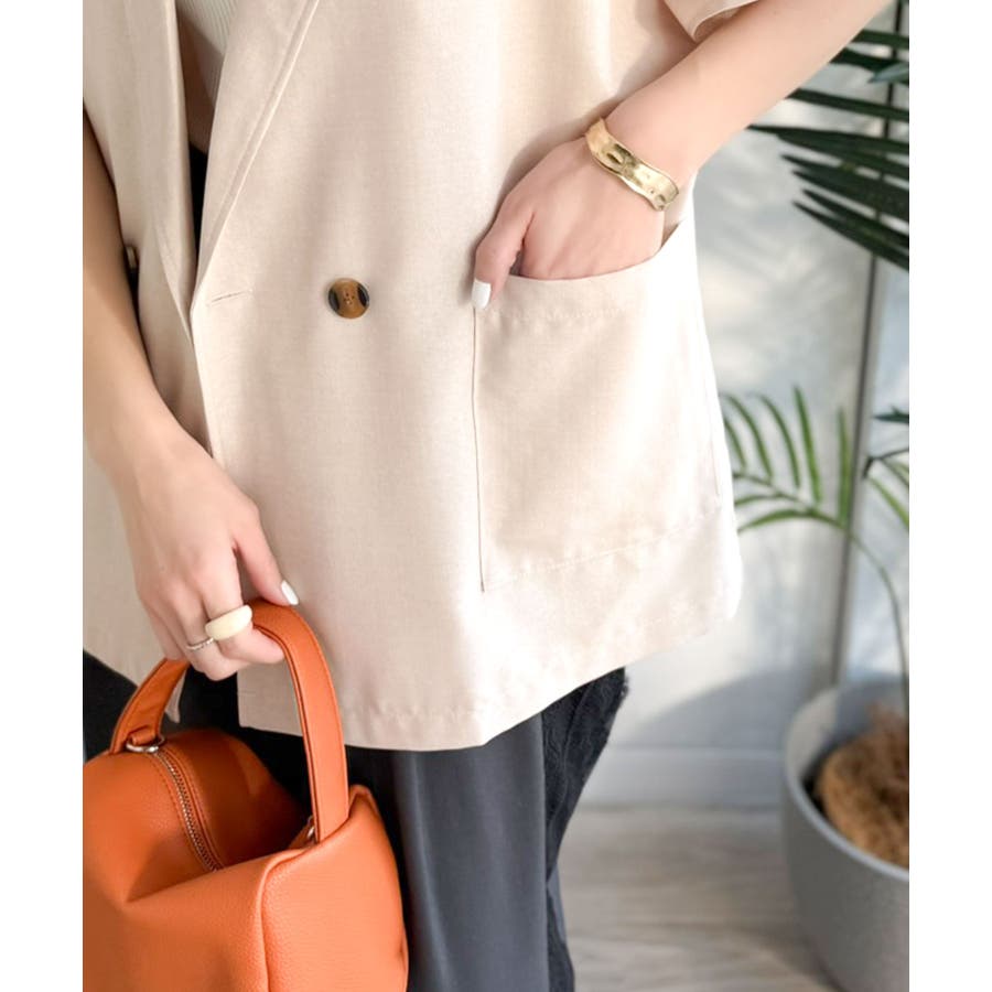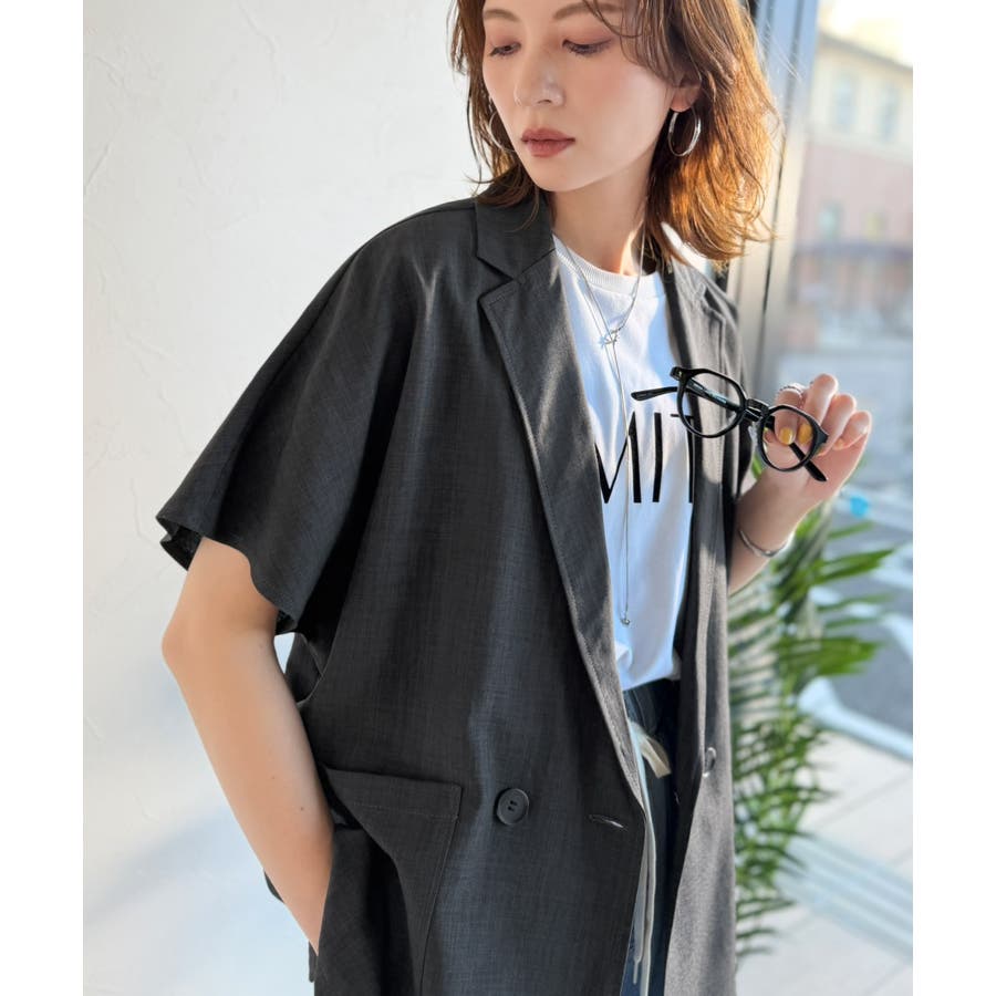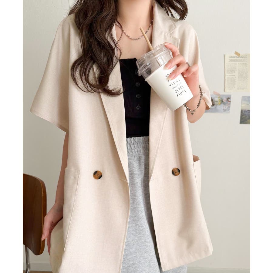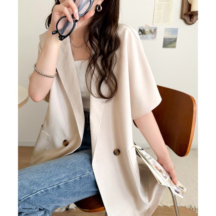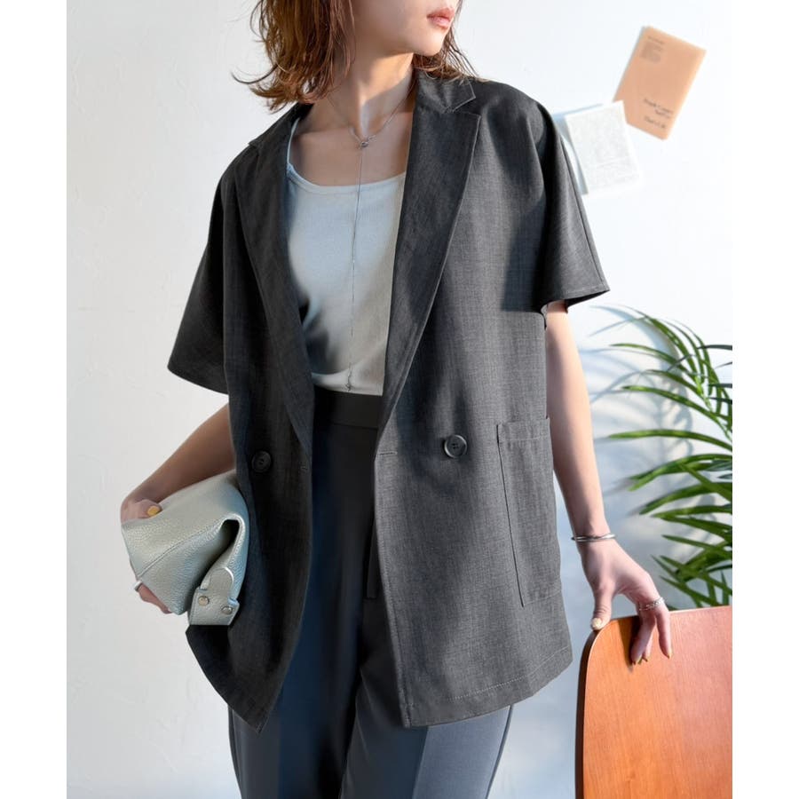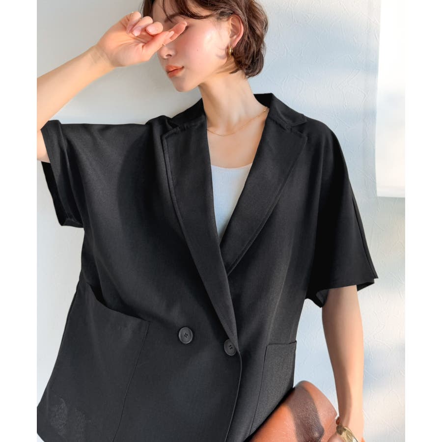 纏うだけで上品見え。リネンライクドルマンスリーブテーラードダブルジャケット(半袖…