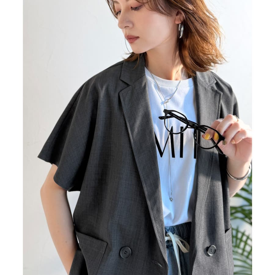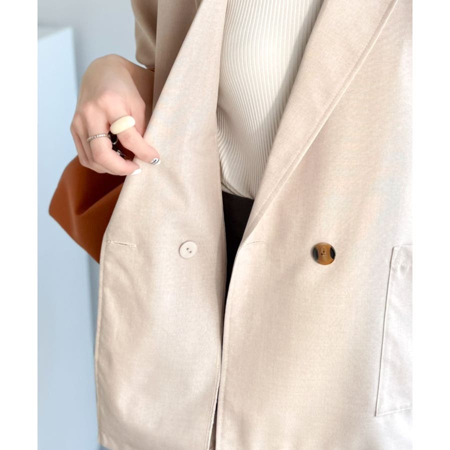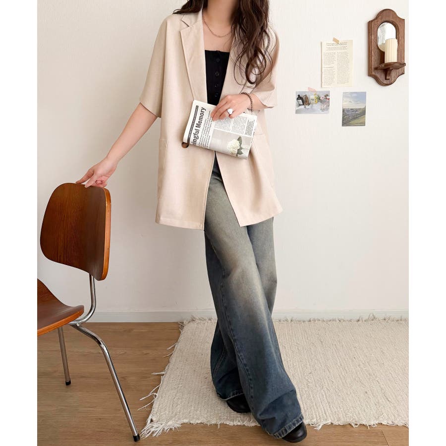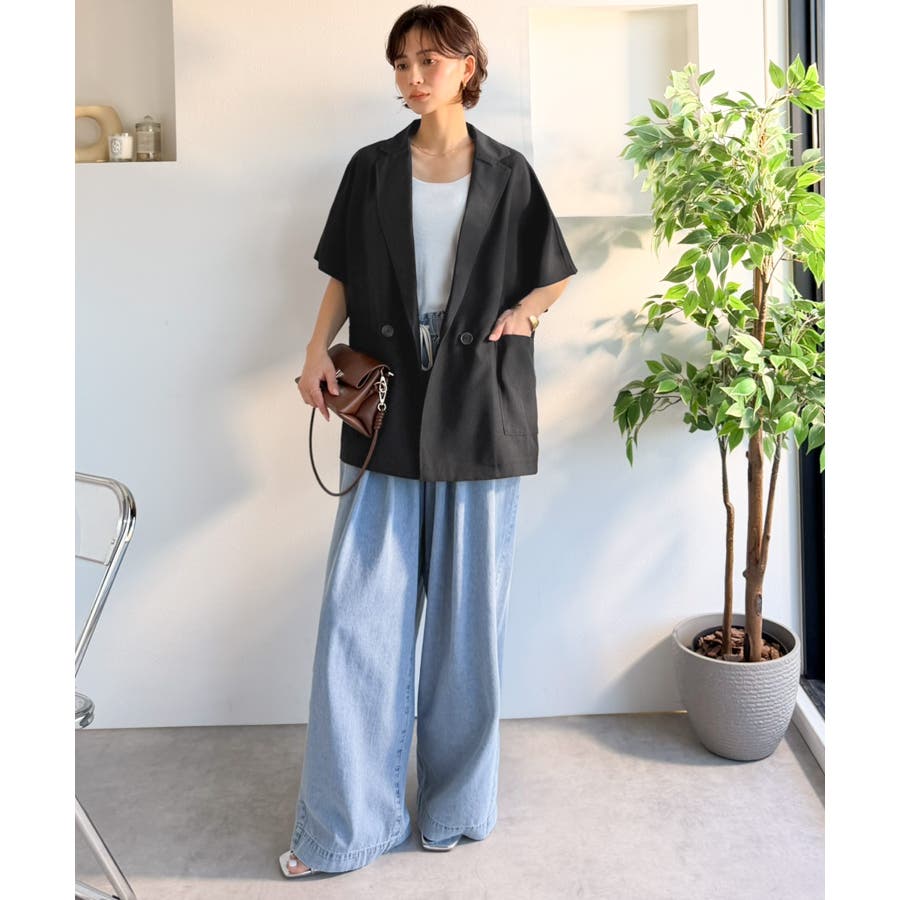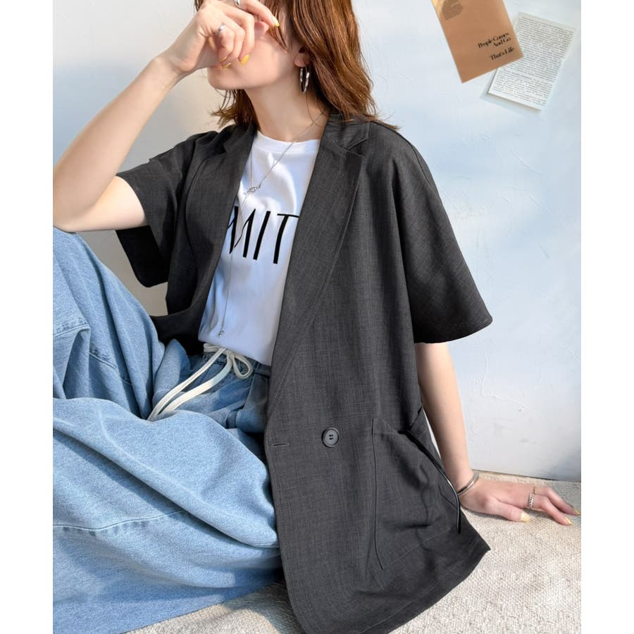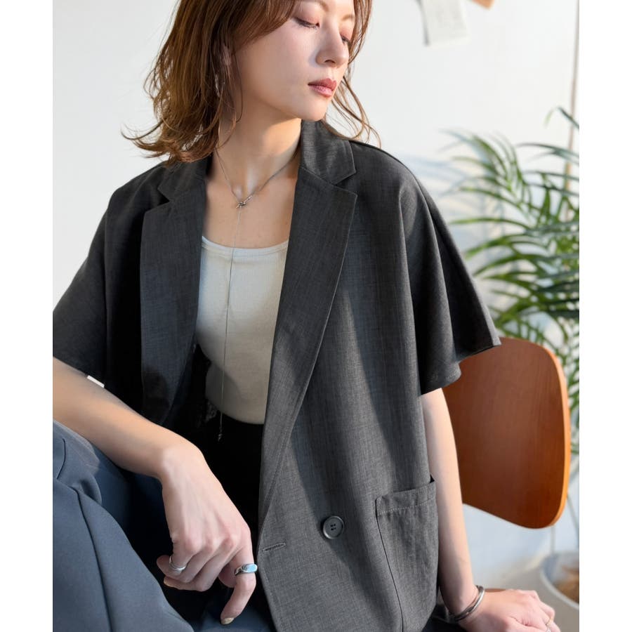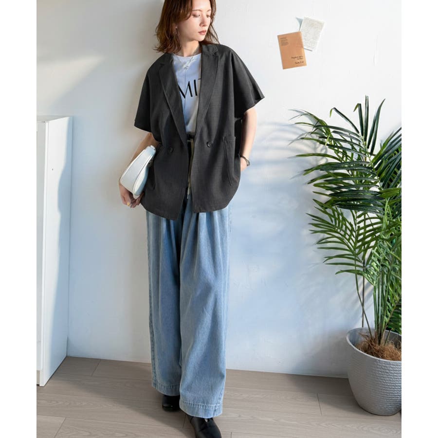 纏うだけで上品見え。リネンライクドルマンスリーブテーラードダブルジャケット(半袖…