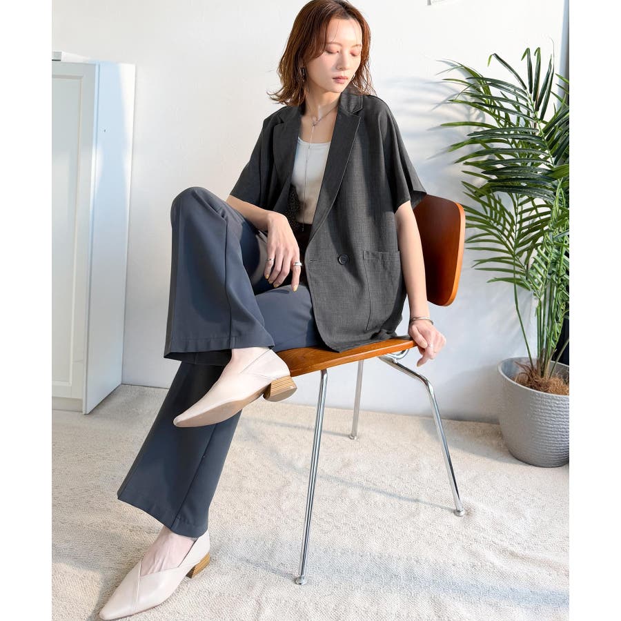 トレンド感を出したい時は、シアートップスを使ったレイヤードスタイルにジャケットを羽織ることで、上品さとヌケ感を演出します♪