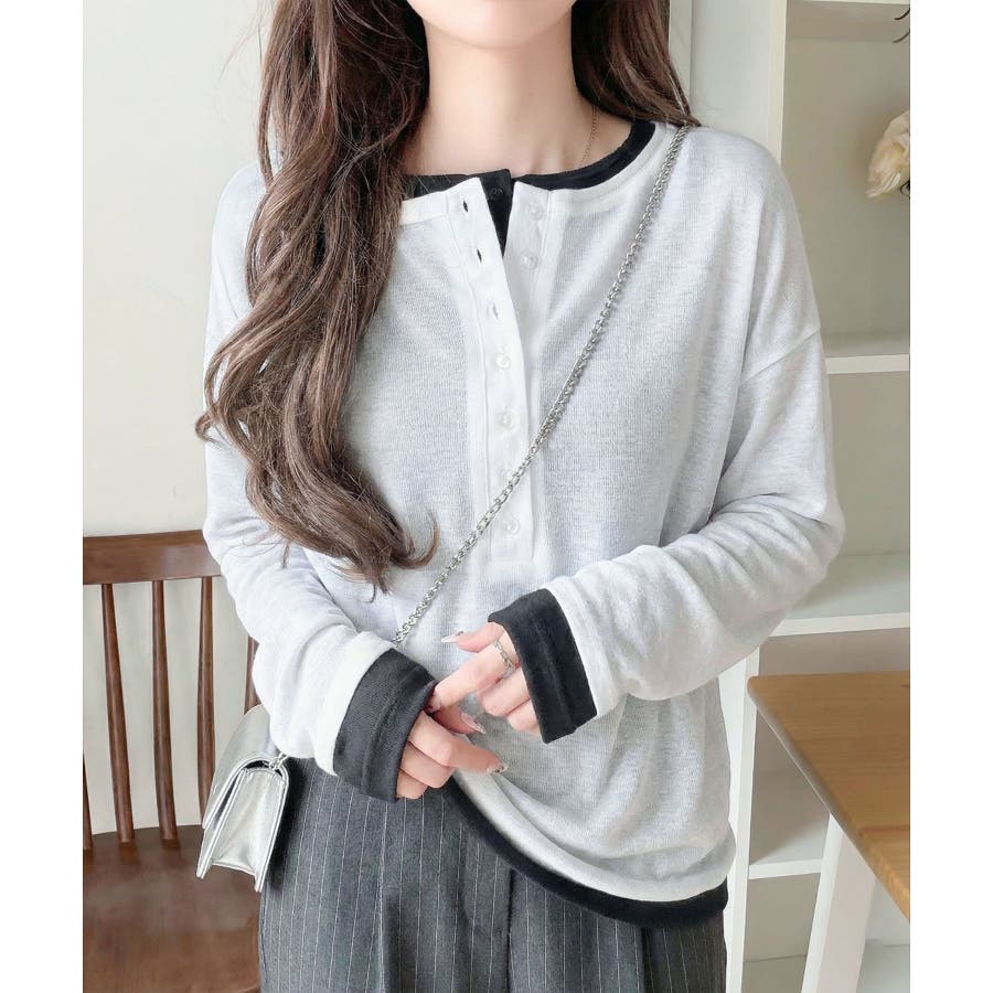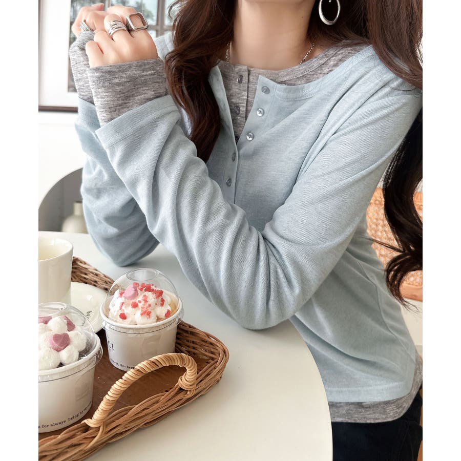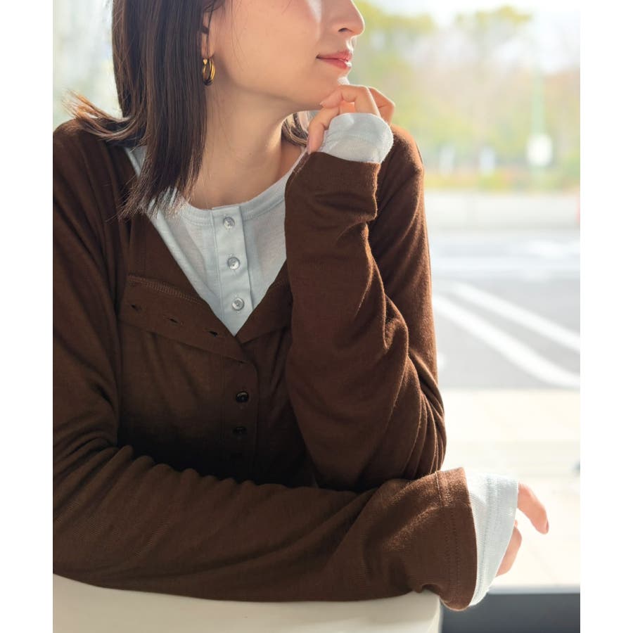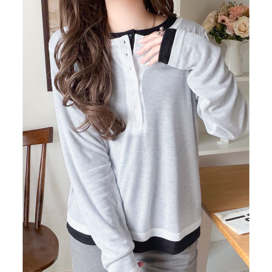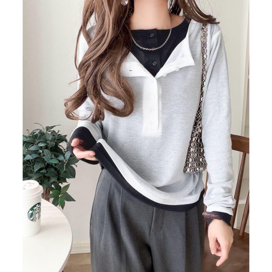 マルチWAYで着回し自在。リブ素材×シアー素材トップス 2枚セットアップ(長袖)