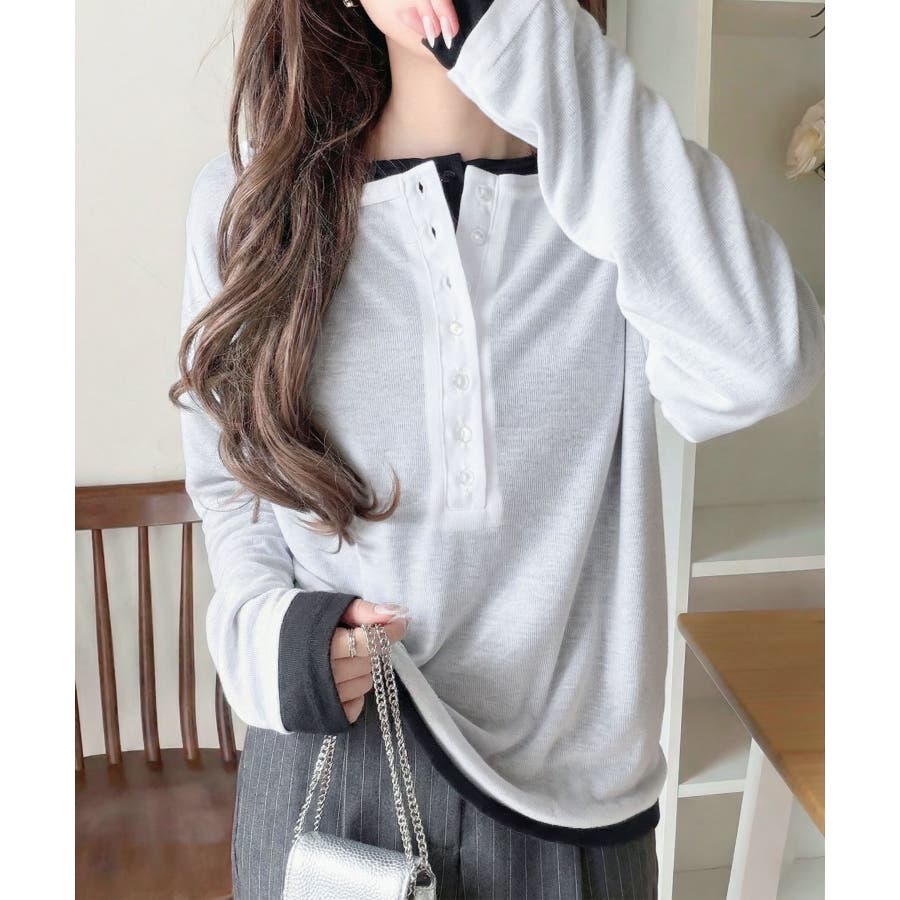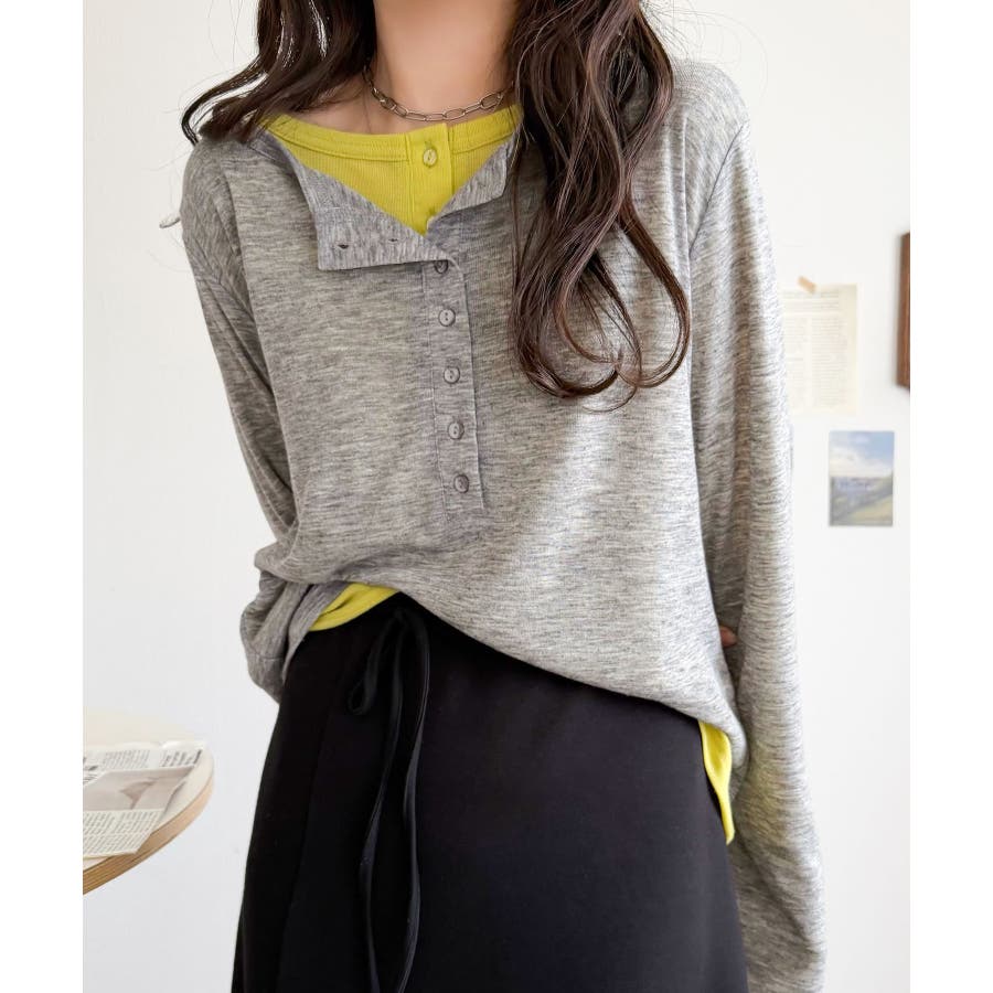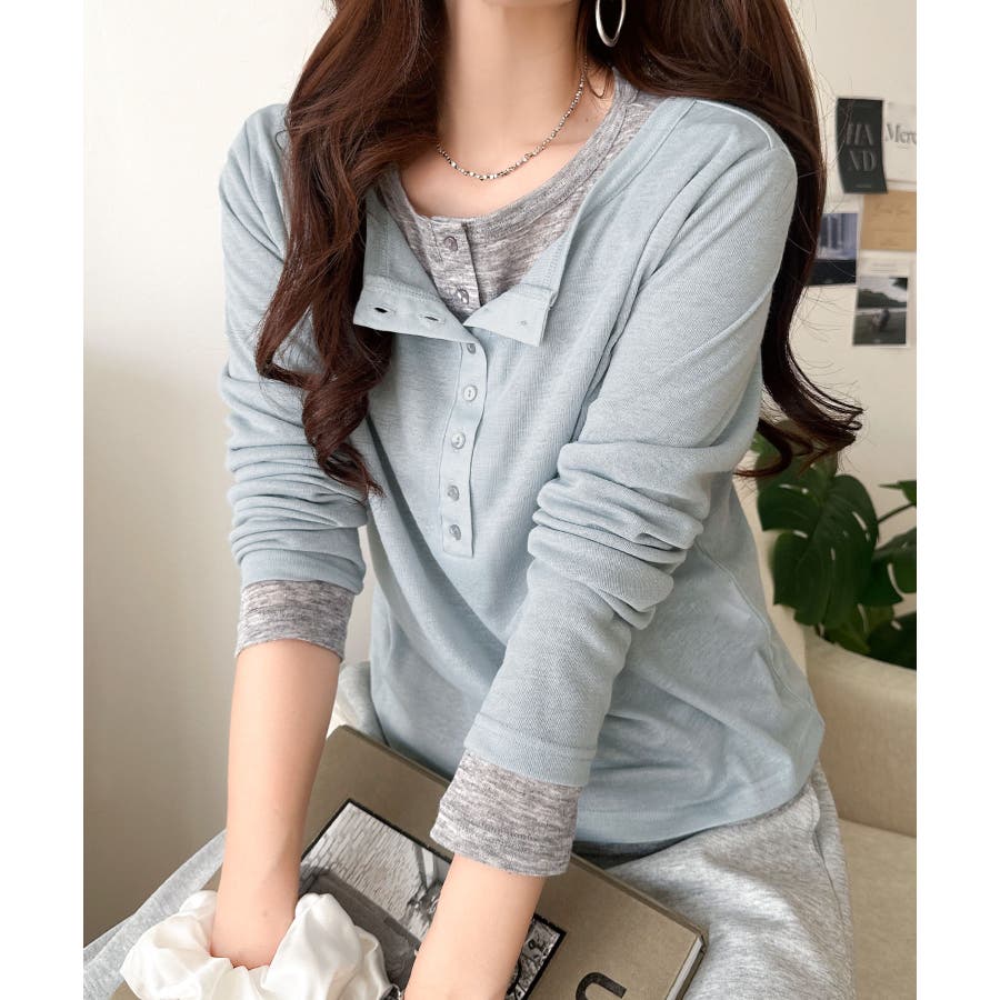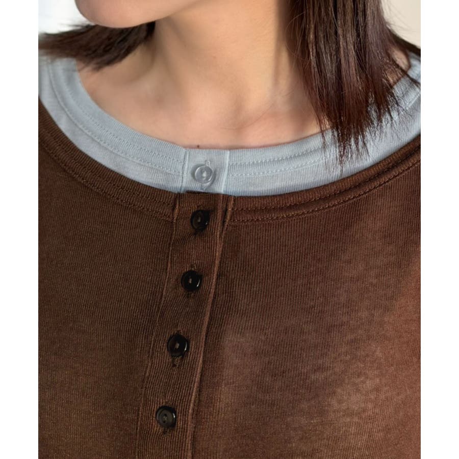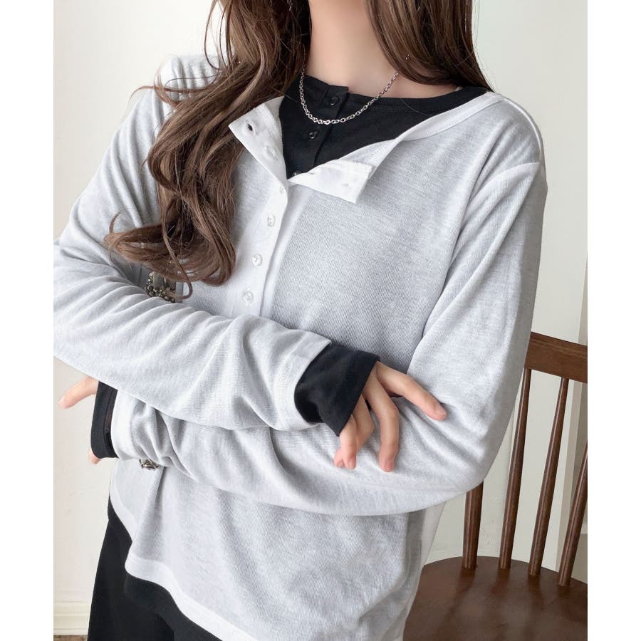 マルチWAYで着回し自在。リブ素材×シアー素材トップス 2枚セットアップ(長袖)