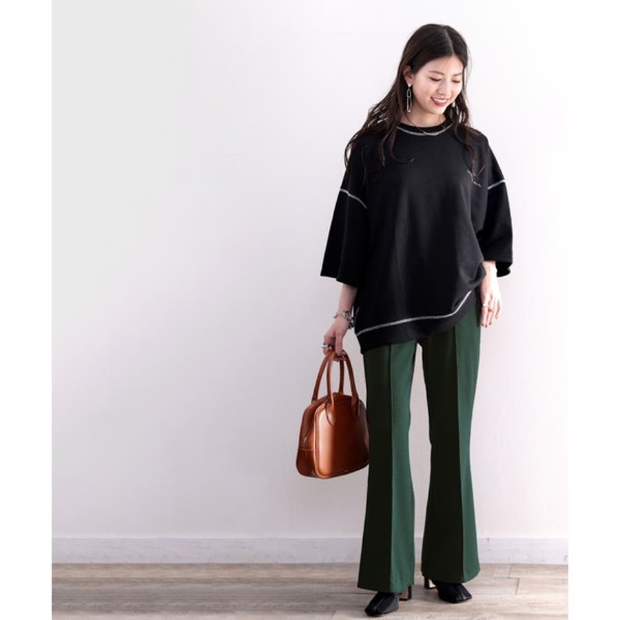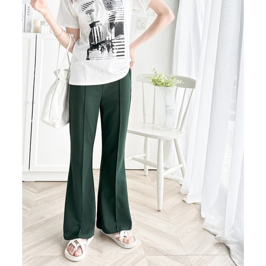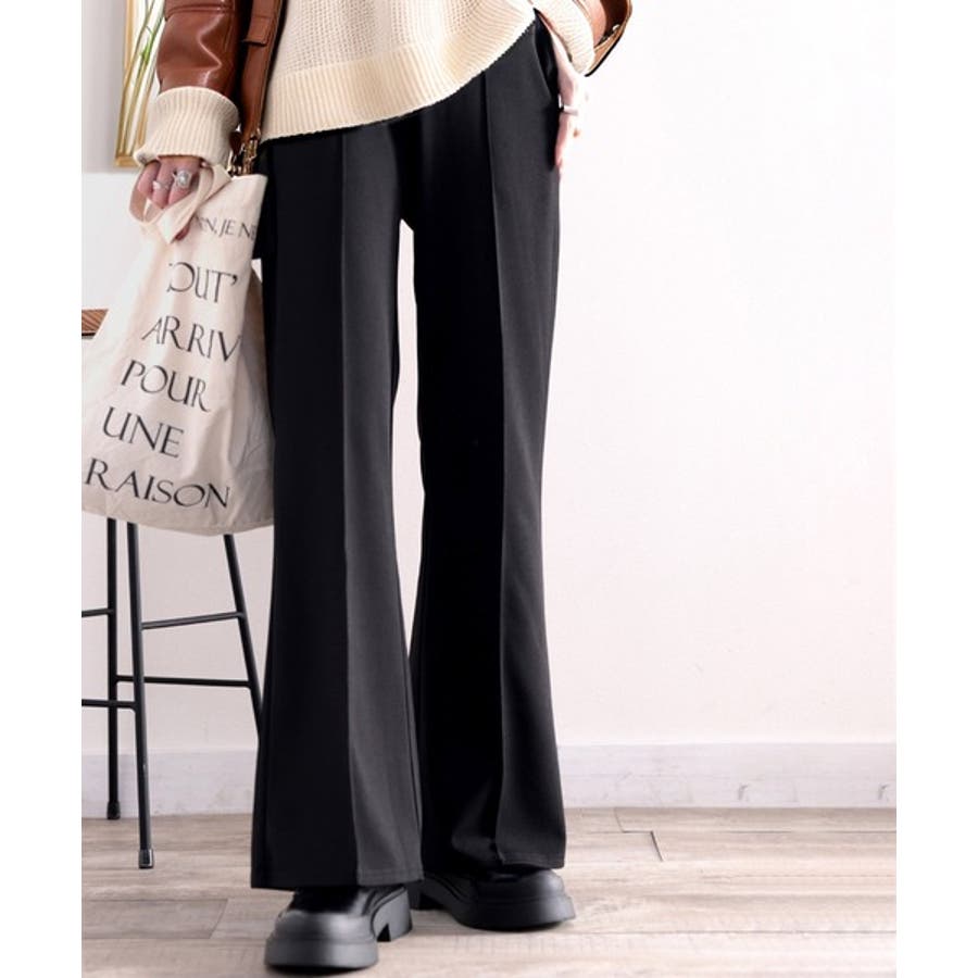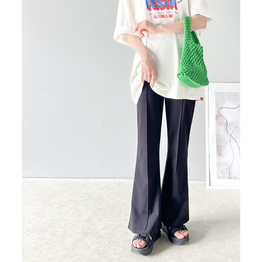美脚魅せ!センタープレスセミフレアカットソーパンツ