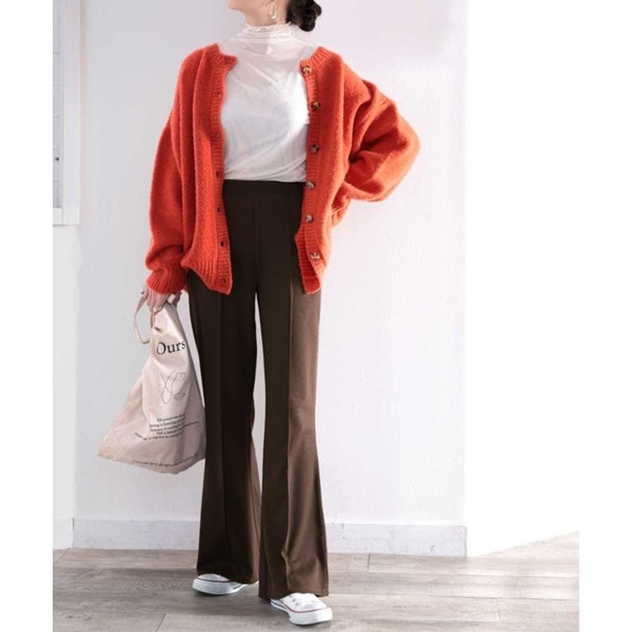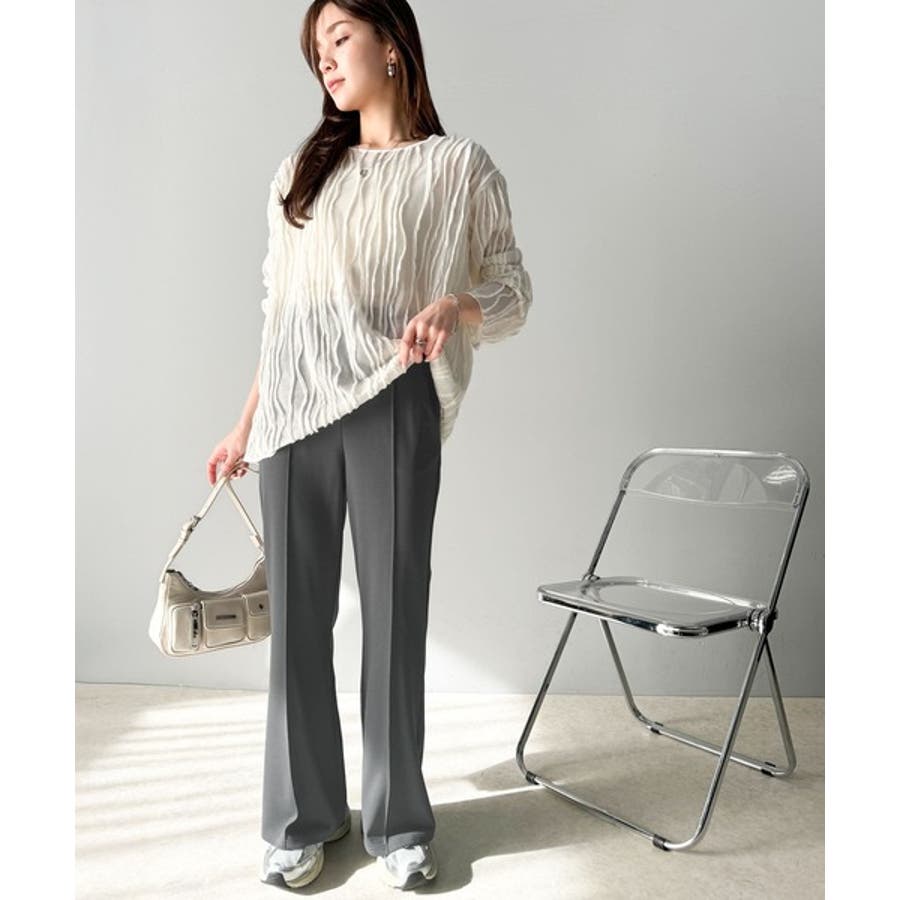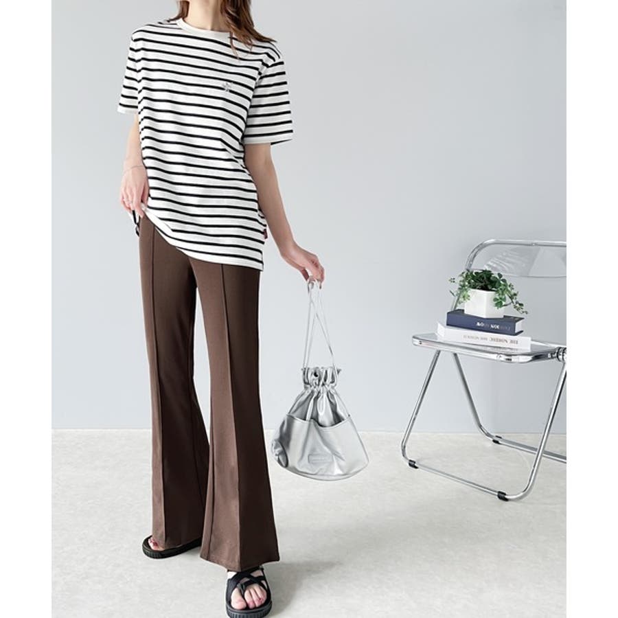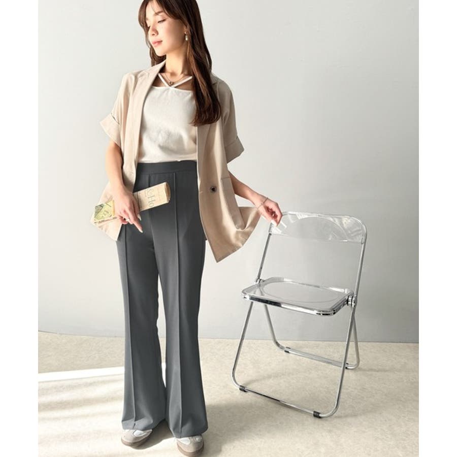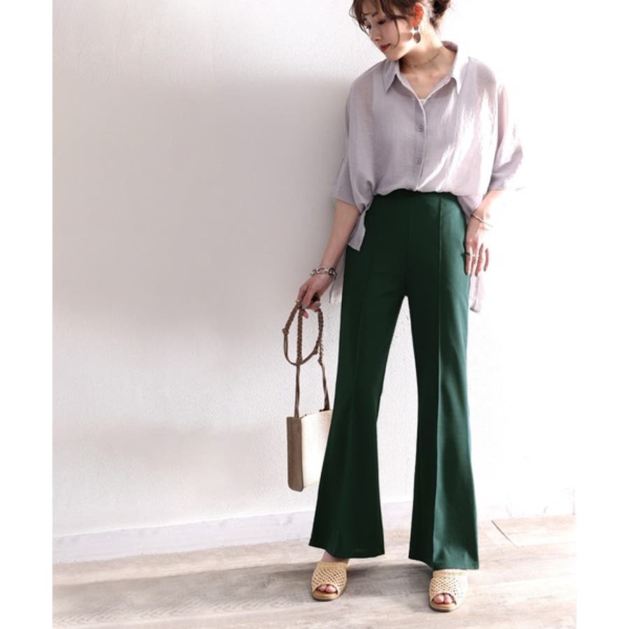 美脚シルエットのセミフレアパンツ。