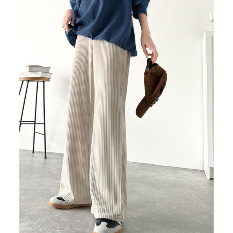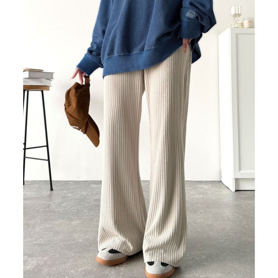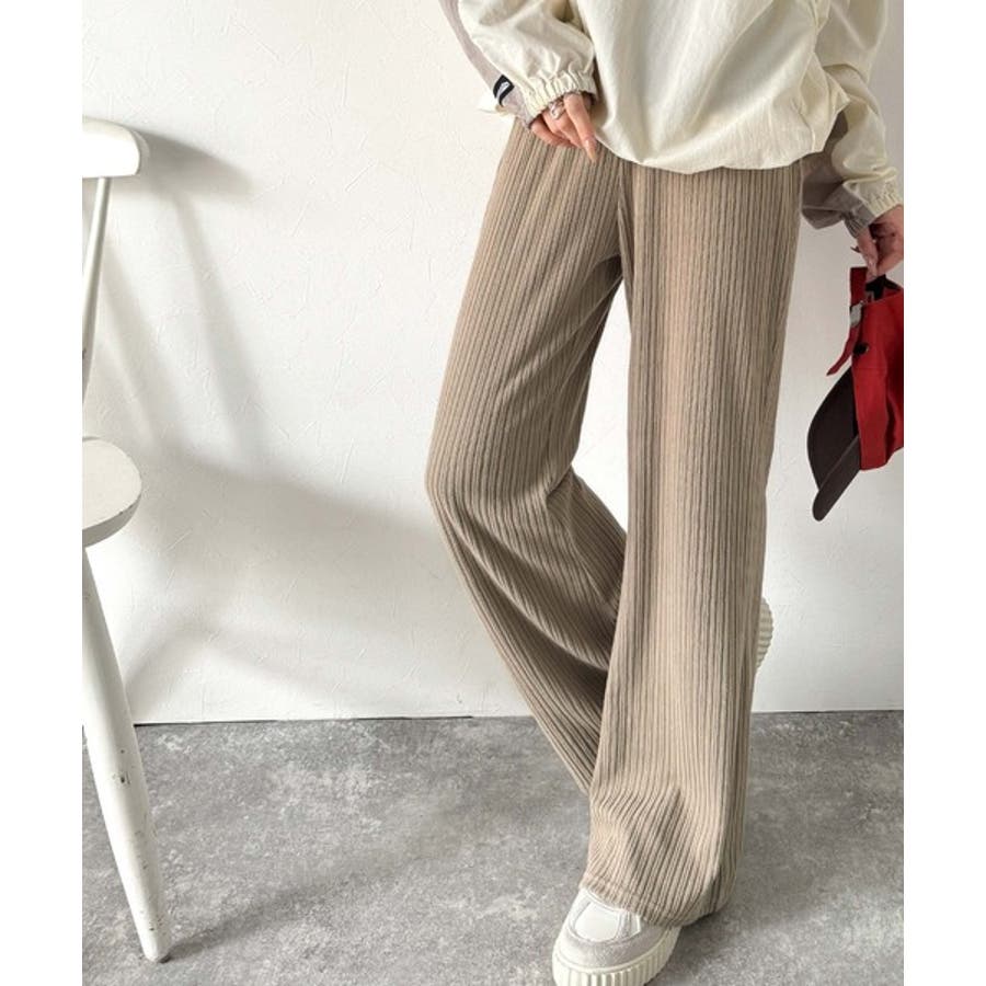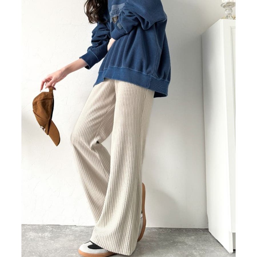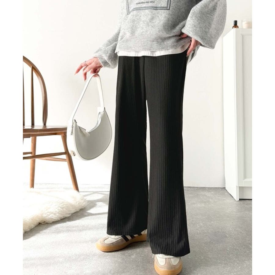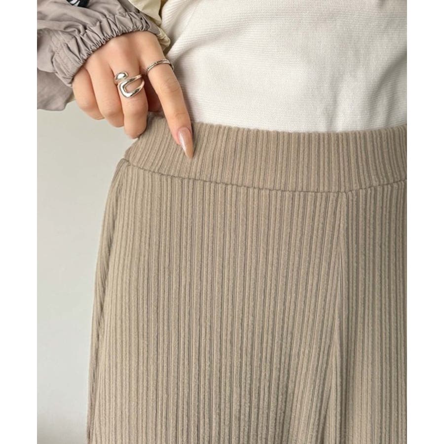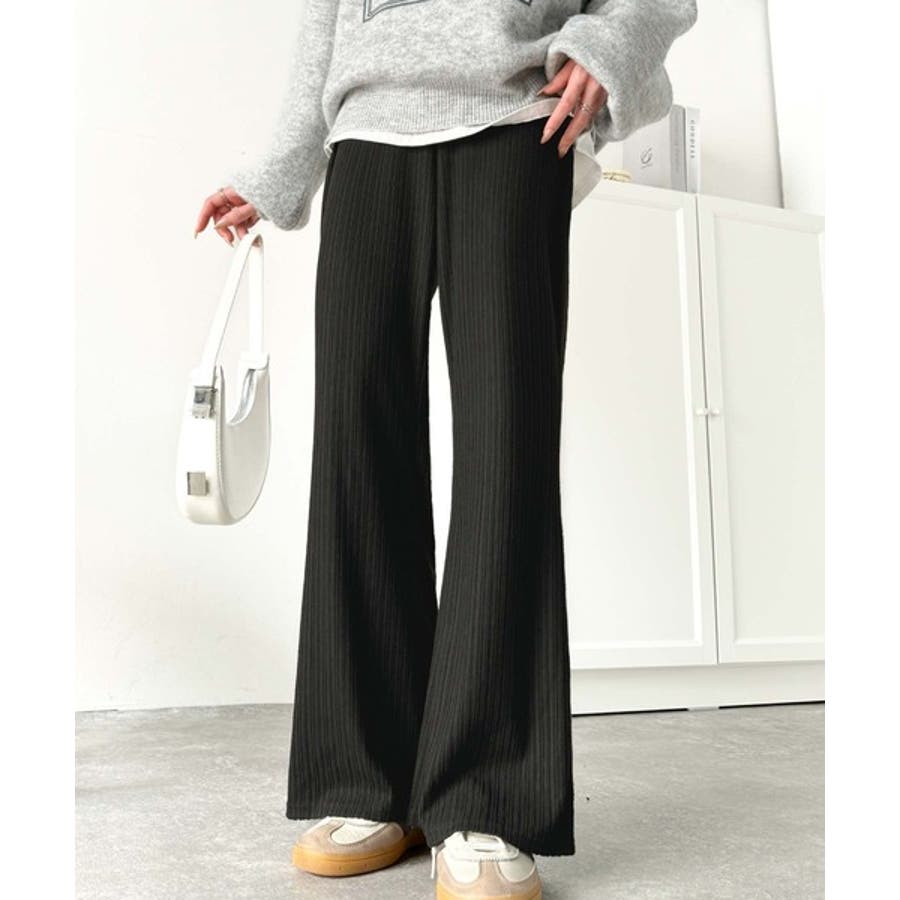 美脚魅せ。ウエストゴム起毛リラックスリブフレアパンツ