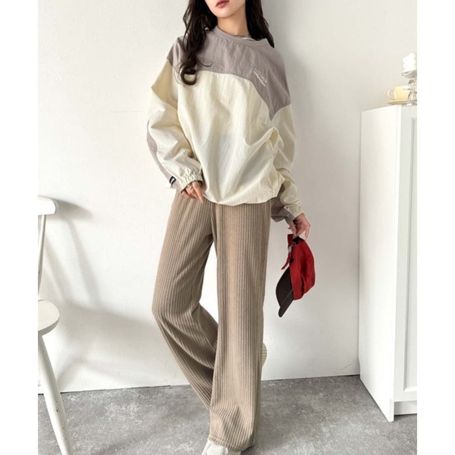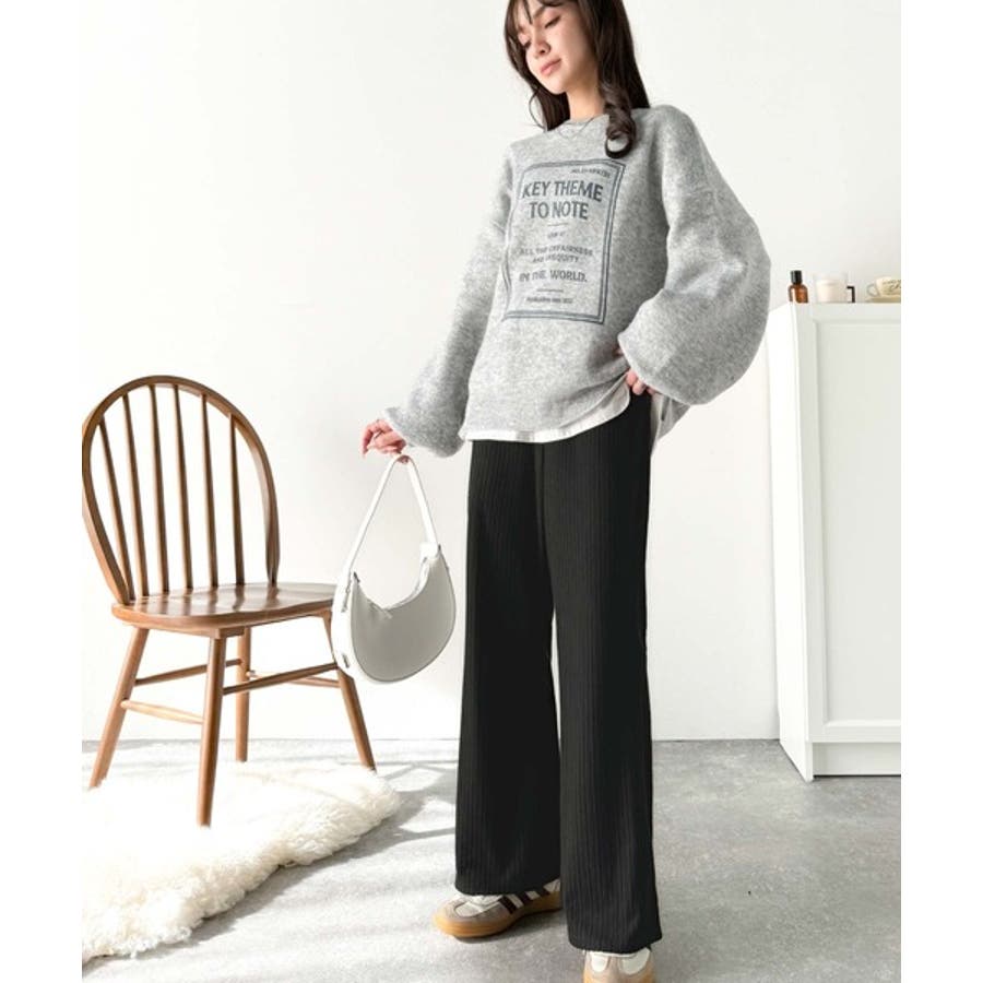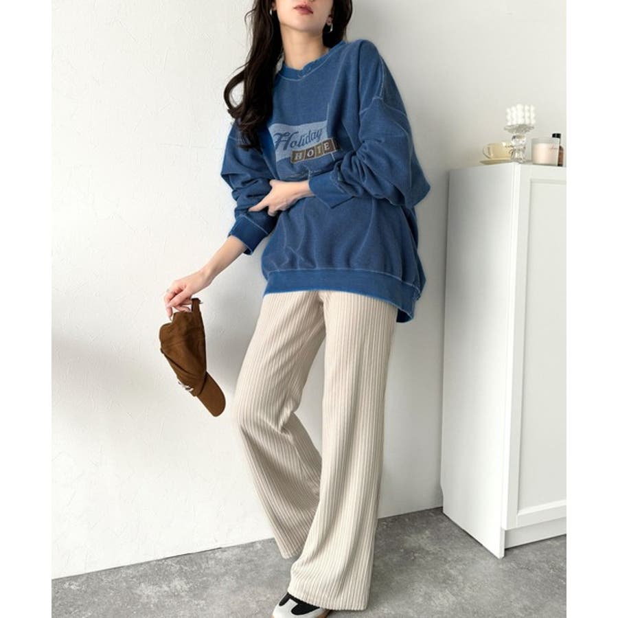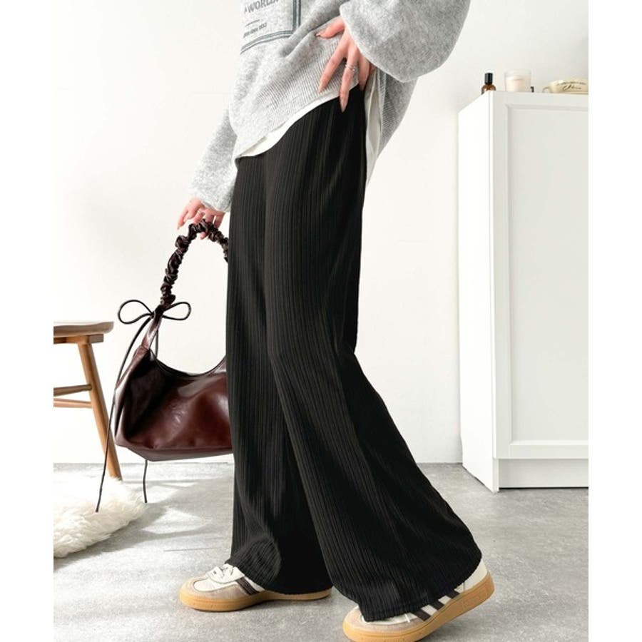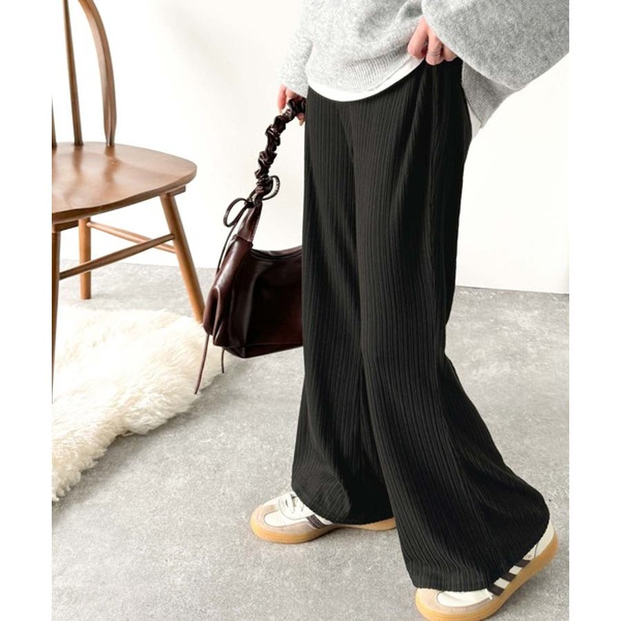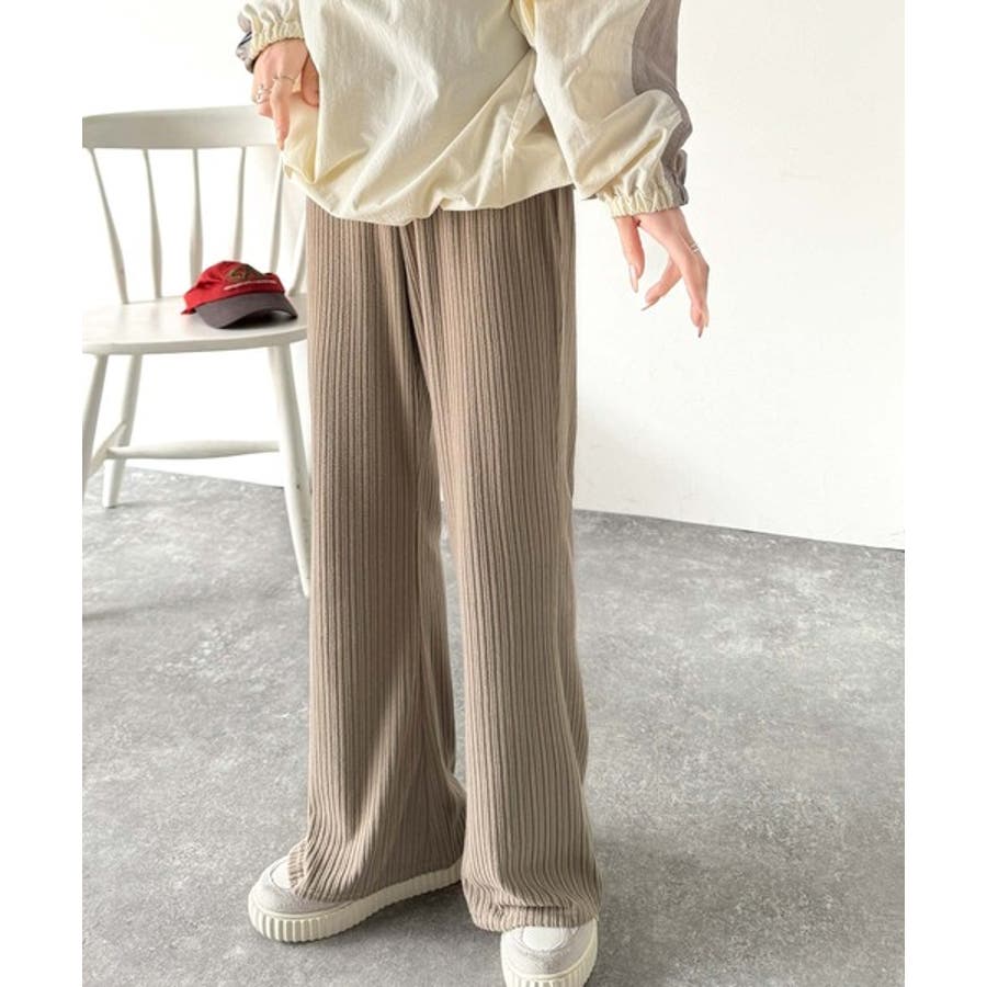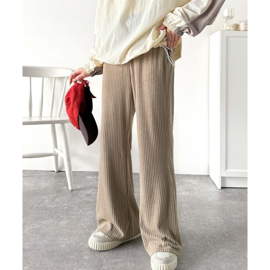 美脚魅せ。ウエストゴム起毛リラックスリブフレアパンツ